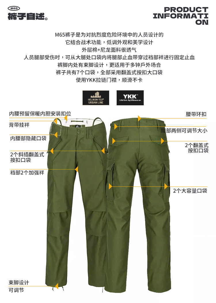 Helikon Wear-Resistant Breathable M65 Tactical Pants Outdoor Urban Commuting Multi-Pocket Casual Work Pants for Men