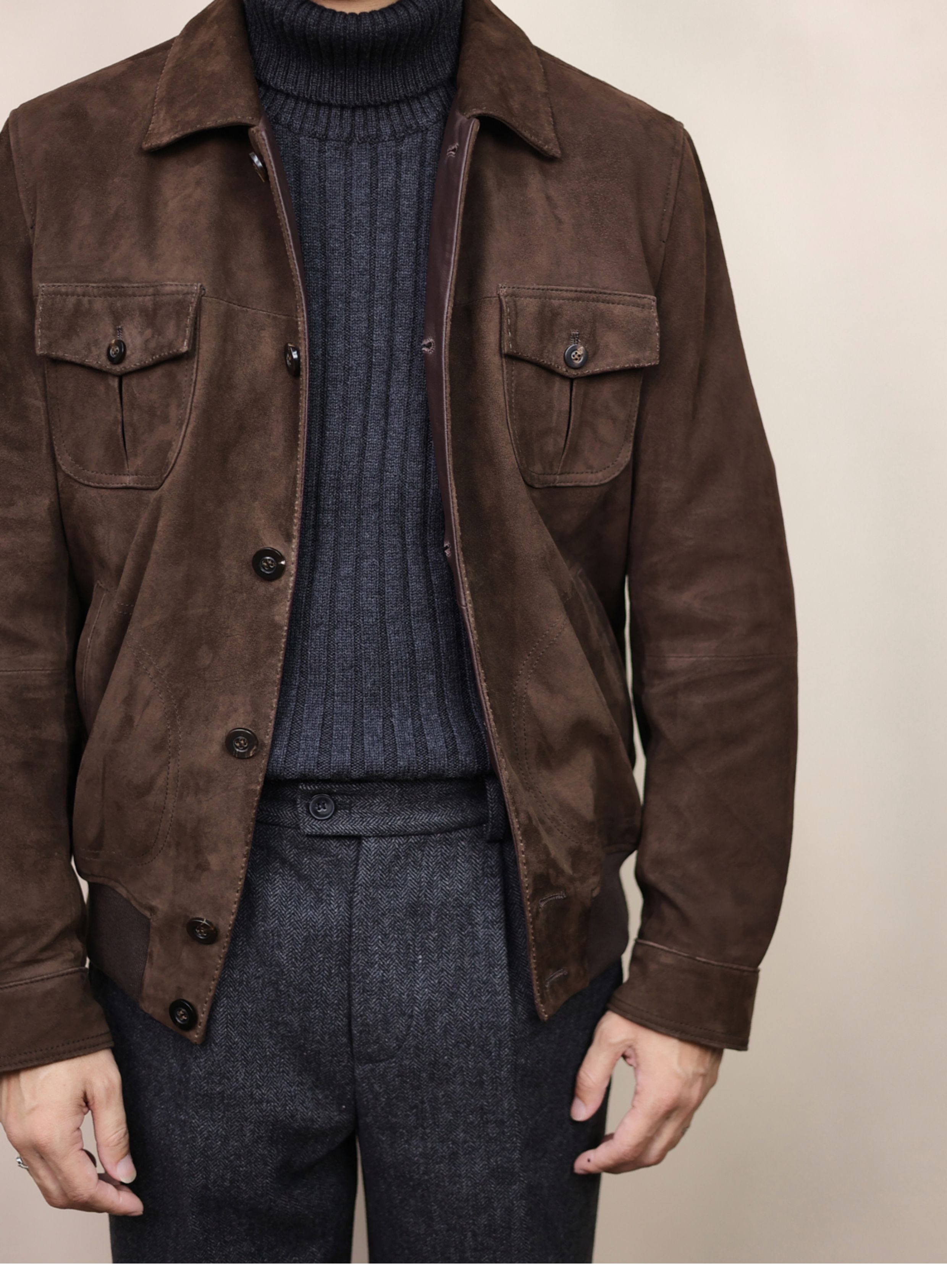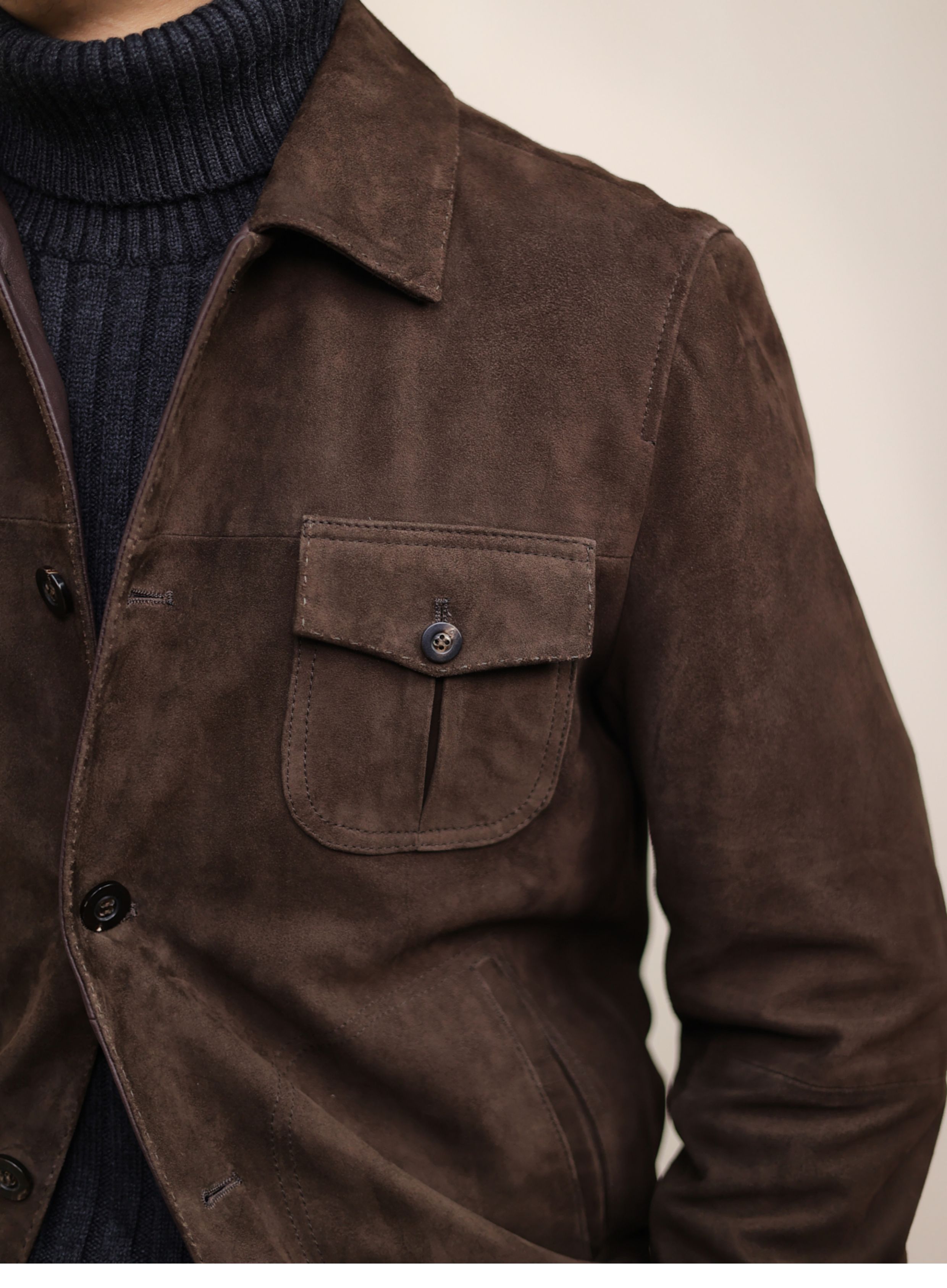 Naples Handmade Leather Jacket for Men, Suede Lambskin Shirt, Genuine Leather Short Suede Padded Jacket, Cupro Silk