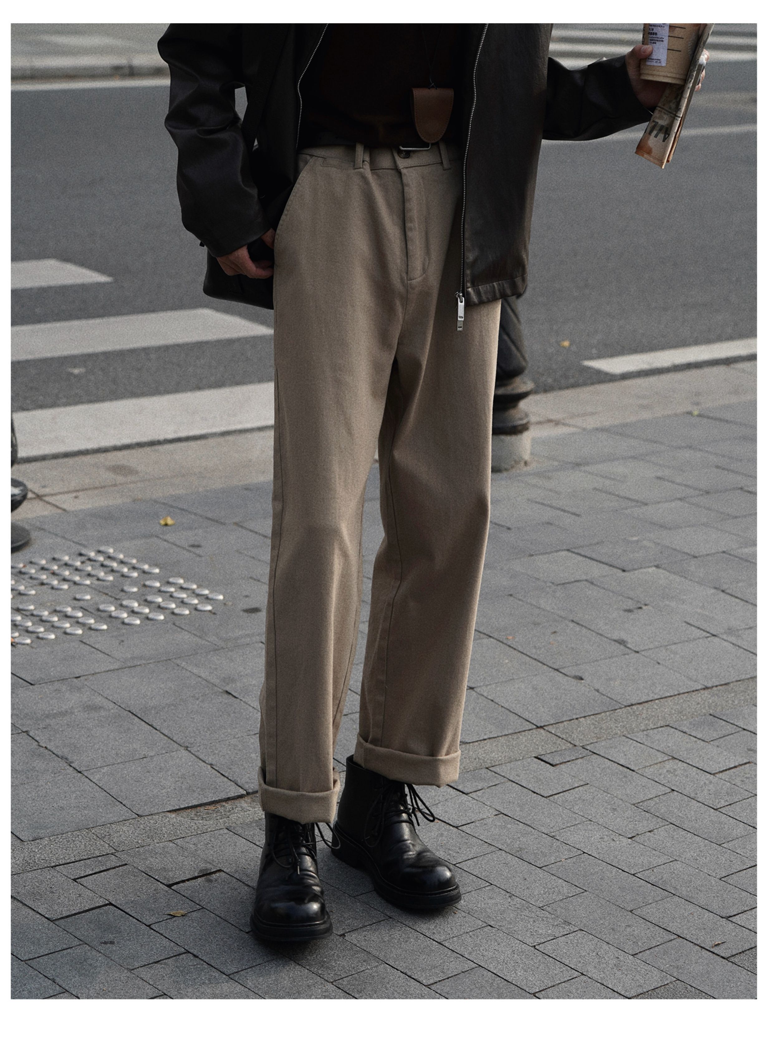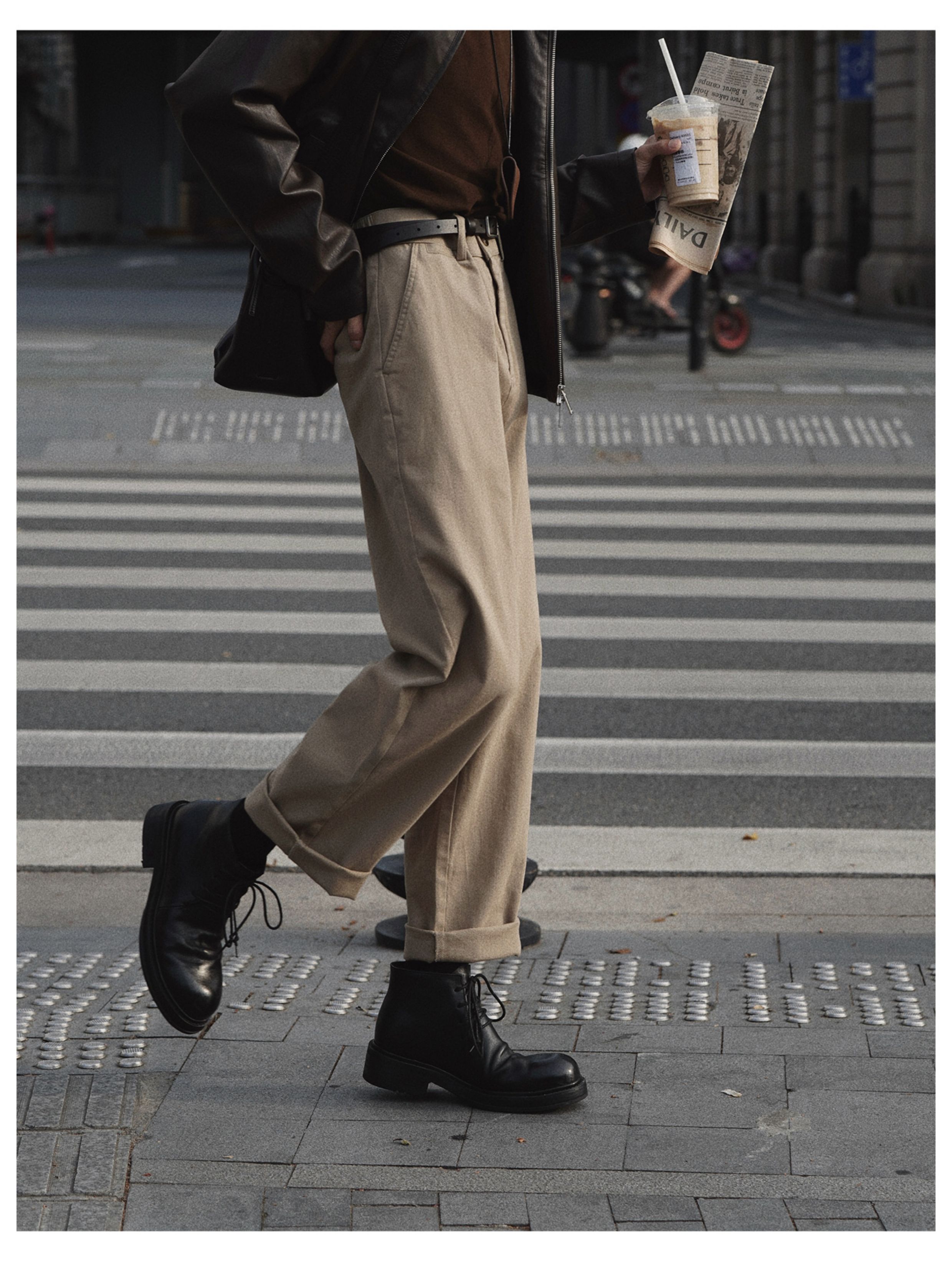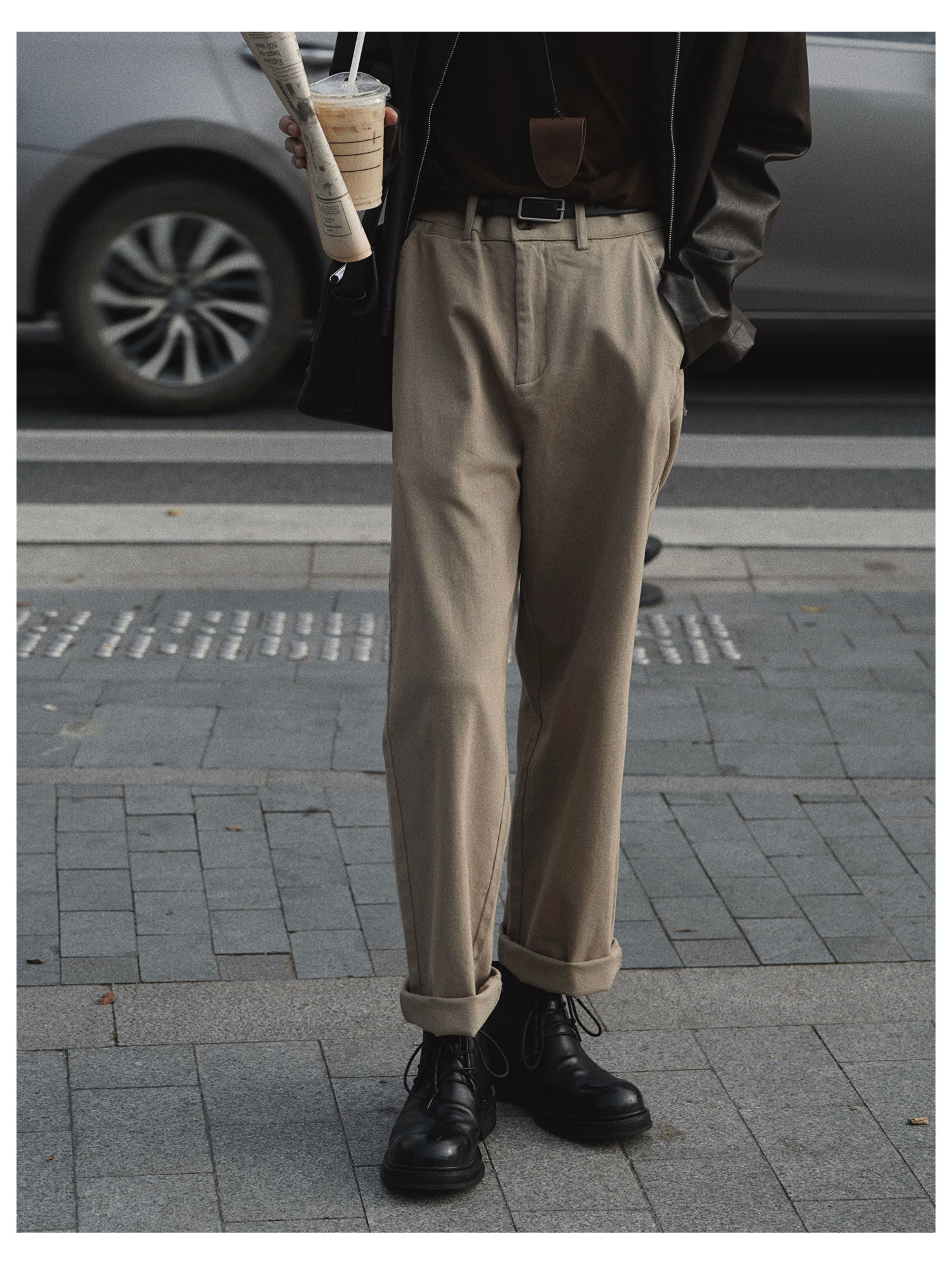 Eli [Old Street Light and Shadow] Retro Cotton Washed Twill Drapey Relaxed Simple Casual Men's Straight Pants