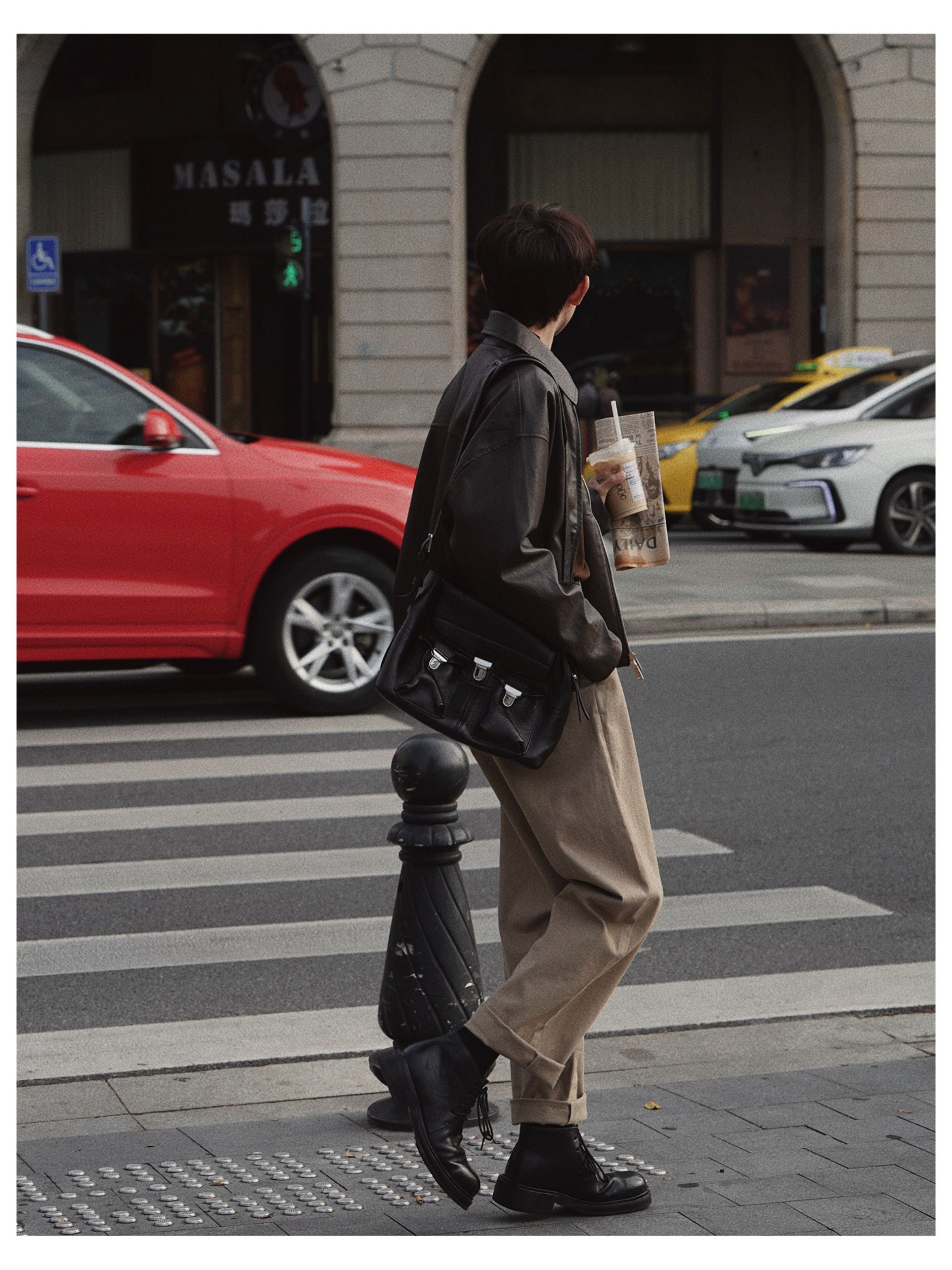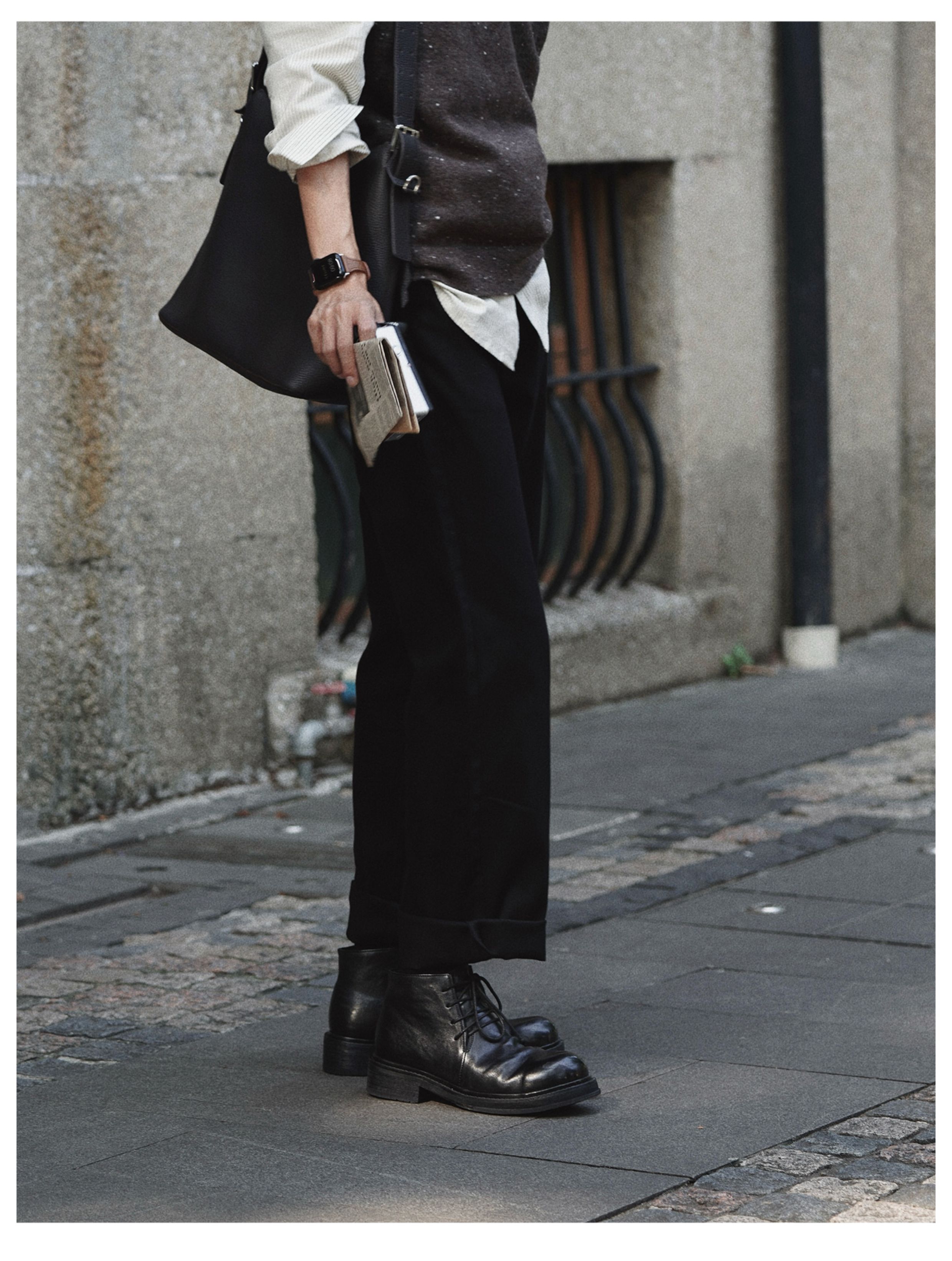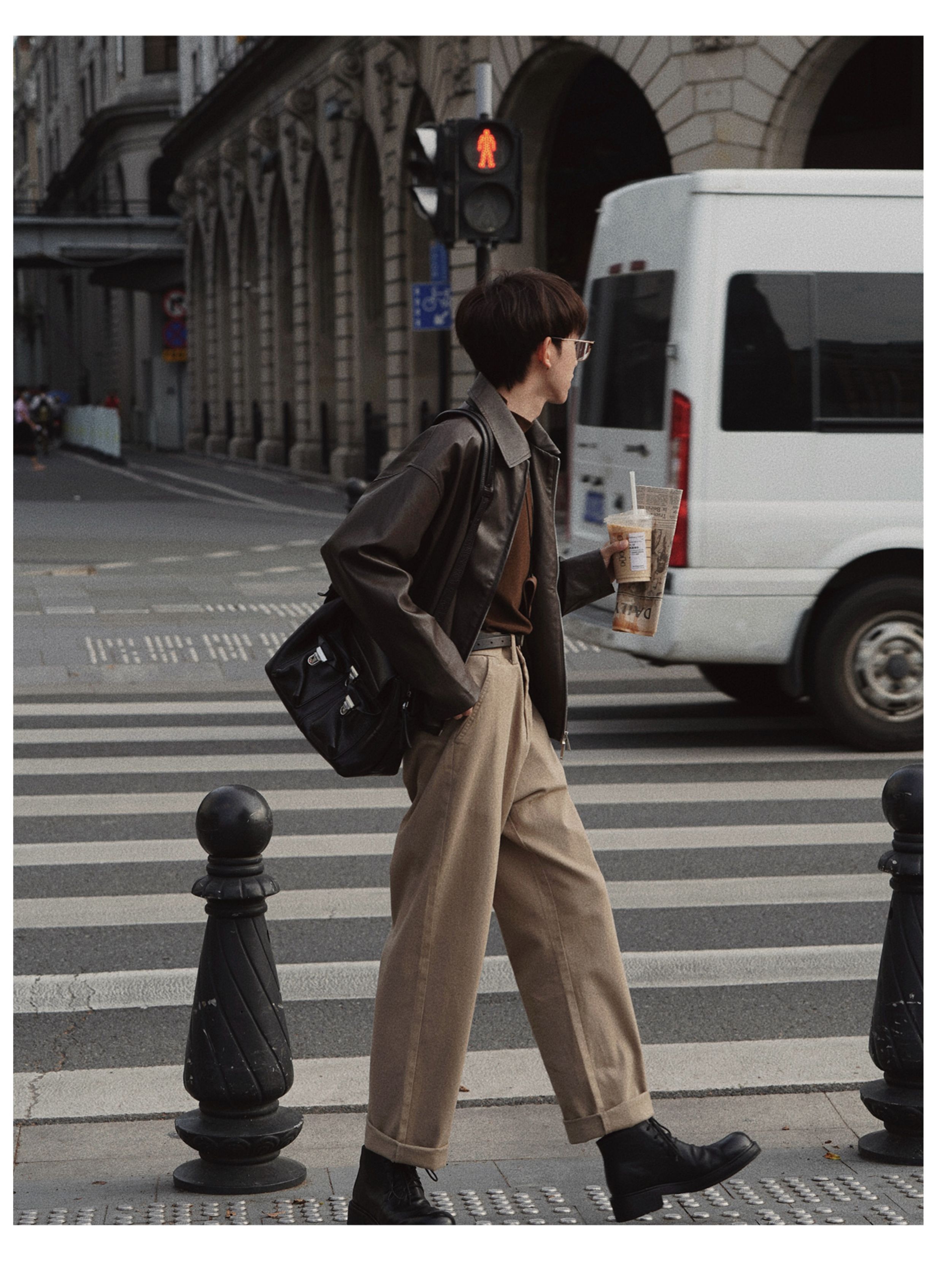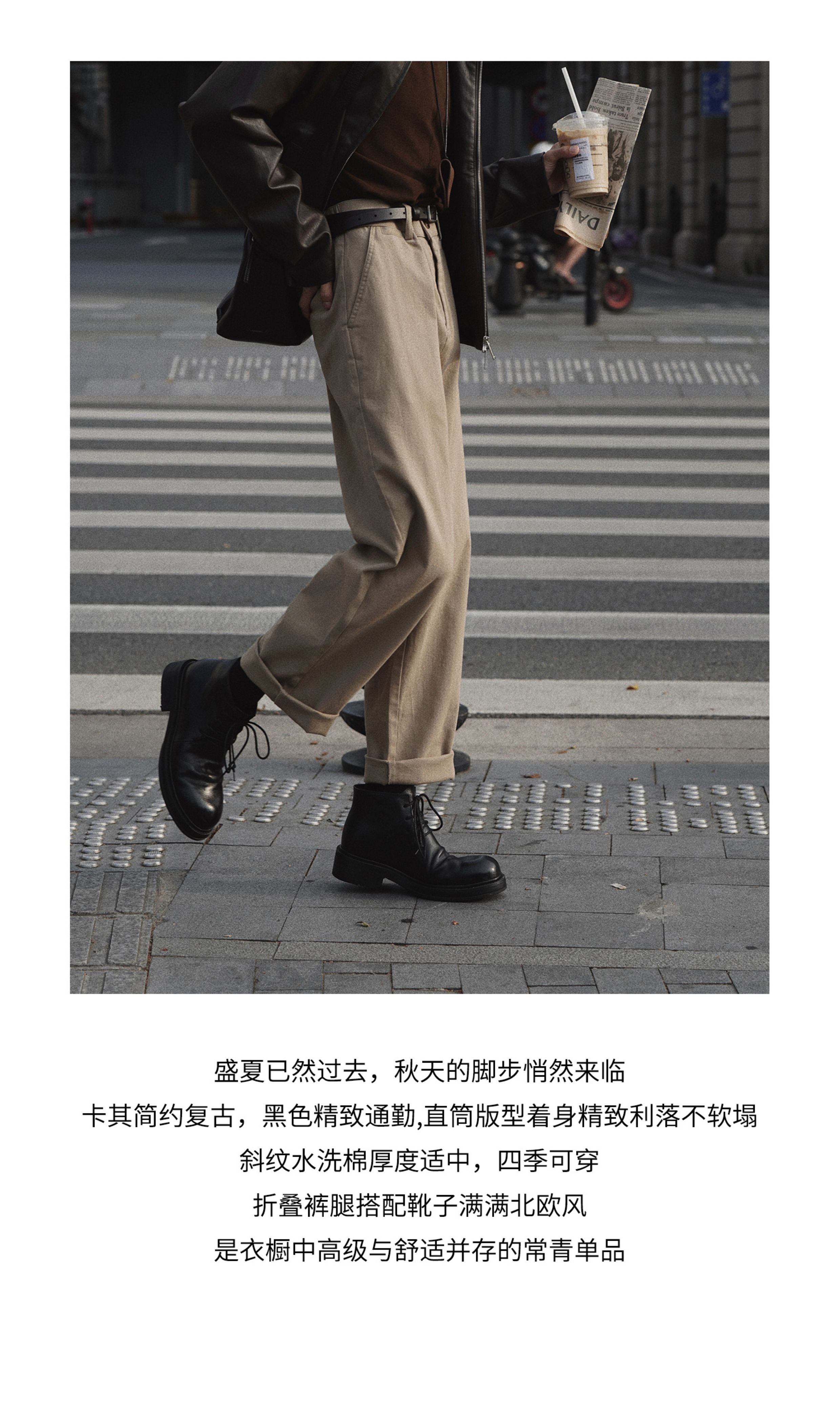 Eli [Old Street Light and Shadow] Retro Cotton Washed Twill Drapey Relaxed Simple Casual Men's Straight Pants