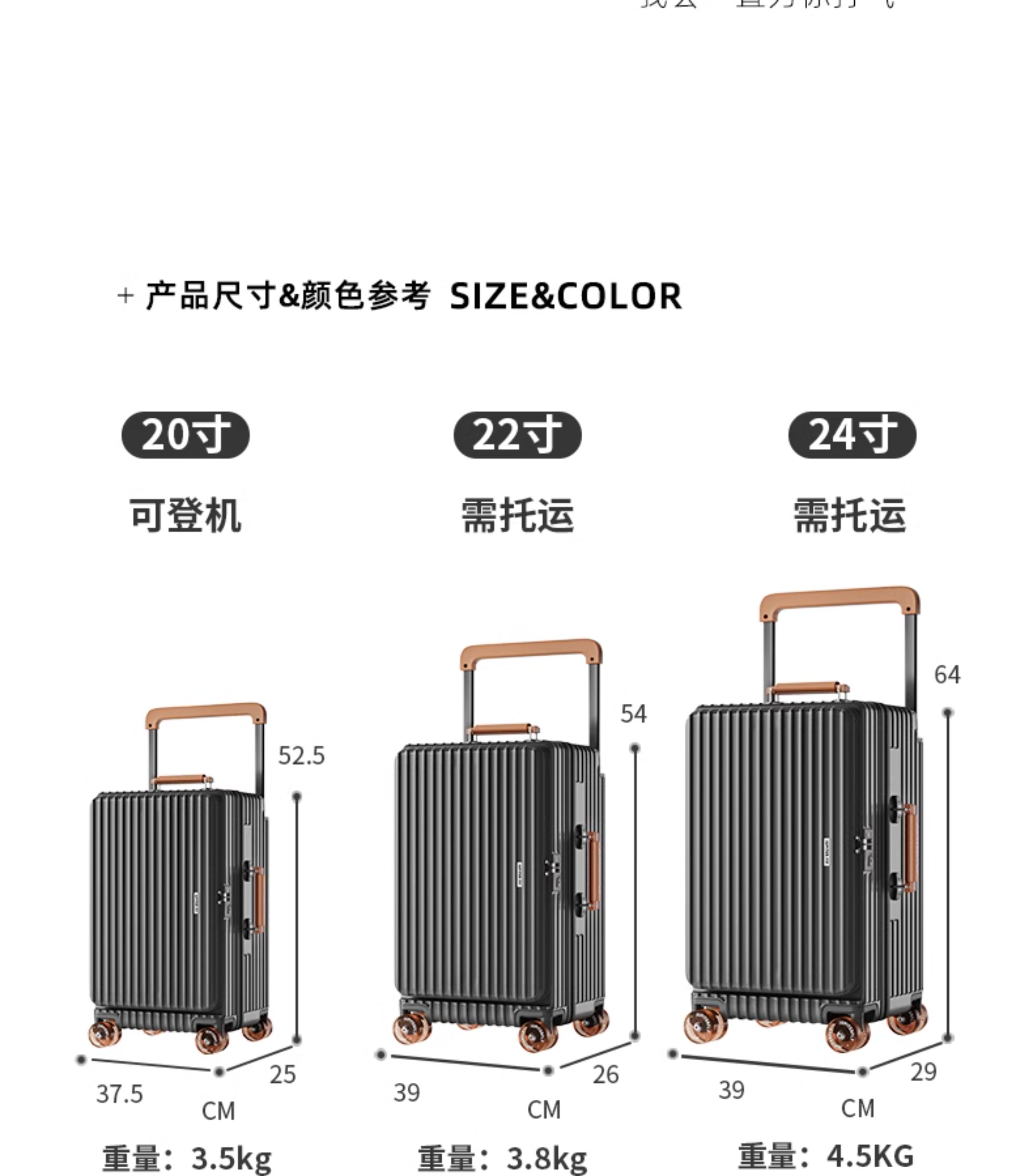 Side-Opening Suitcase with Wide Handle, Aluminum Frame, Large Capacity, Expandable, Combination Lock, Luggage for Women and Men