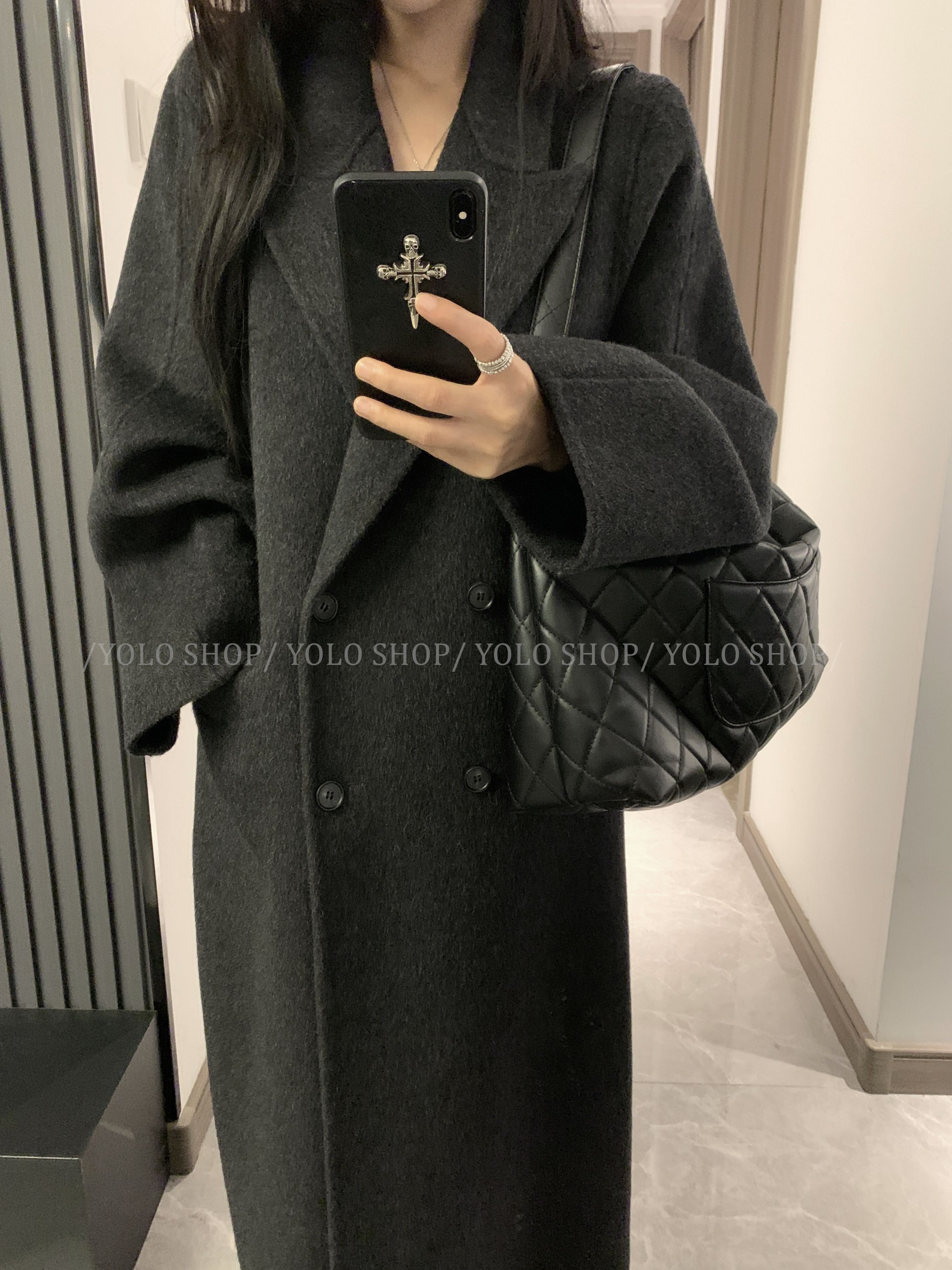黑灰色大衣属于每年一到冬天就会拿出来穿的款