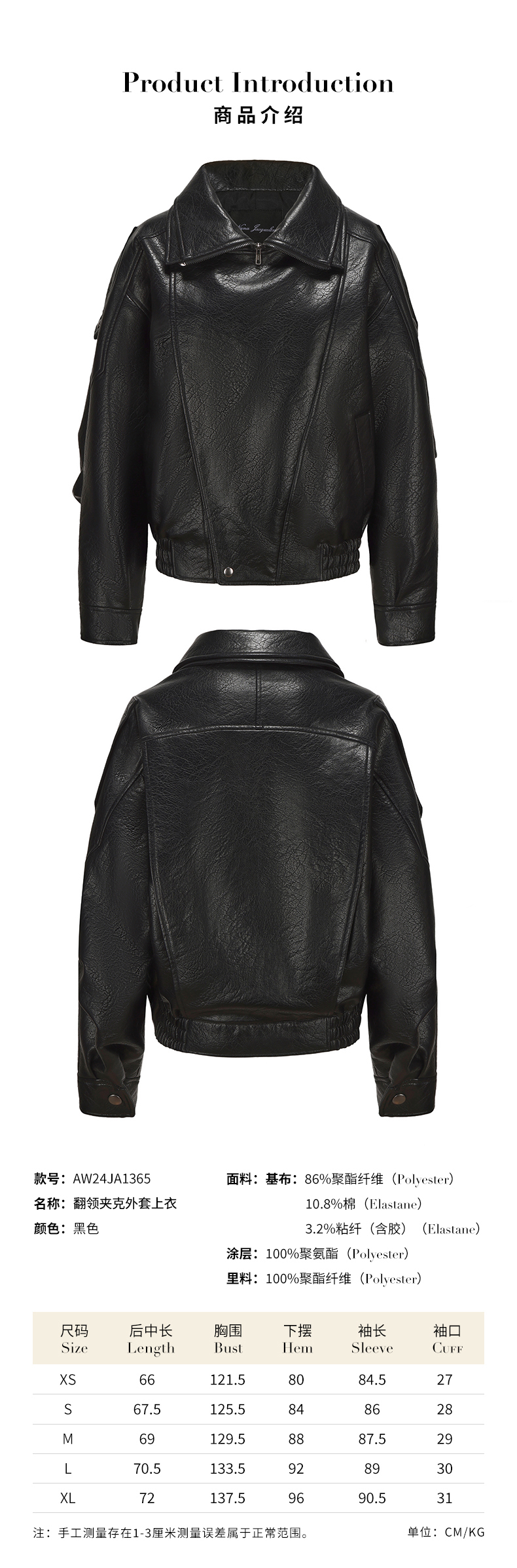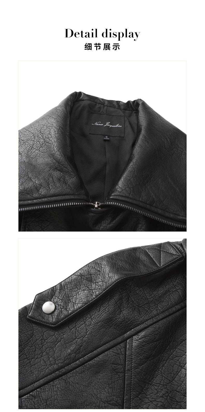 【Meng Zi Yi's Style】Nanajacqueline Lapel Jacket Leather Coat New Off-Shoulder Fashion Short Jacket for Women