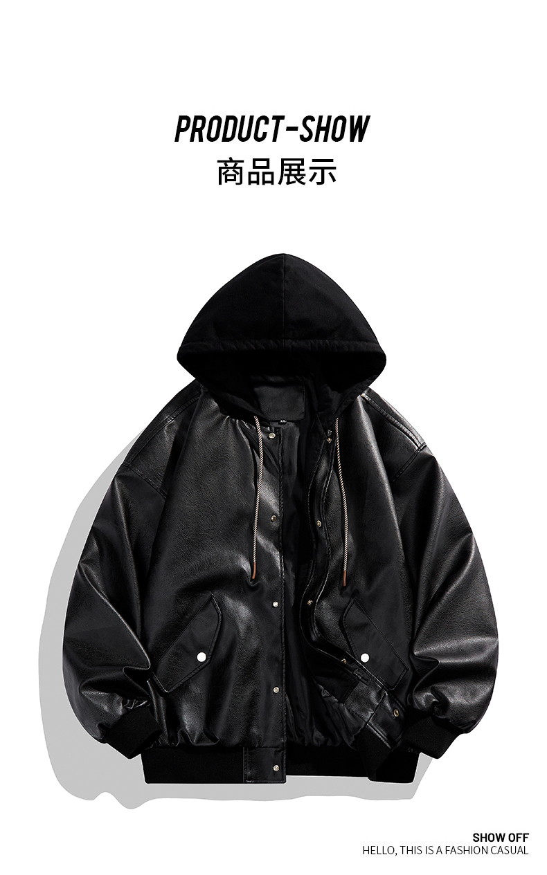 Wassup Shark American Retro Pu Leather Jacket Men's Hooded Jacket Winter Thickened Coat Loose Trendy Brand Top