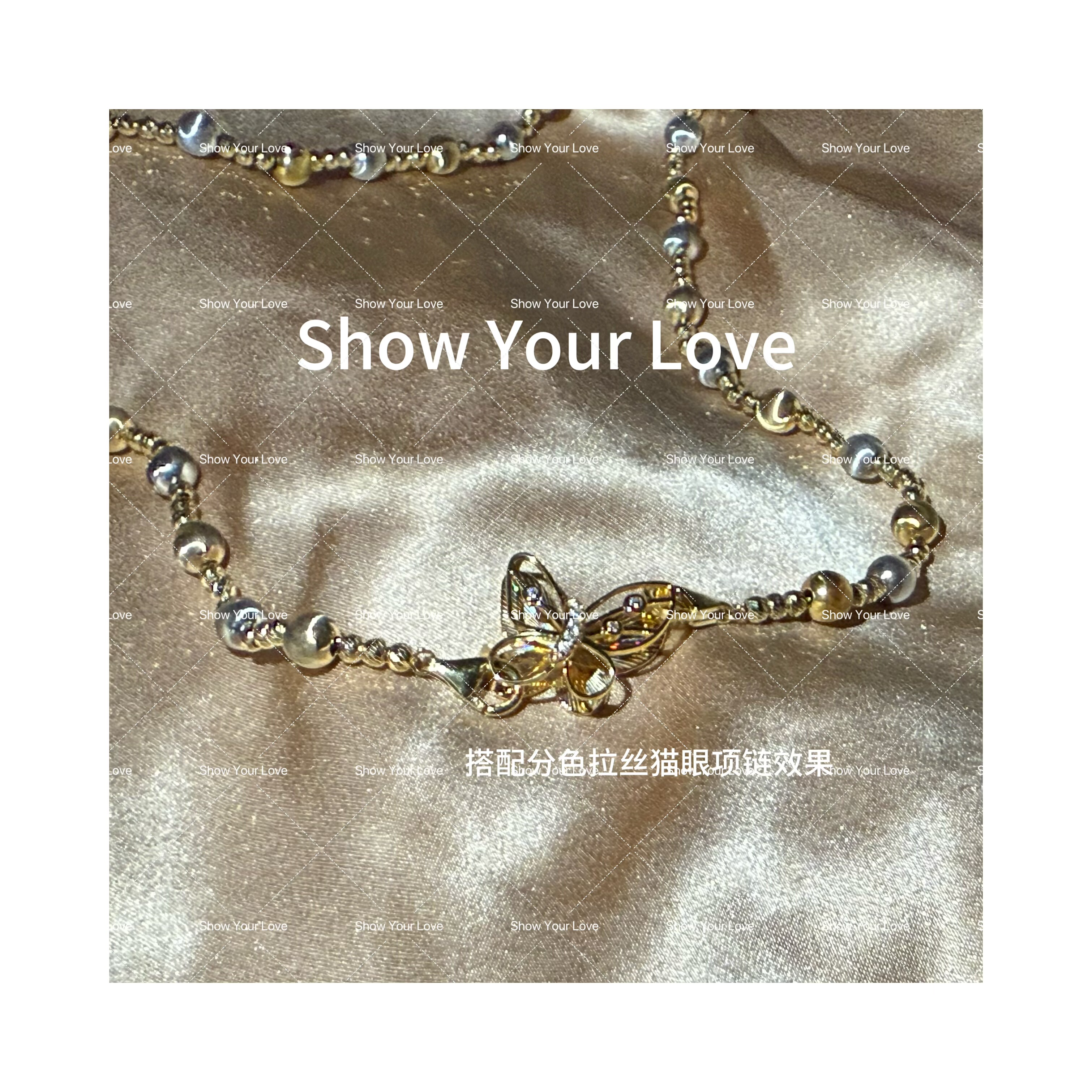 【Show LAOSHU 】Brushed Cat's Eye Necklace/Bracelet Bead Chain, Layered in Different Colors, K Gold Craftsmanship Silver Jewelry