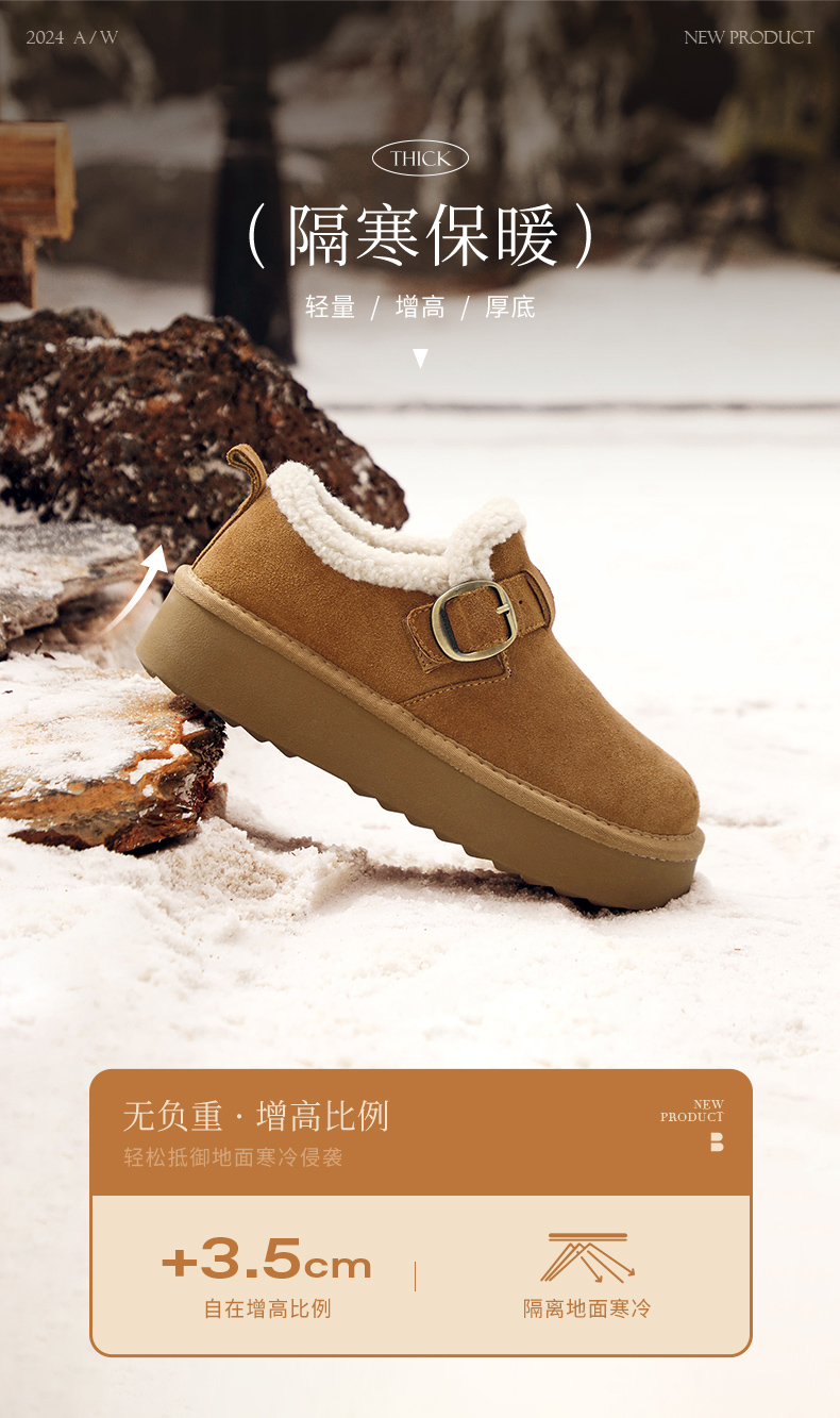 Zhao Jinmai's Same Style Belle Snow-Top Coffee-Colored New All-Inclusive Thick-Soled Birkenstock-Style Cotton Shoes, Snow Boots, Fleece-Lined Single Shoes D1V1