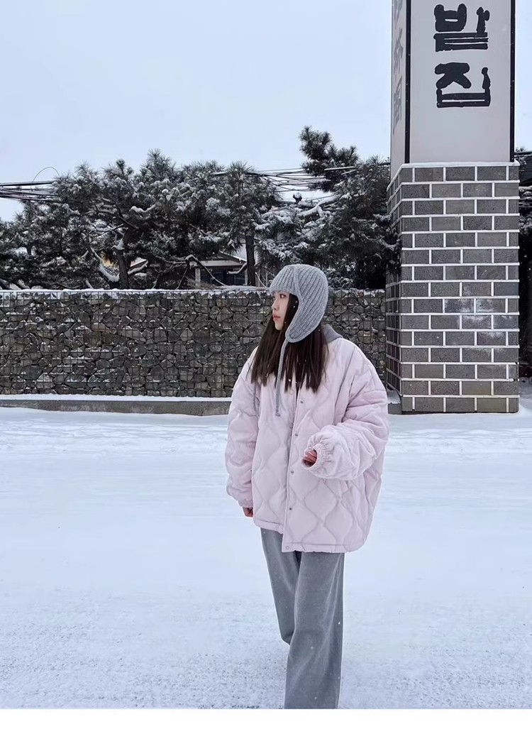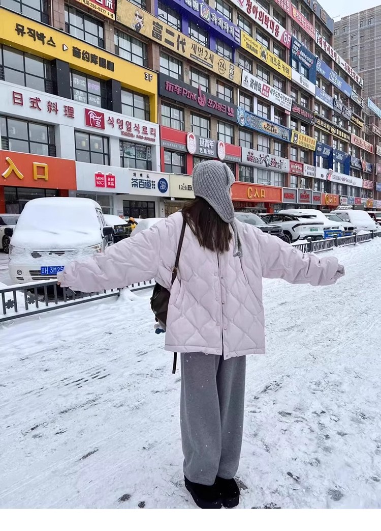 Light Purple Quilted down Cotton Jacket for Women, Pink Winter New Style, Loose Short Cotton Coat for Petite Women