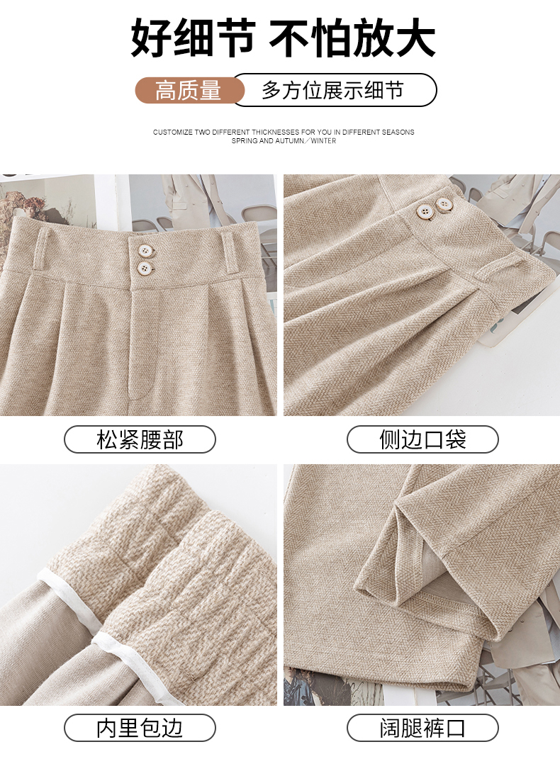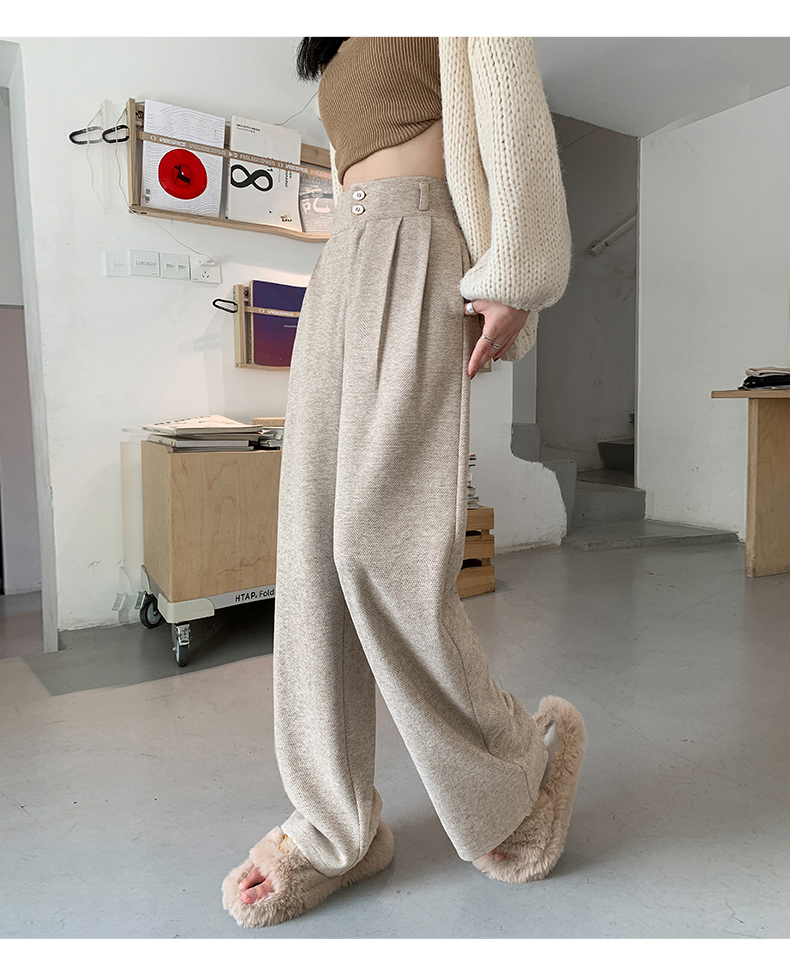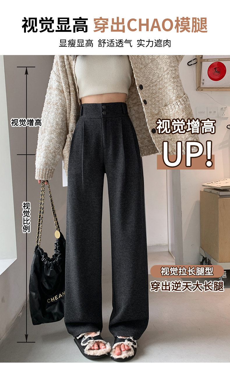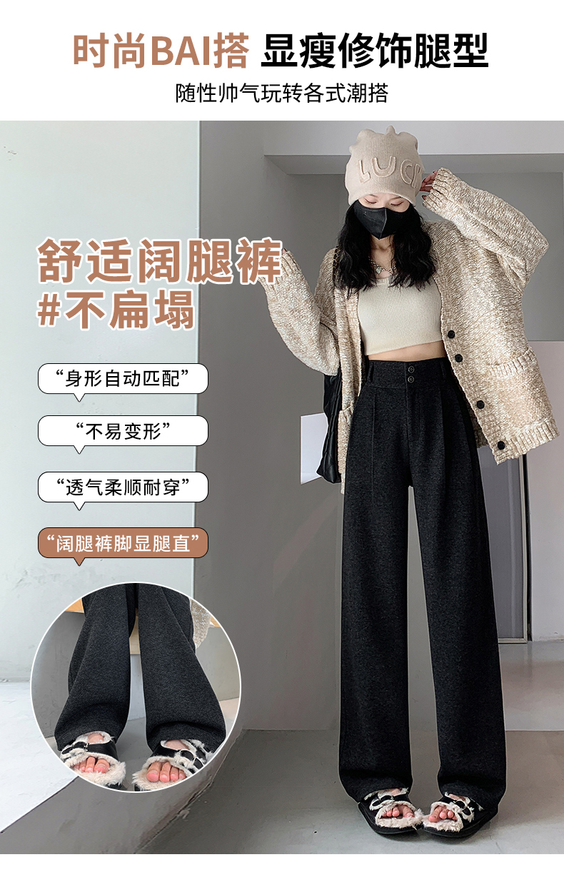 Woolen Wide-Leg Pants for Women 2025 New Spring and Autumn Slim Straight-Leg Pants with Drape, High-End Feel, Fleece-Lined Casual Suit Pants