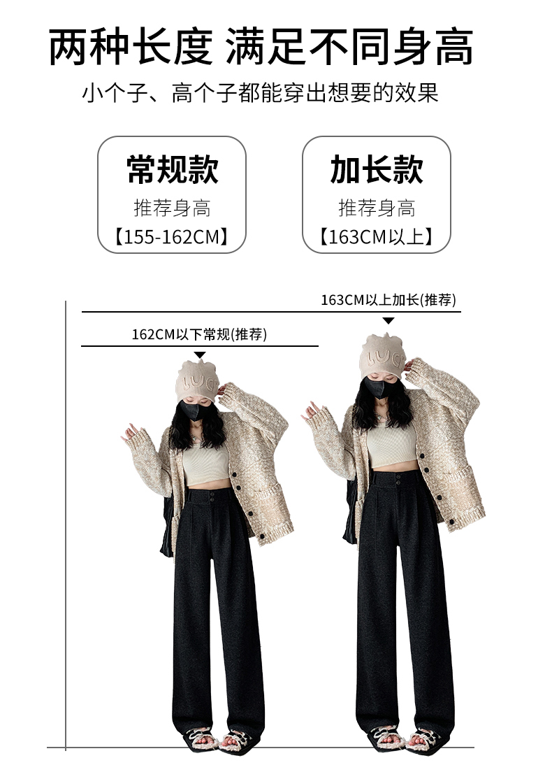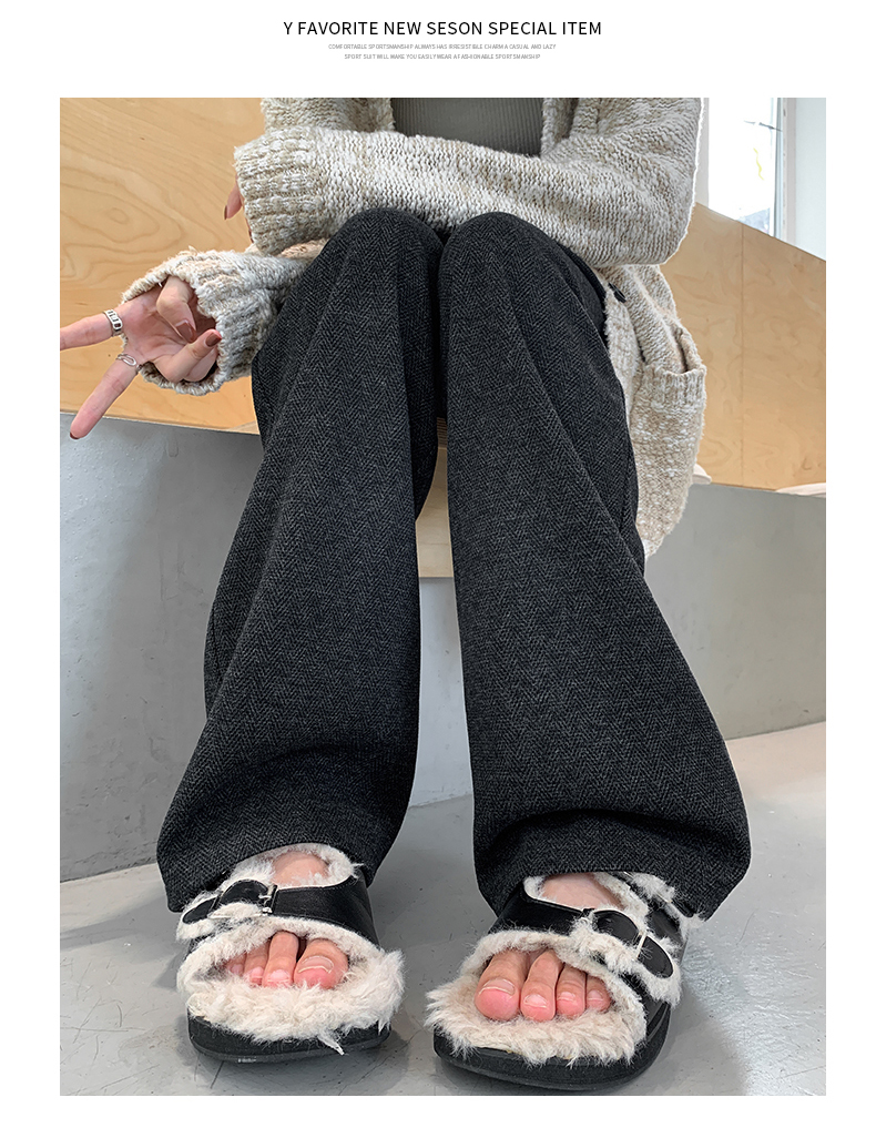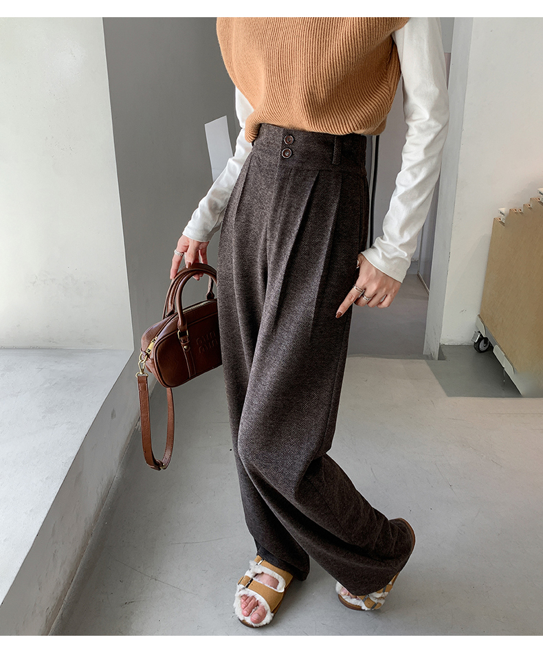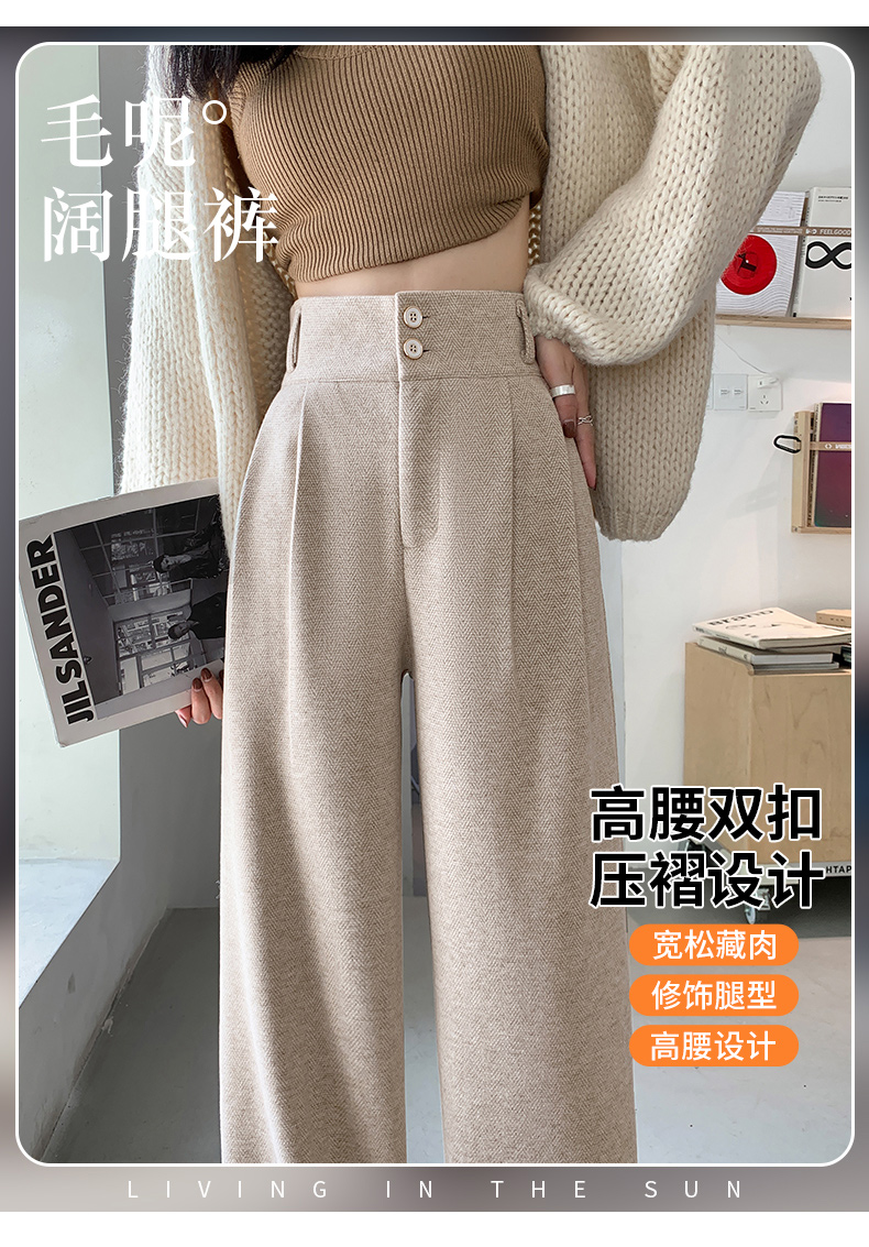 Woolen Wide-Leg Pants for Women 2025 New Spring and Autumn Slim Straight-Leg Pants with Drape, High-End Feel, Fleece-Lined Casual Suit Pants