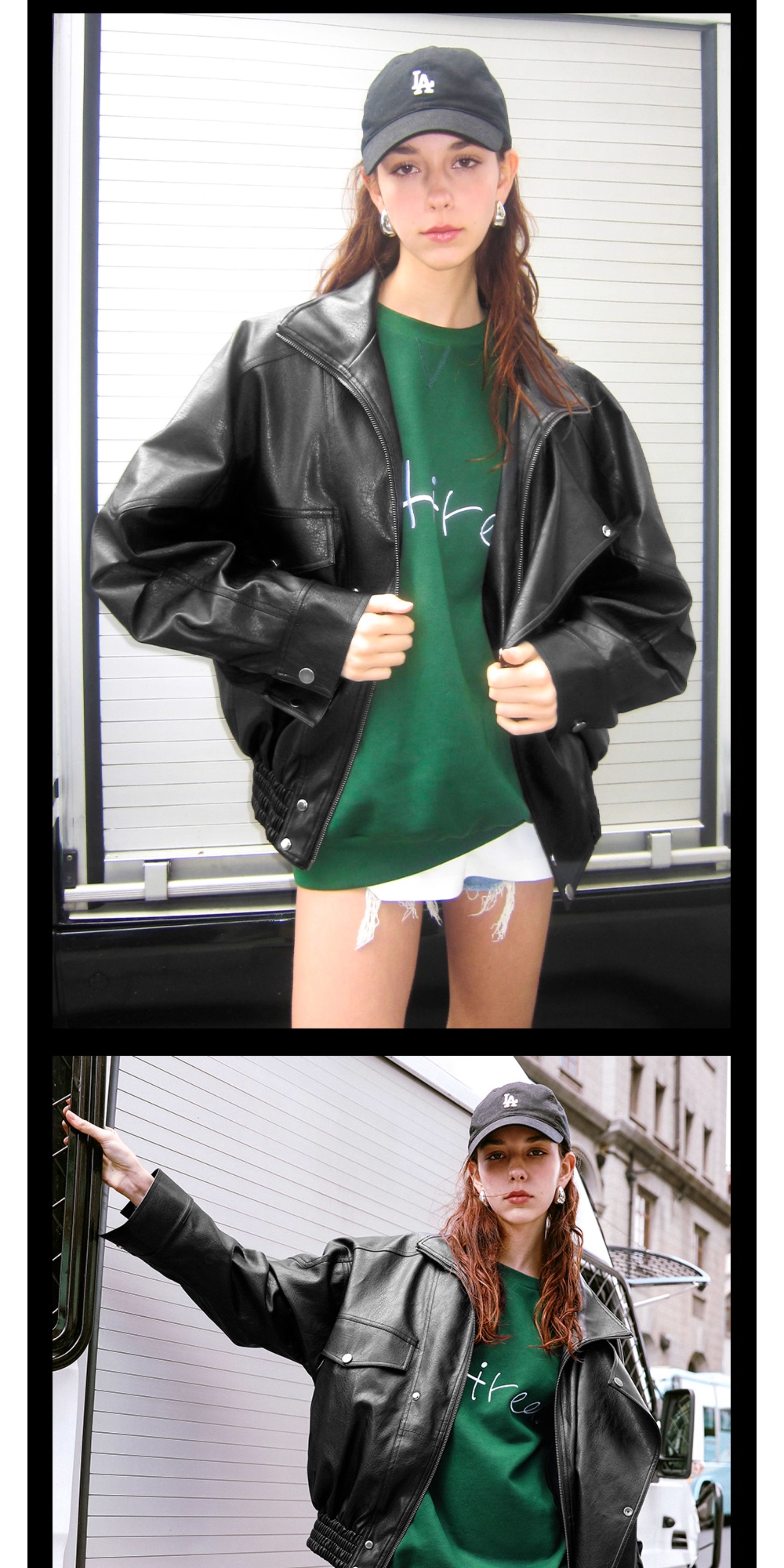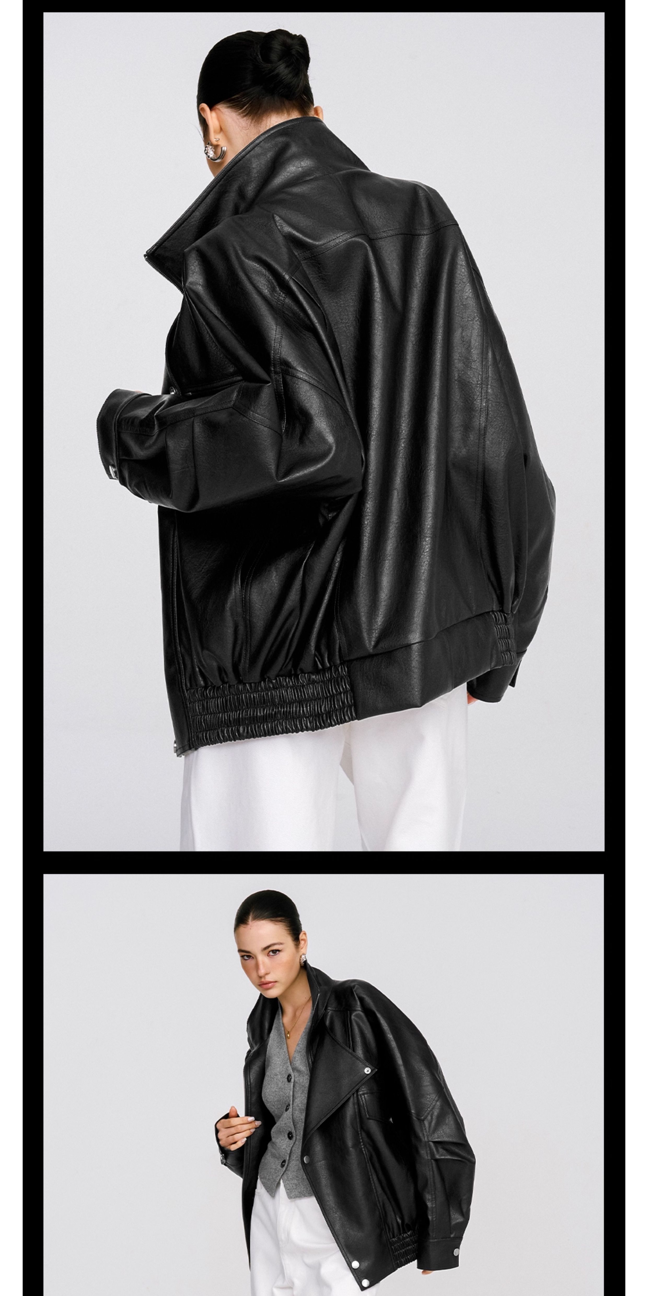 Tr She Hot Thelma and Louise Black Lychee Pattern Vintage Design Loose Structured Functional Style Pu Leather Jacket Coat