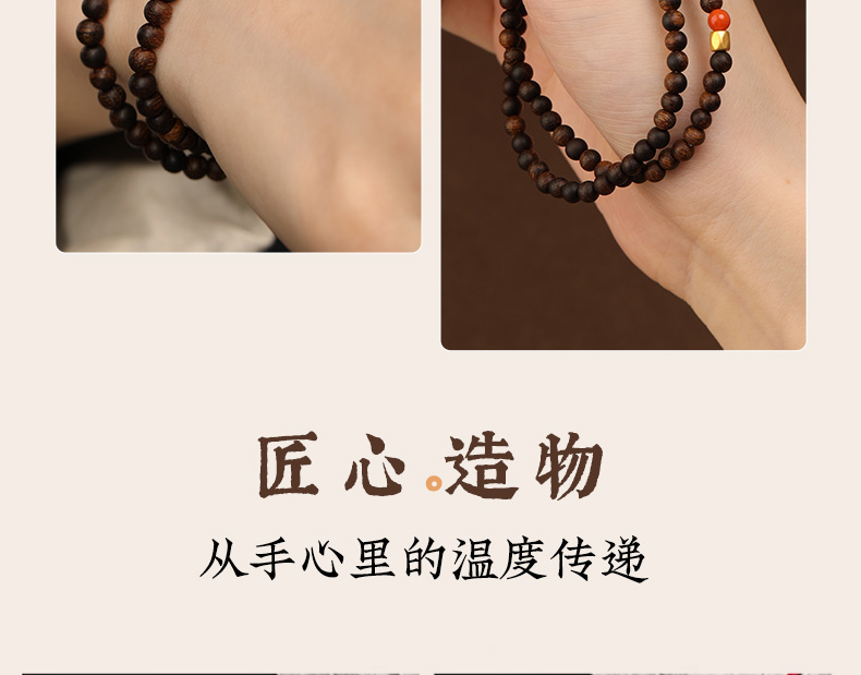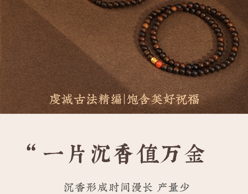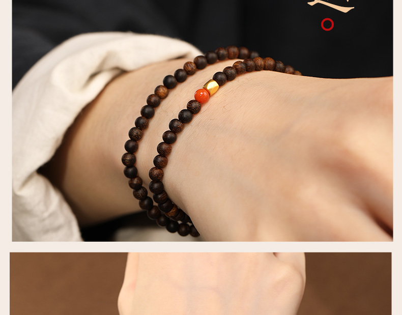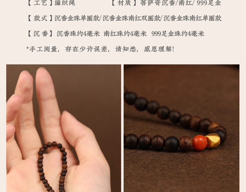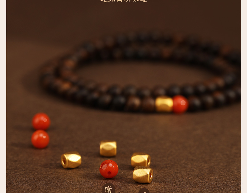 Authentic 999 Pure Gold Transfer Bead Bracelet with Natural Agarwood Buddhist Beads, Double-Circle Small Prayer Beads, Women's Gold Bracelet for the Year of Birth