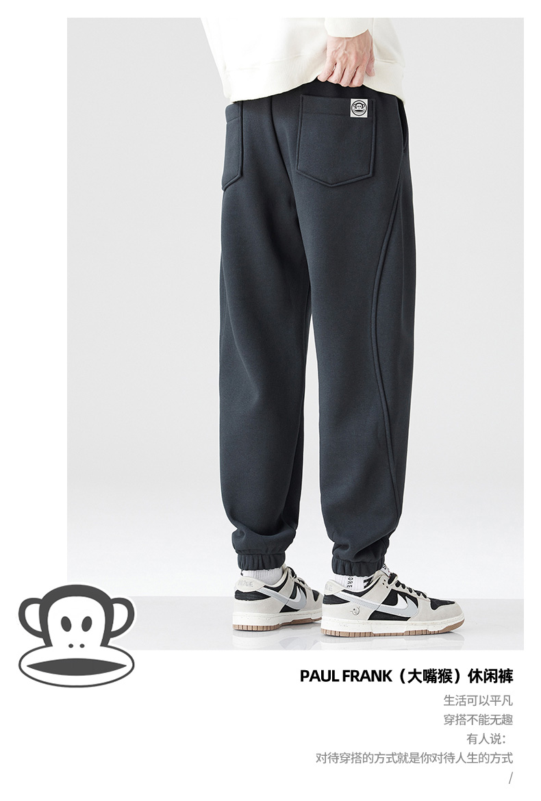 Paulfrank/Big Mouth Monkey Winter Heavyweight Knit Sweatpants for Men, Loose Fit, Cuffed, Casual, Fleece-Lined, Thickened Joggers