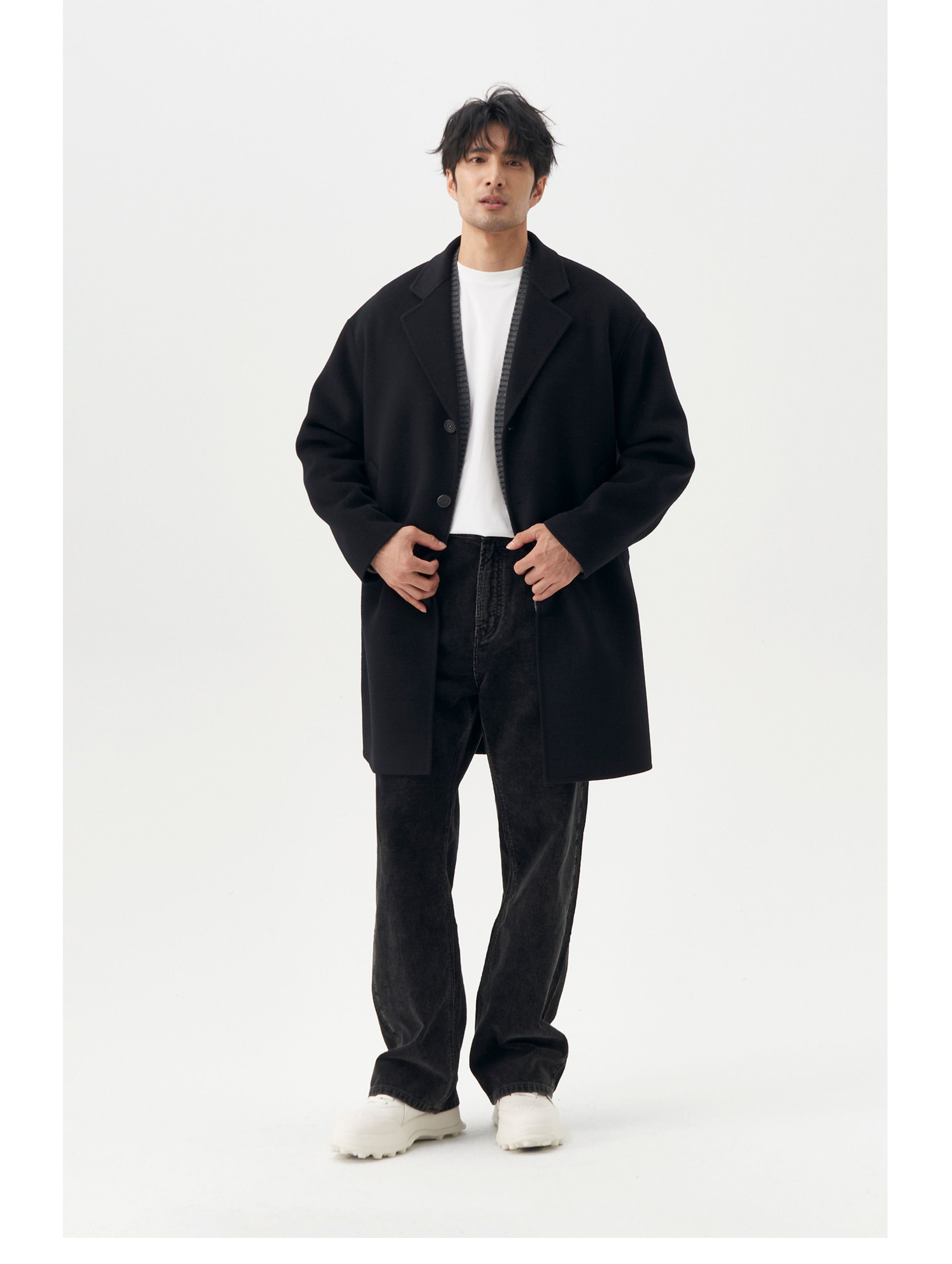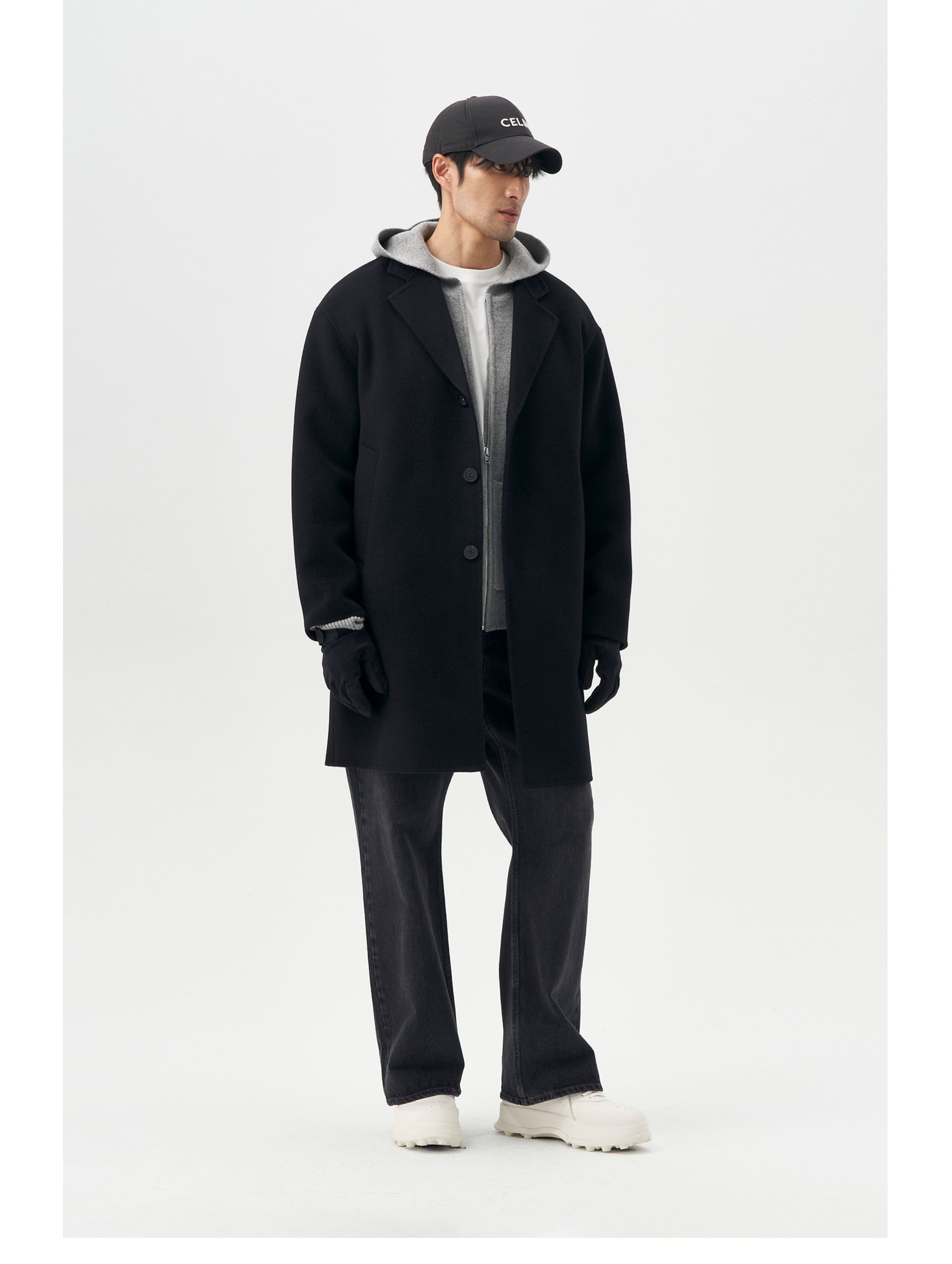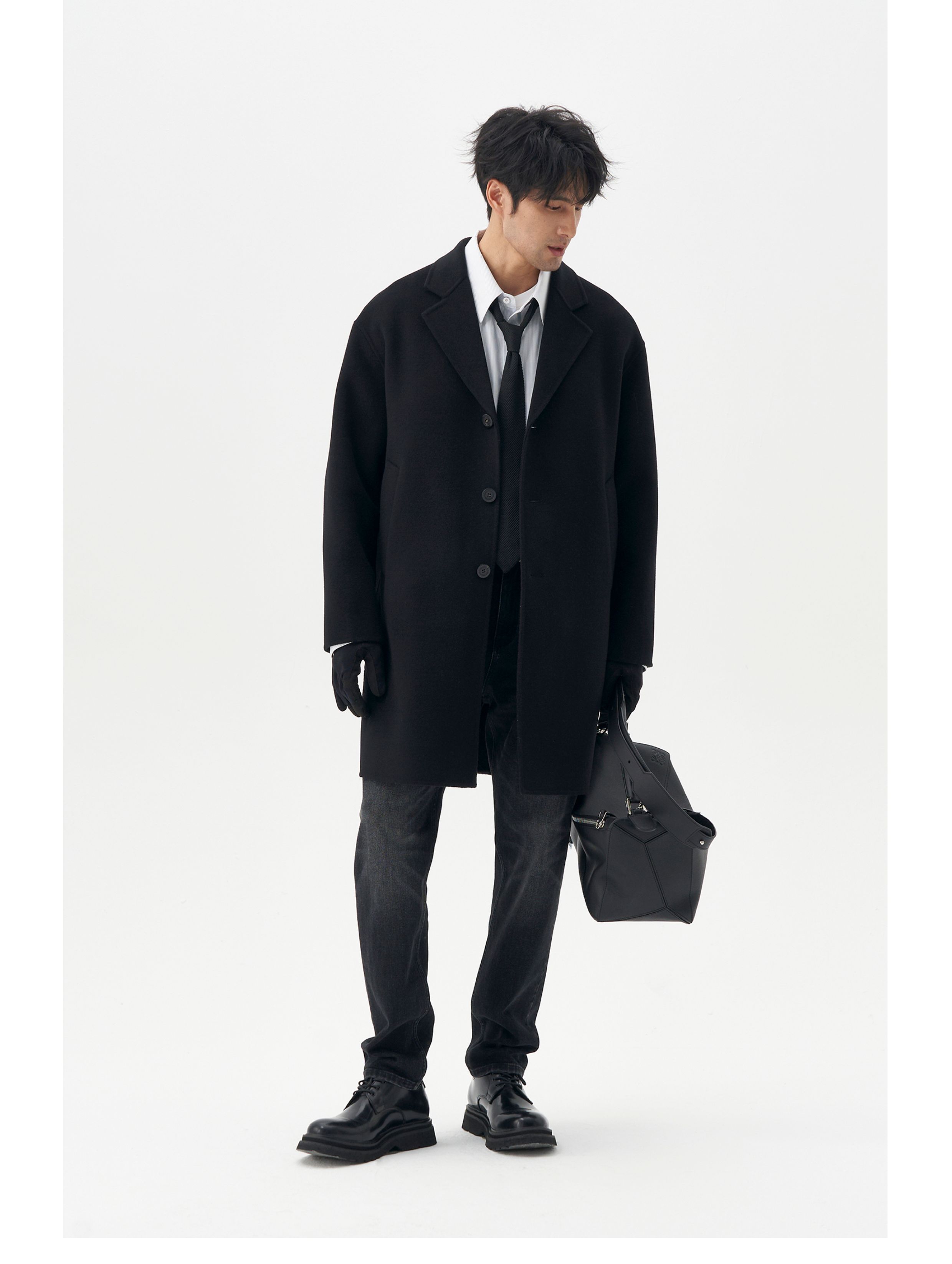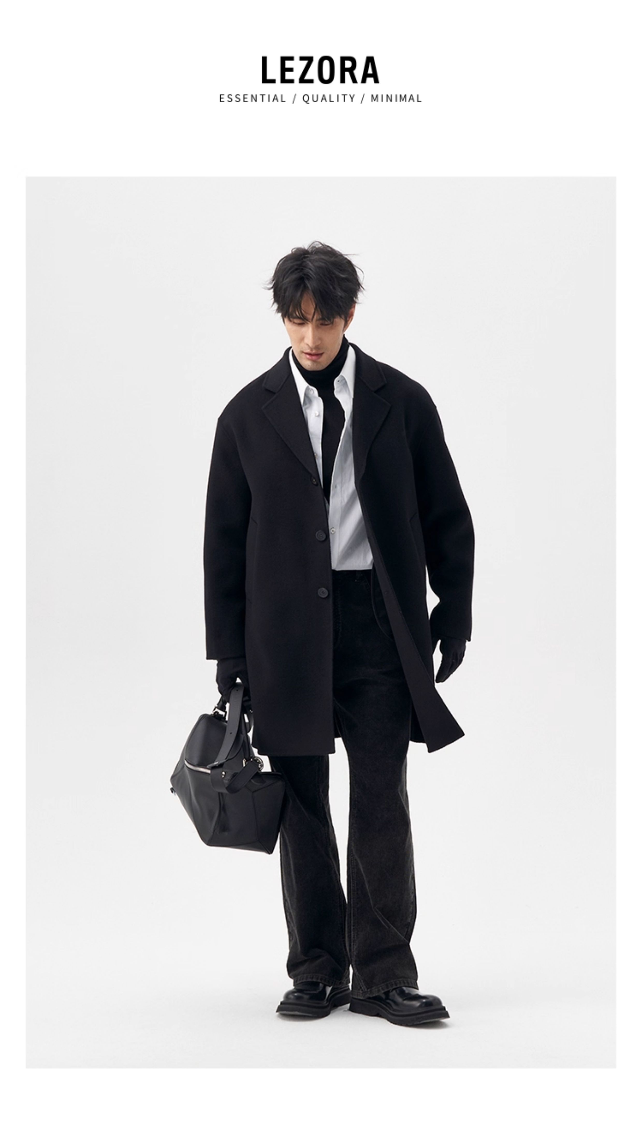 Lezora Is Full of Sexual Tension! Autumn and Winter Double-Sided Cashmere Micro-Profile Mid-Length Cashmere Woolen Coat for Men