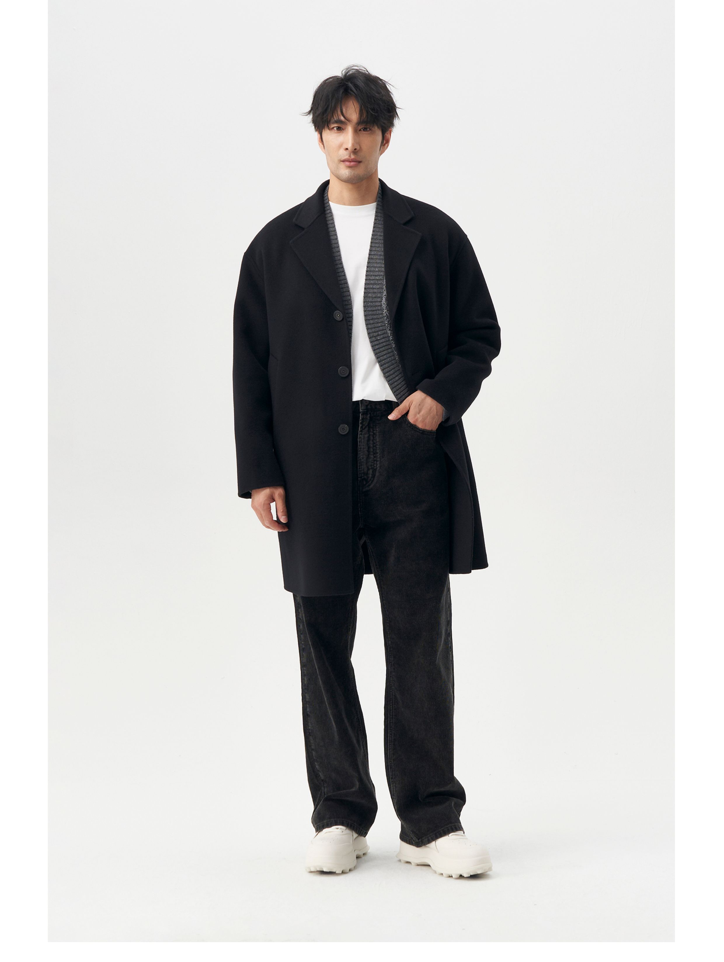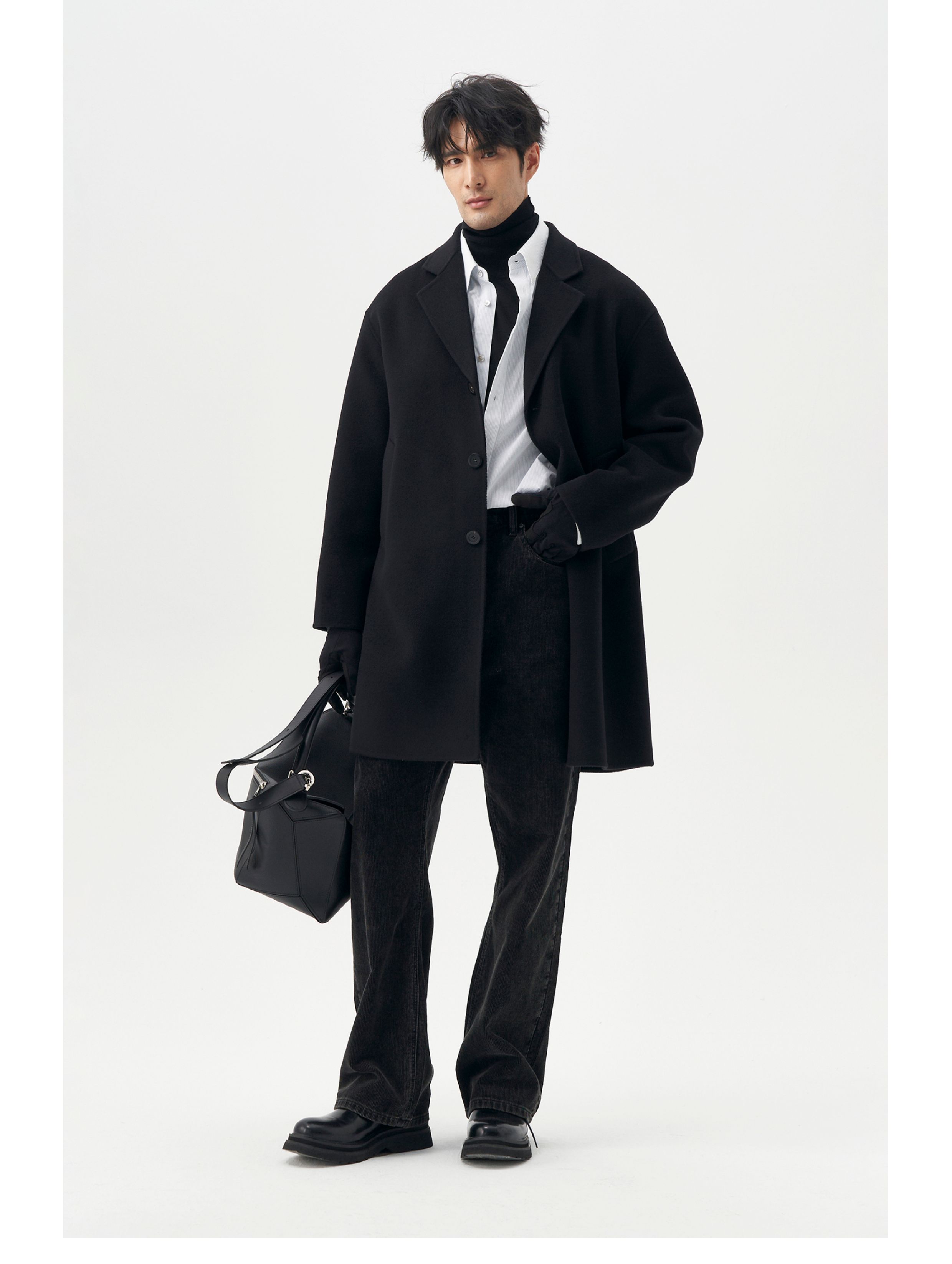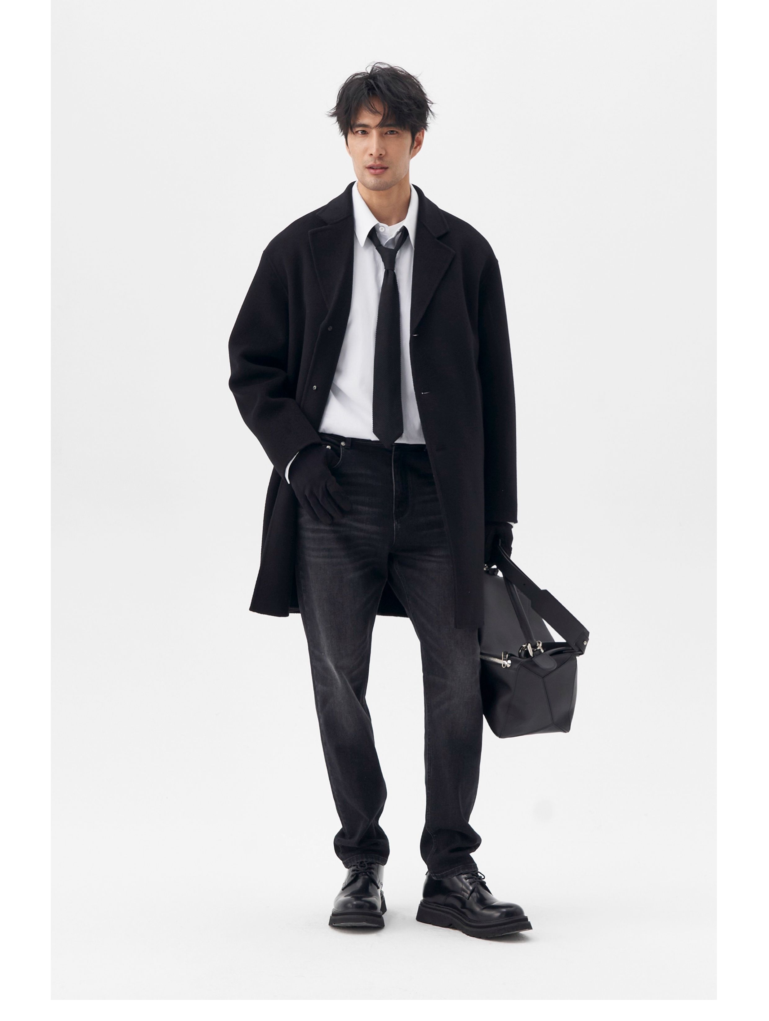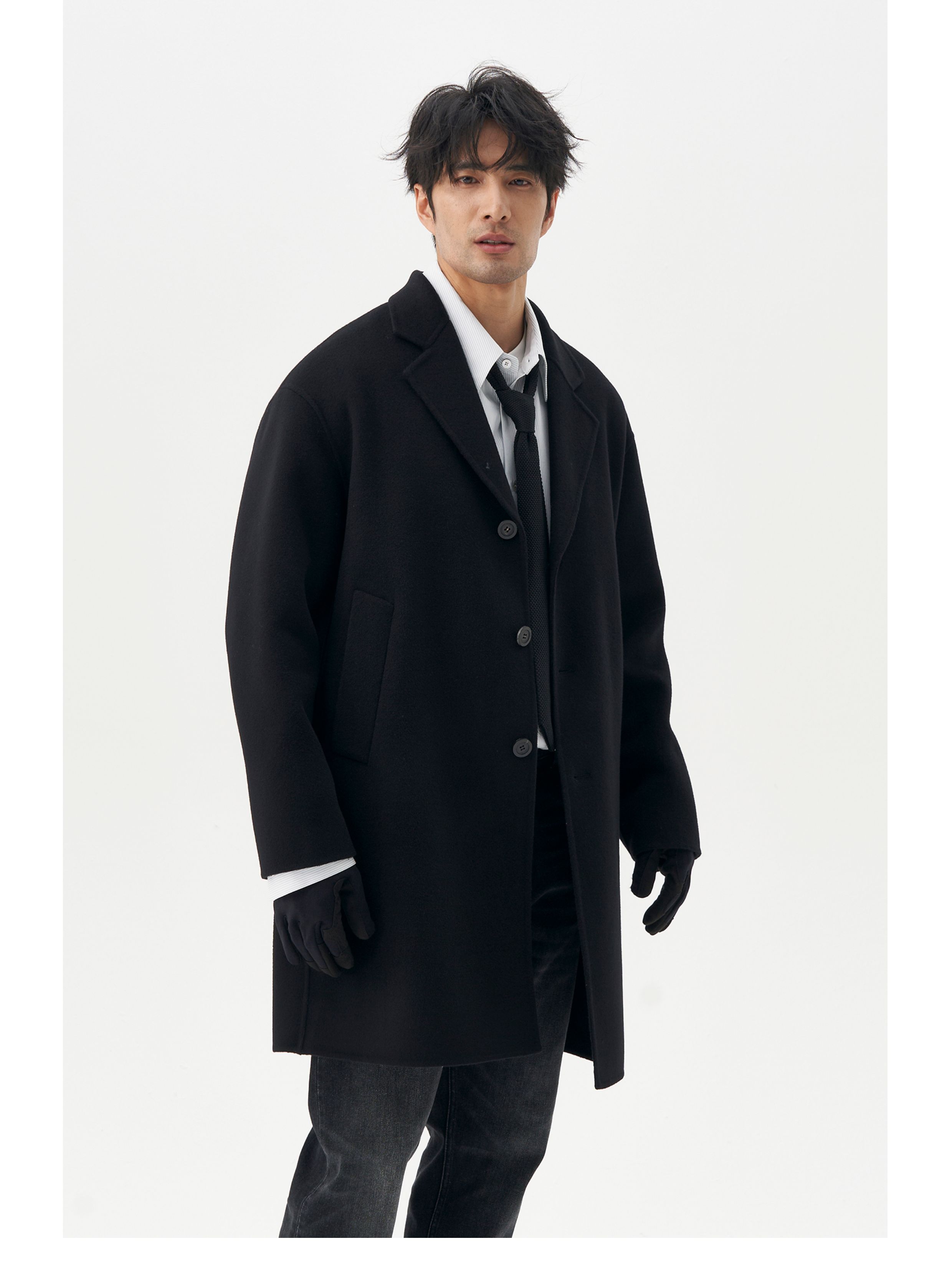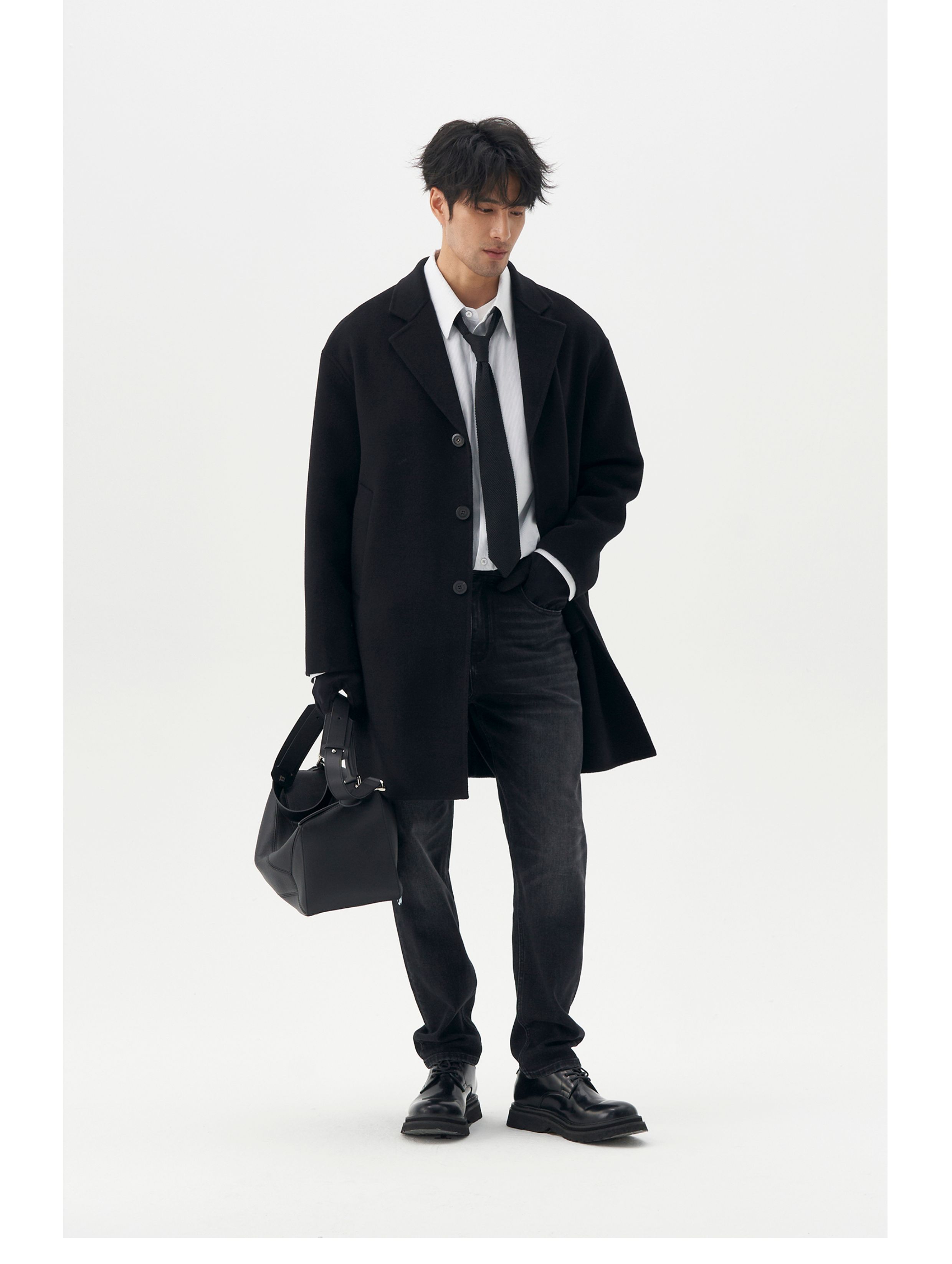 Lezora Is Full of Sexual Tension! Autumn and Winter Double-Sided Cashmere Micro-Profile Mid-Length Cashmere Woolen Coat for Men