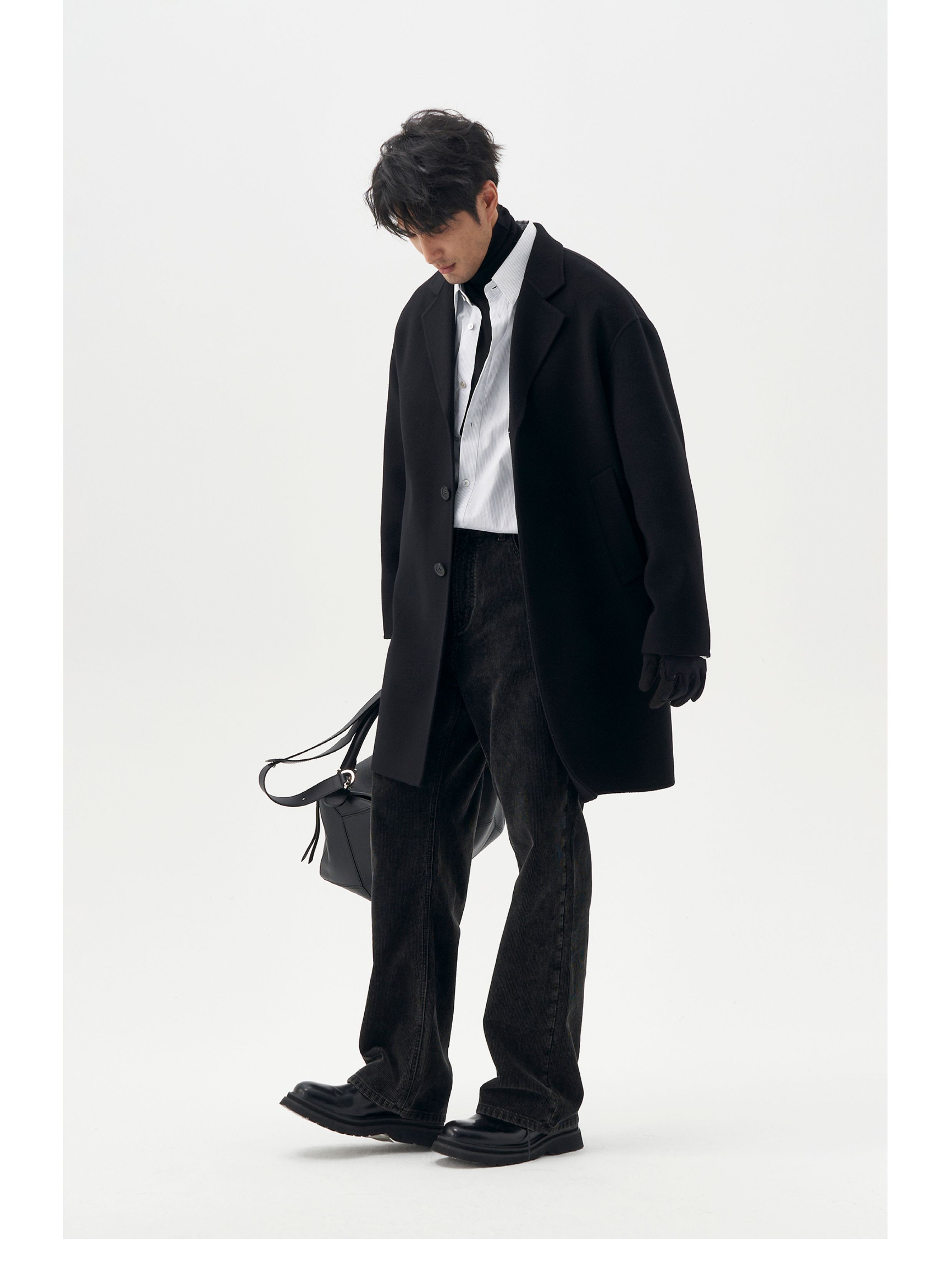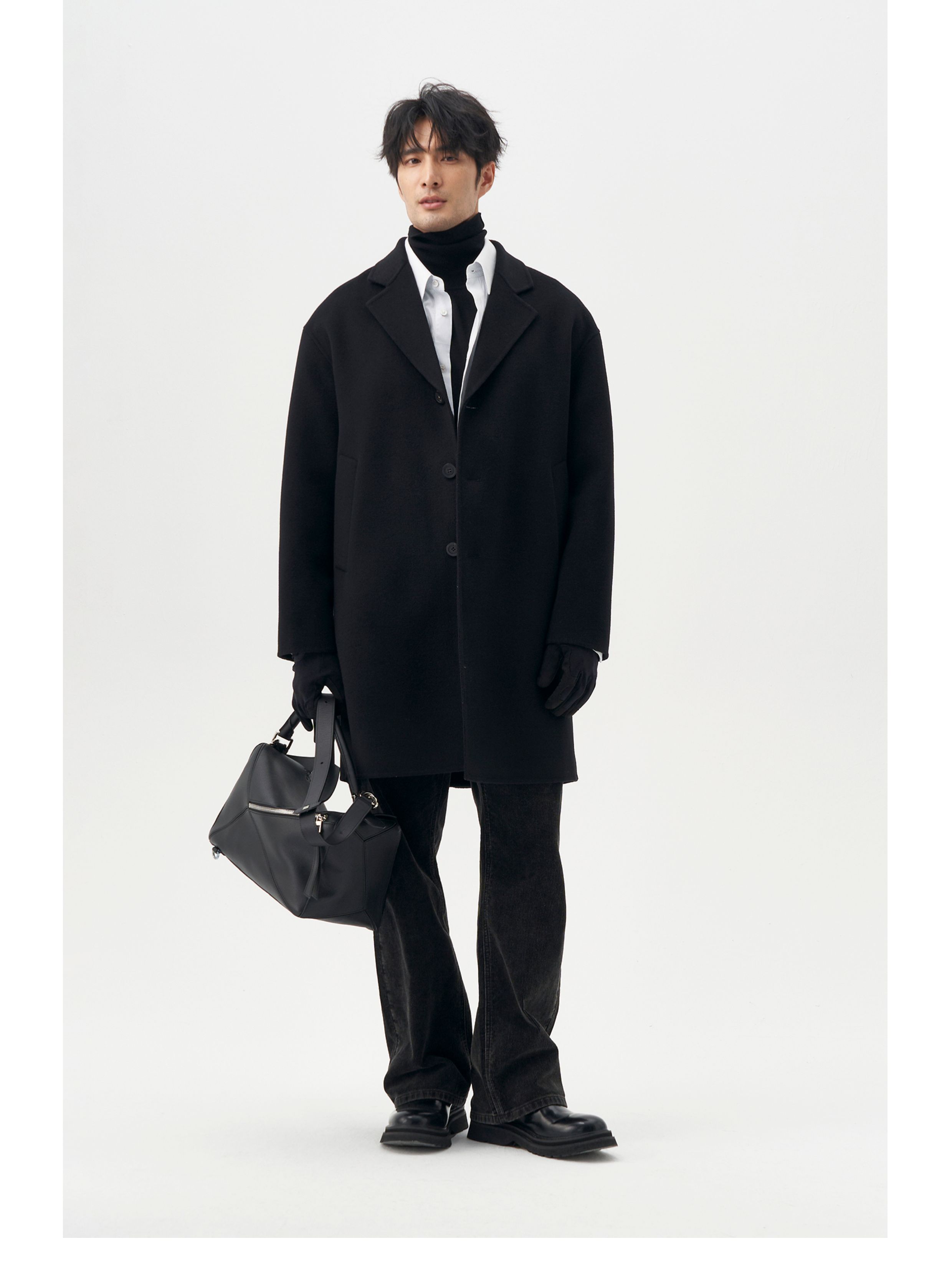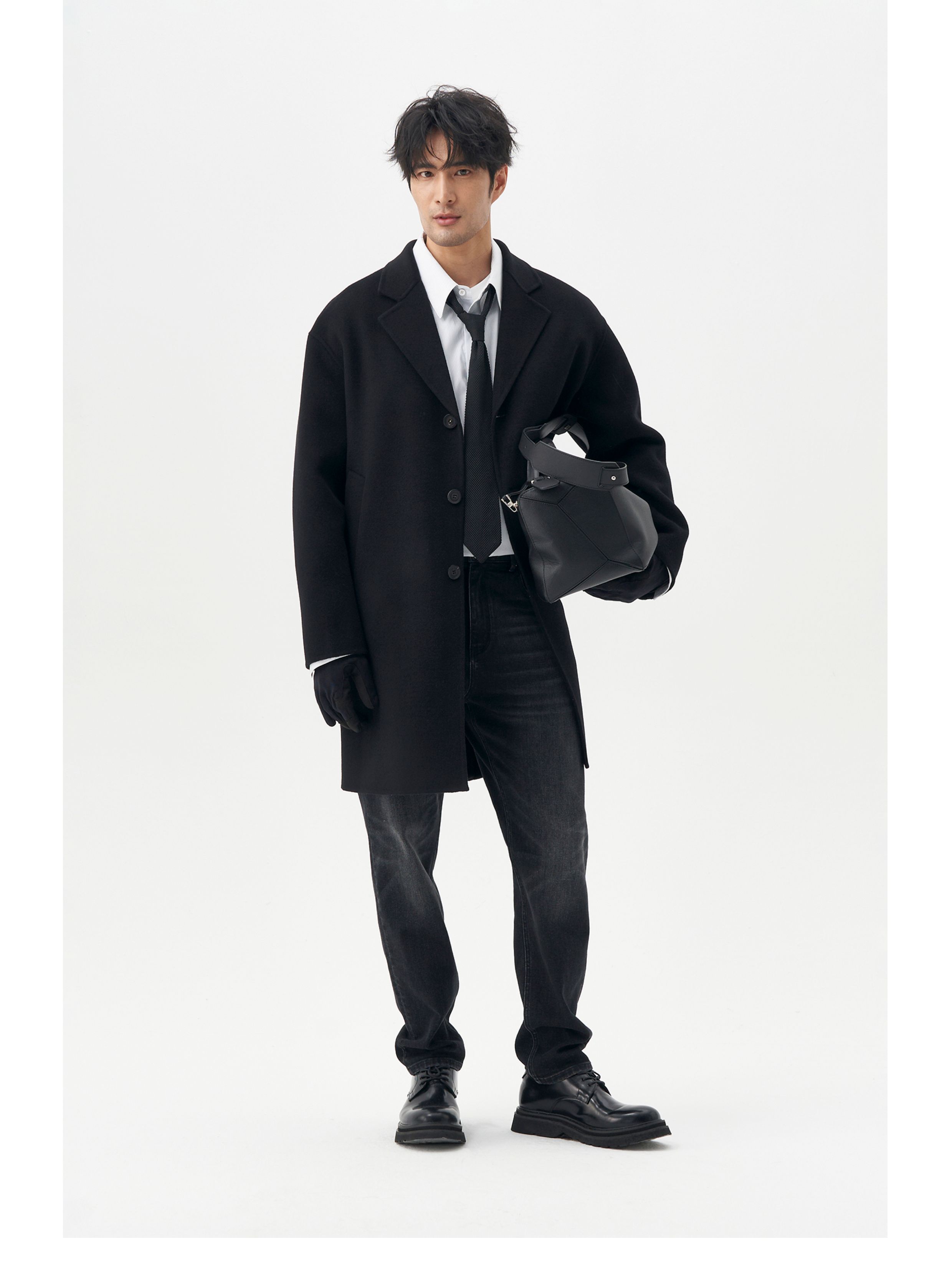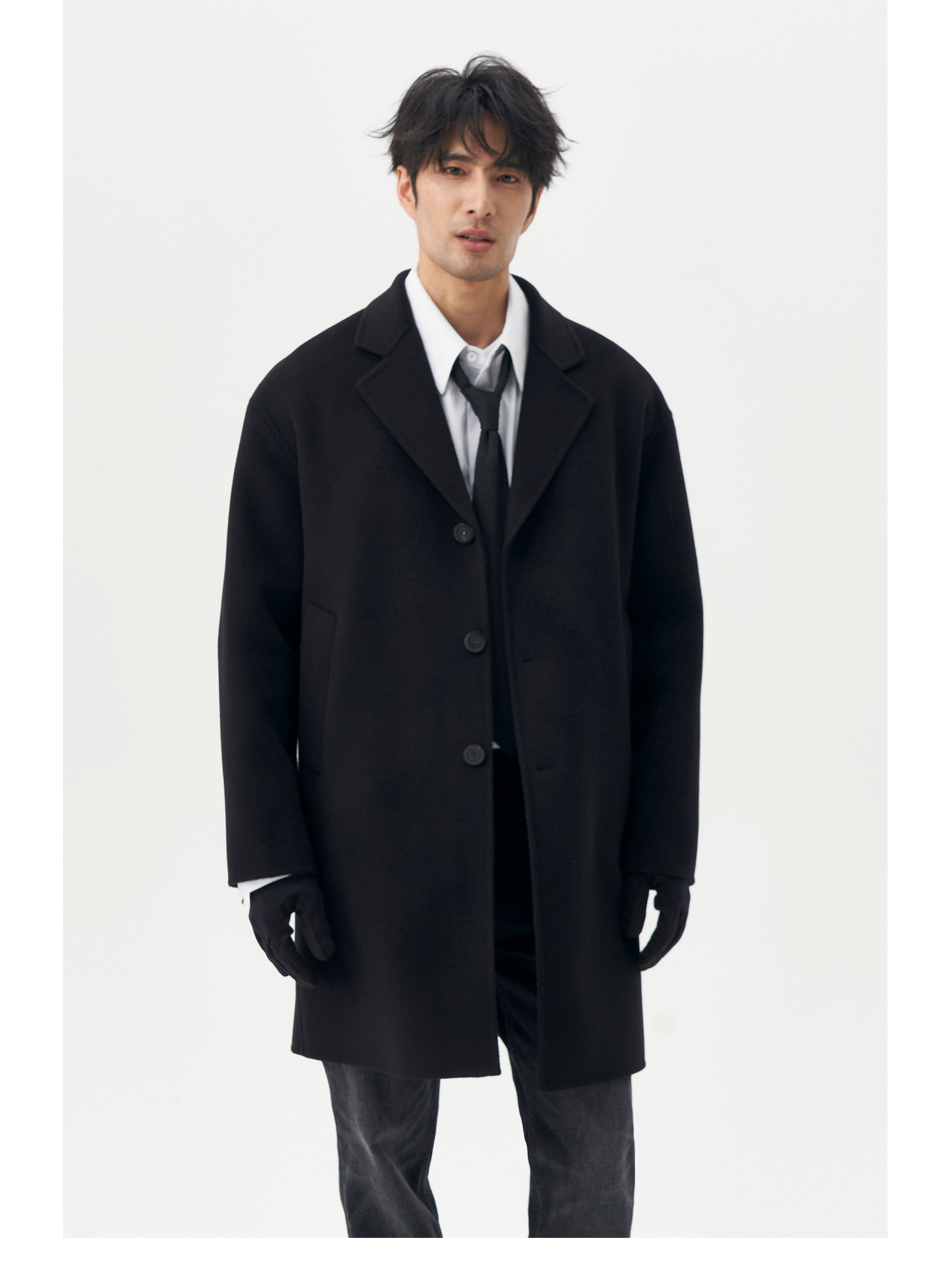 Lezora Is Full of Sexual Tension! Autumn and Winter Double-Sided Cashmere Micro-Profile Mid-Length Cashmere Woolen Coat for Men