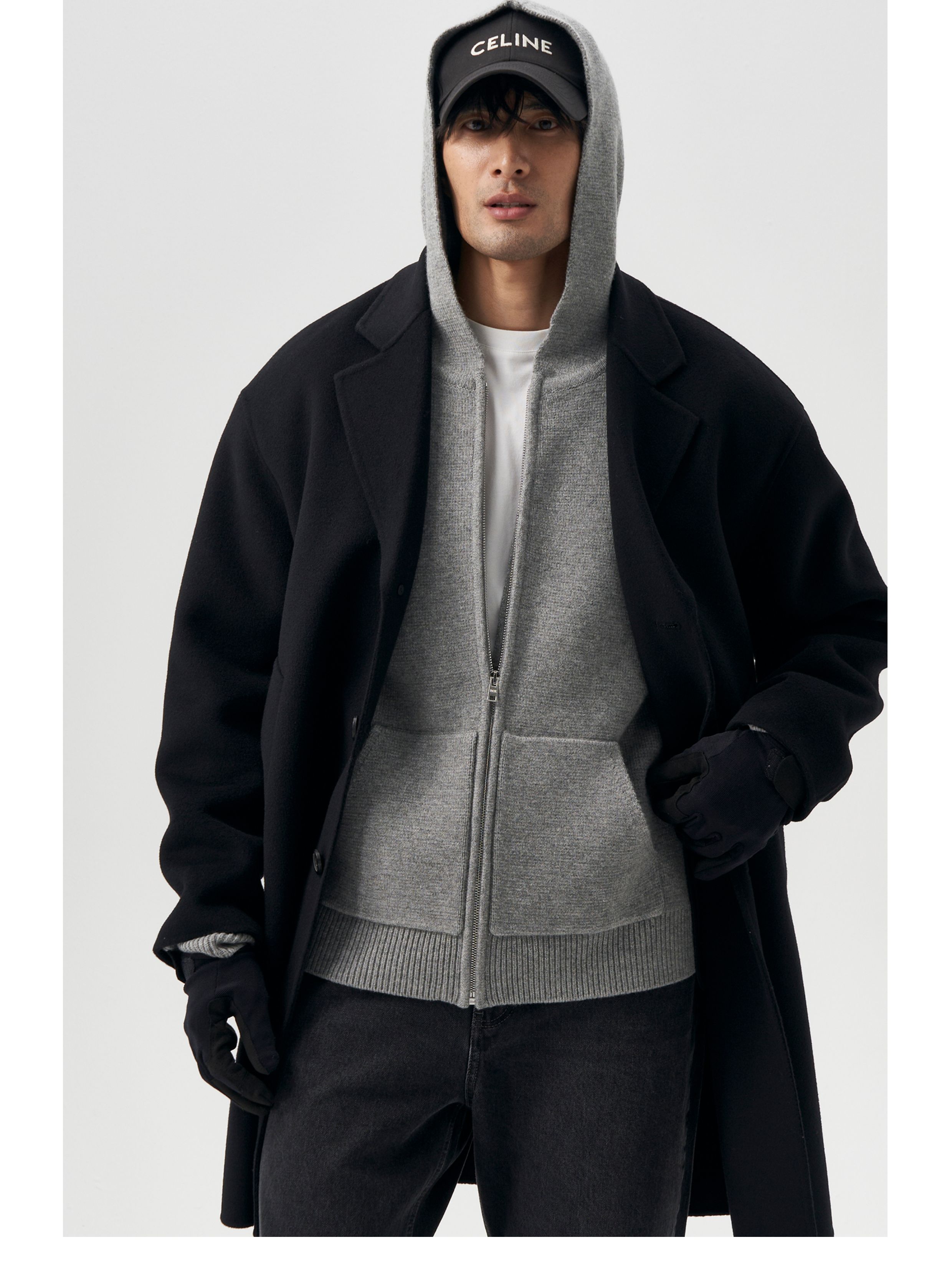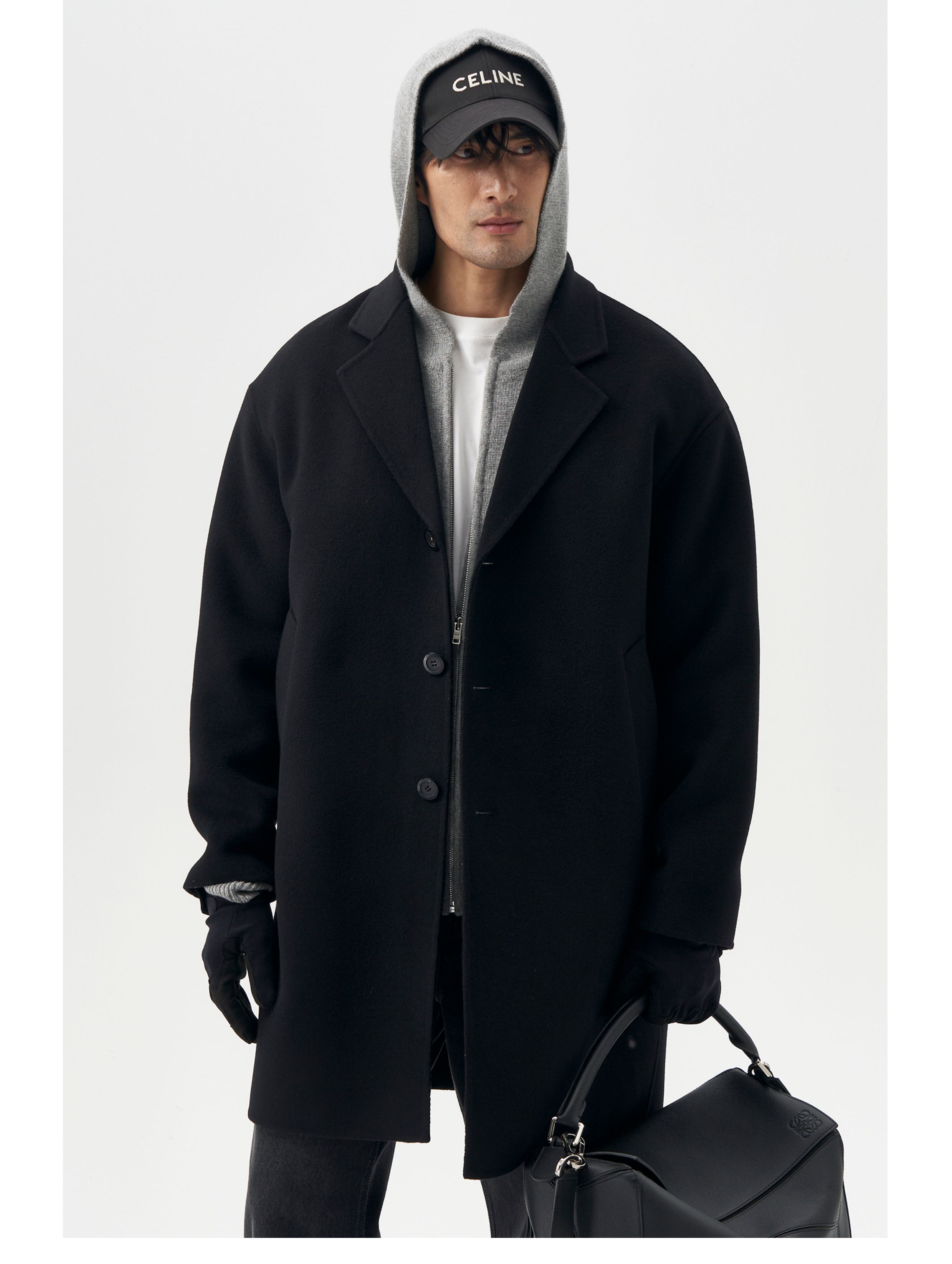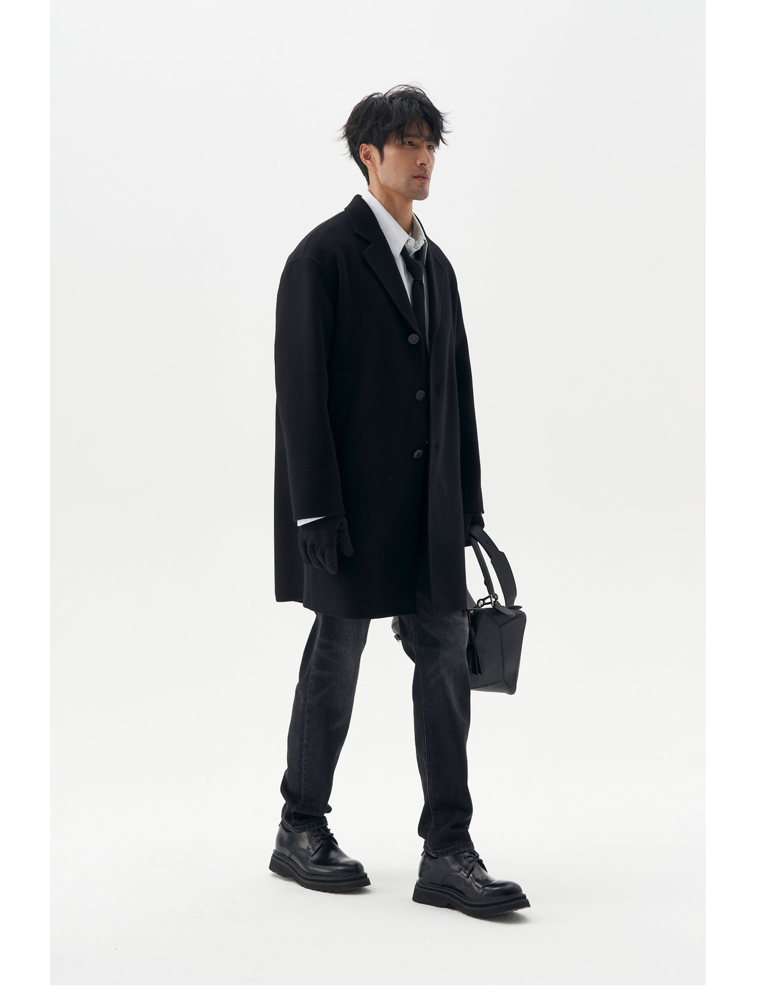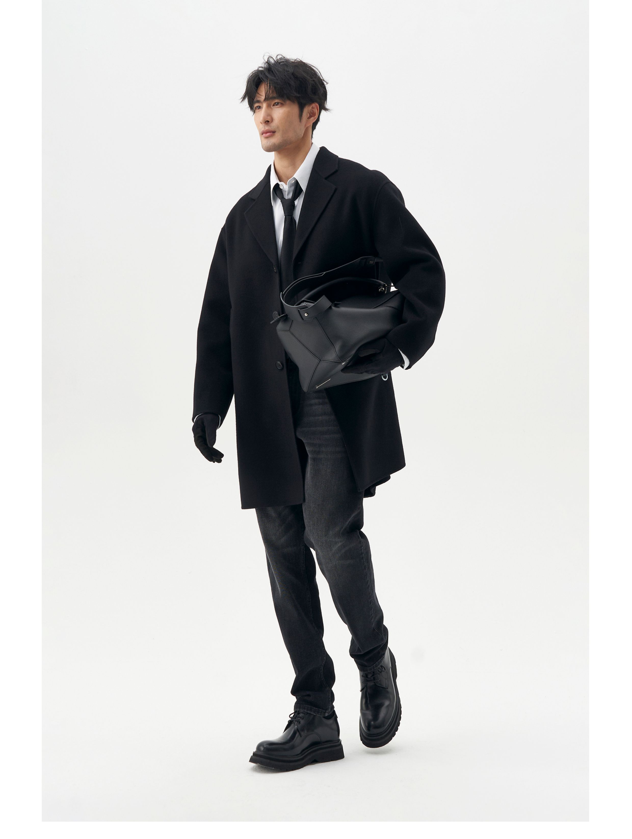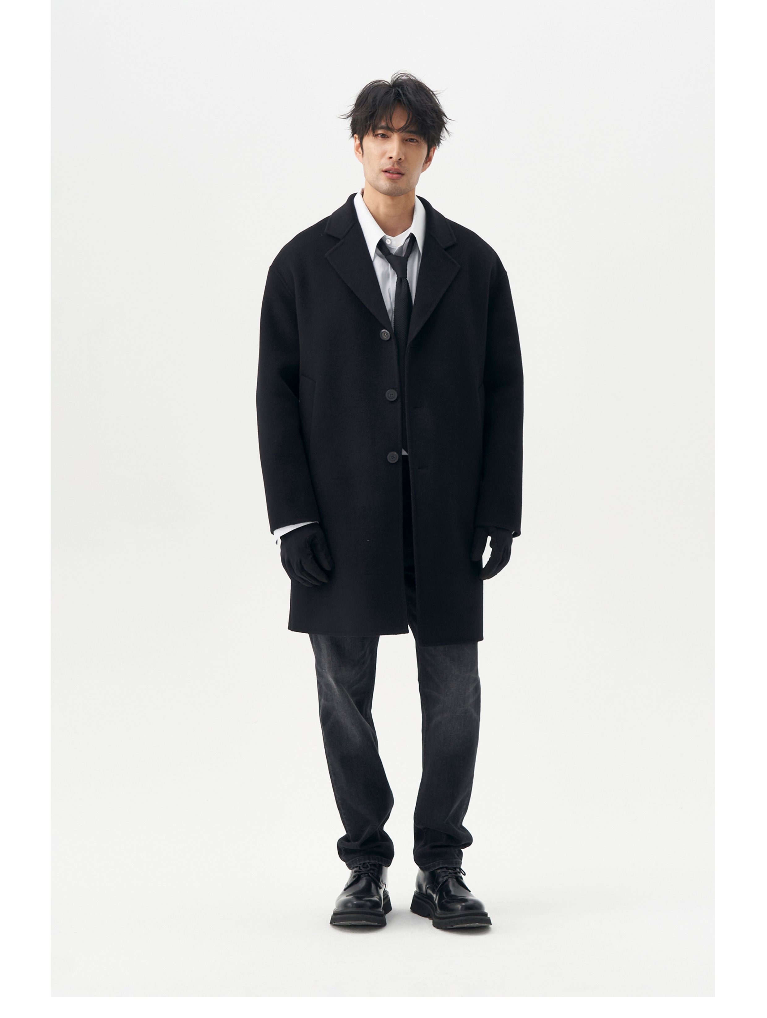Lezora Is Full of Sexual Tension! Autumn and Winter Double-Sided Cashmere Micro-Profile Mid-Length Cashmere Woolen Coat for Men