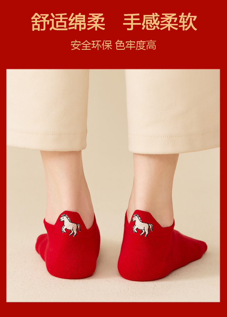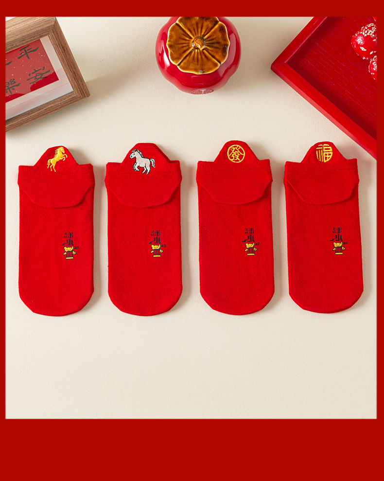 Red Socks for the Year of the Horse, Red Socks for Men and Women, Couple Thin Boat Socks, Short Socks, Cartoon Socks, Cotton Socks, Gift for Those Born in the Year of the Horse