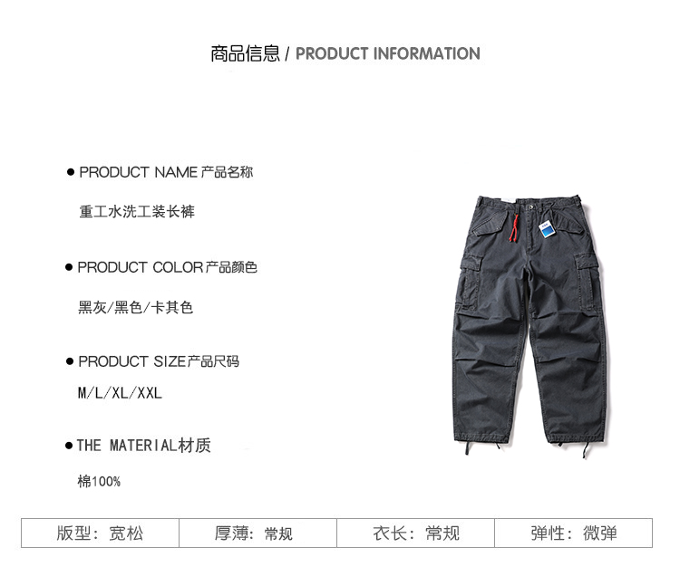 American-Style Trendy Heavy-Duty Washed Straight-Leg Cargo Pants for Men, Autumn and Winter, Large Pockets, Loose Fit, Pure Cotton, Jogger Casual Long Pants