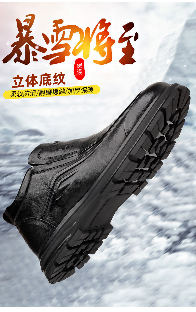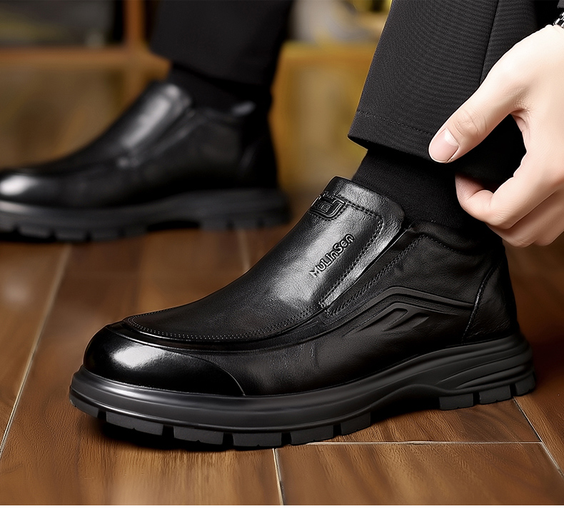 Mulinsen Men's Winter Cotton Shoes with Plush Lining, Warm Leather Shoes for Men, Thick Wool Soft Sole Slip-On Shoes, Northeastern Large Cotton Shoes