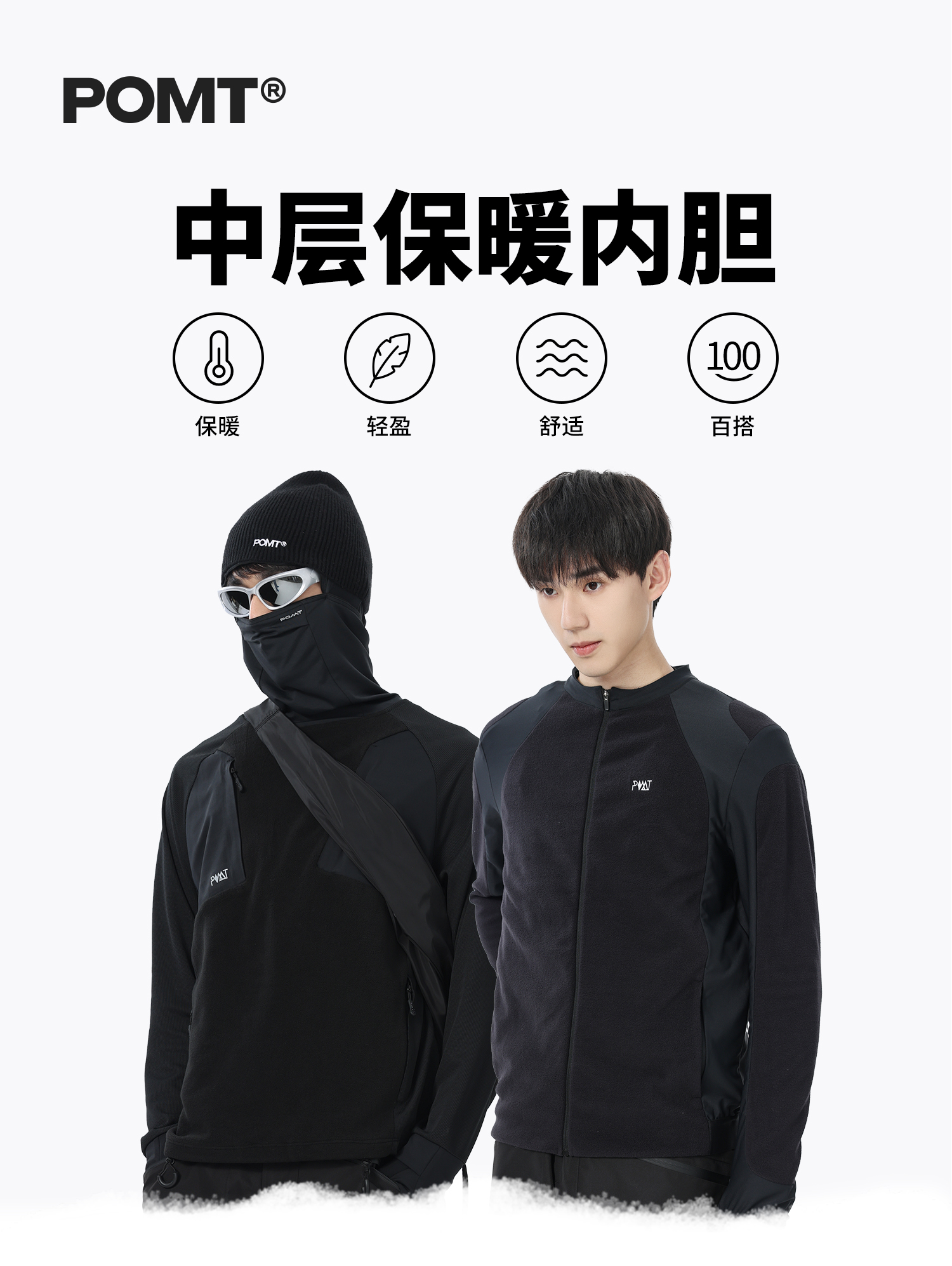 Ski Mid-Layer Pomt Fleece Warm and Cold-Resistant Inner Lining Polar Fleece Sports Elastic Unisex Style
