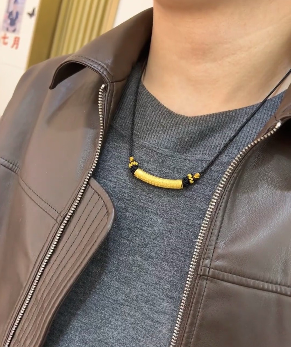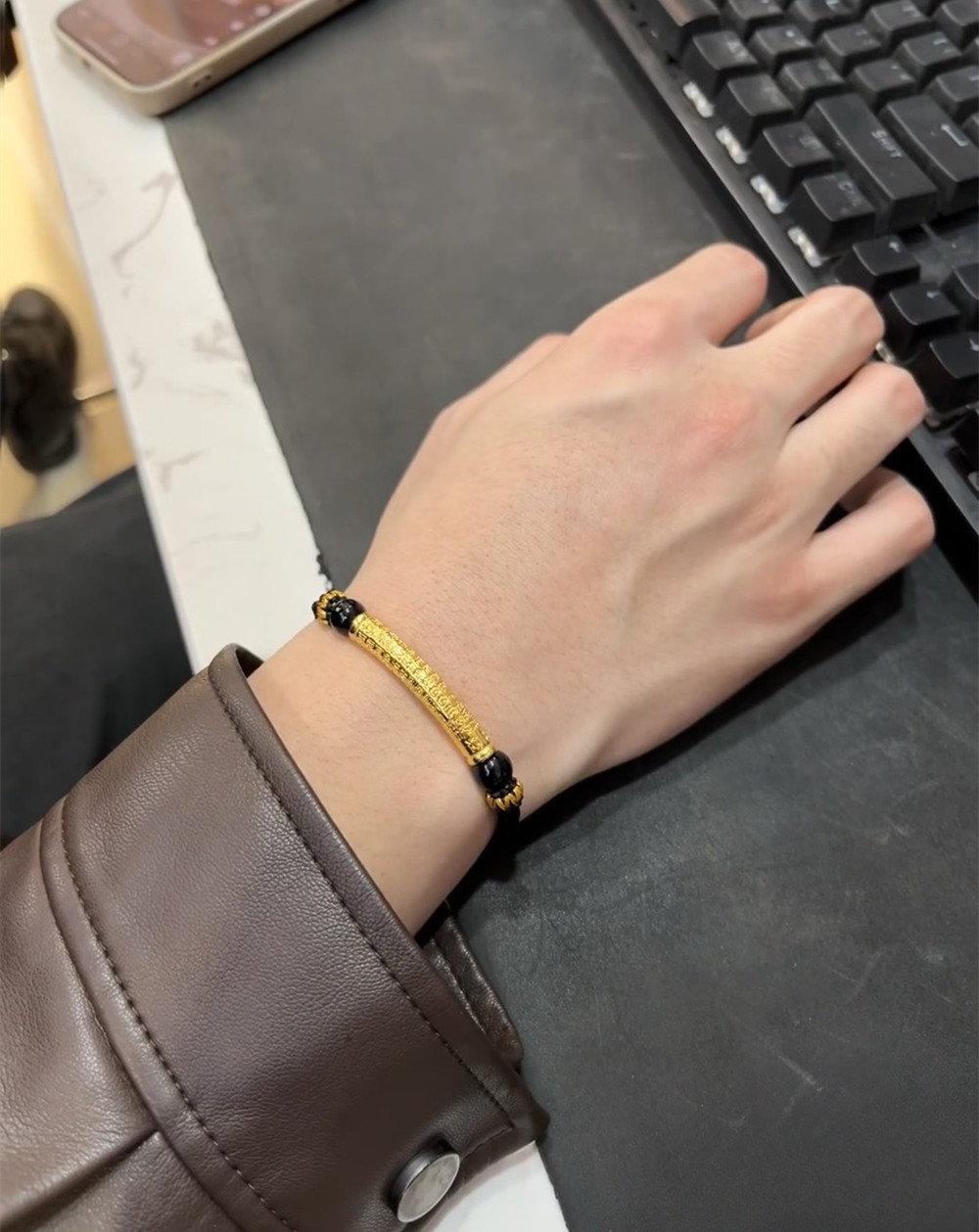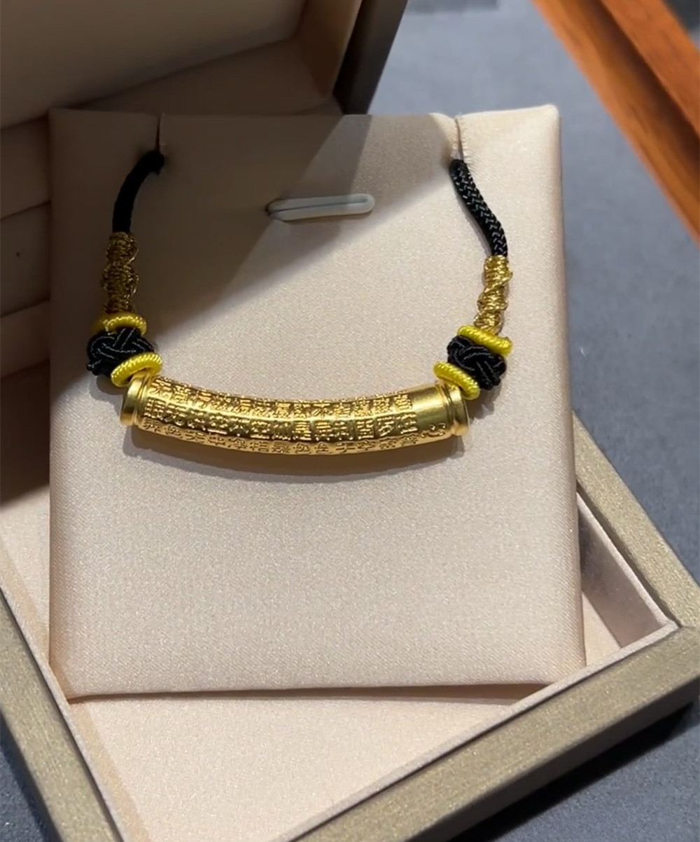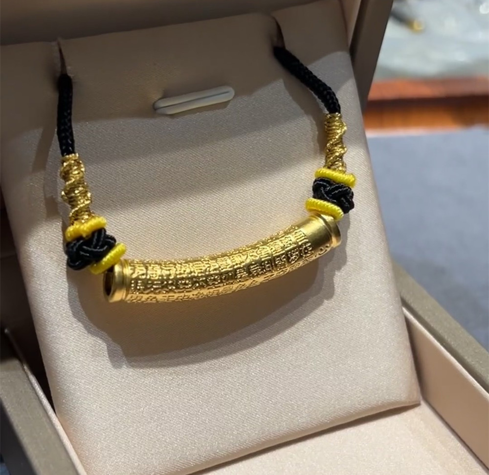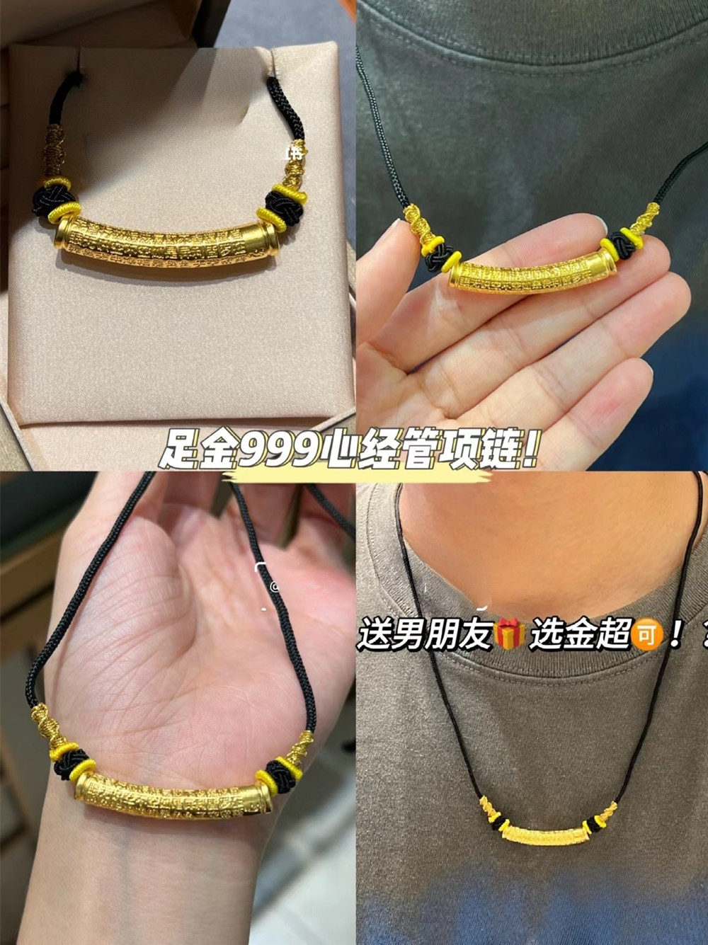 [Chinese Gold Bank] Pure Gold 999 Heart Sutra Curved Tube Braided Rope Necklace Gold Couple Men's Bracelet Birthday Gift
