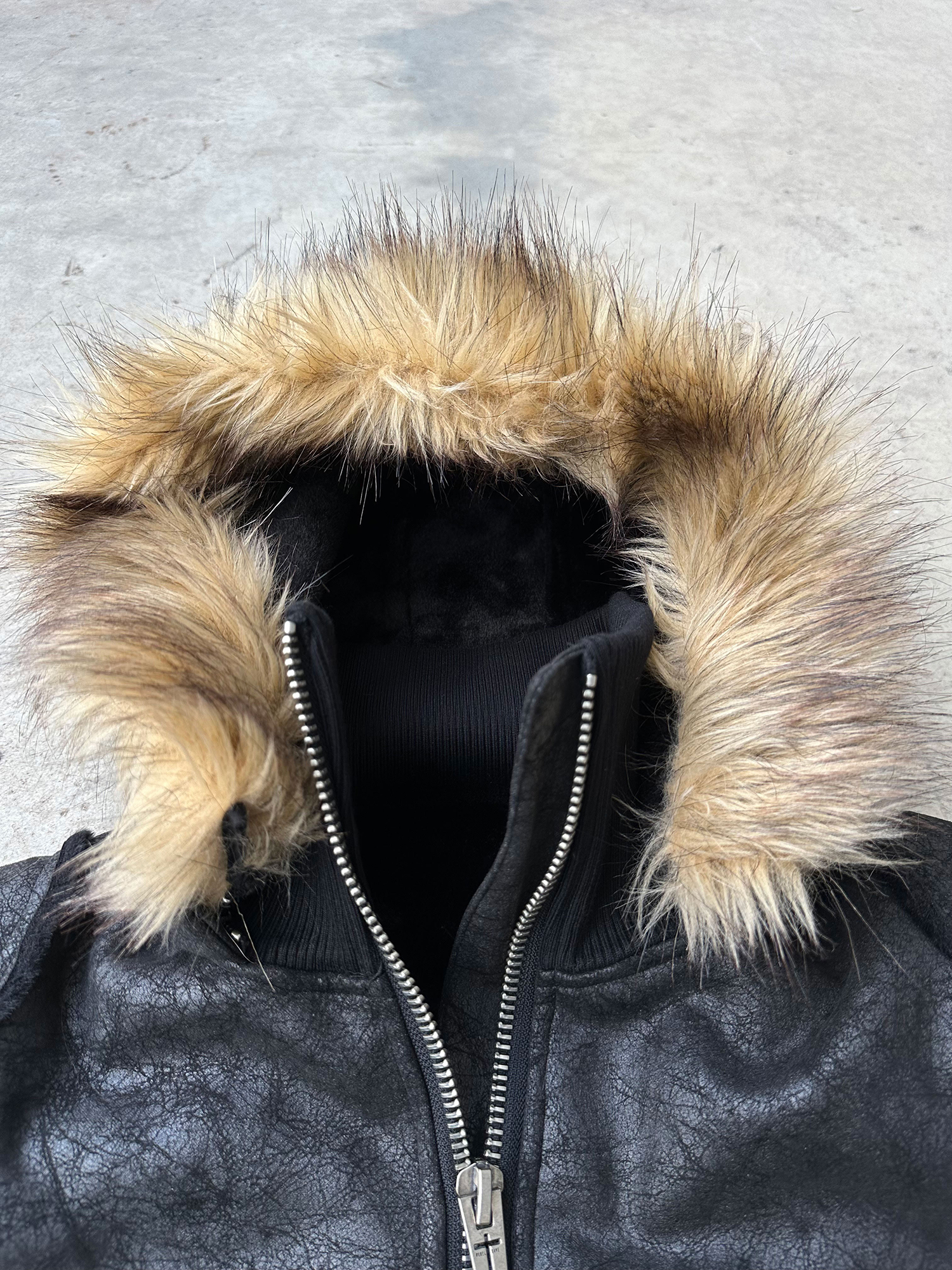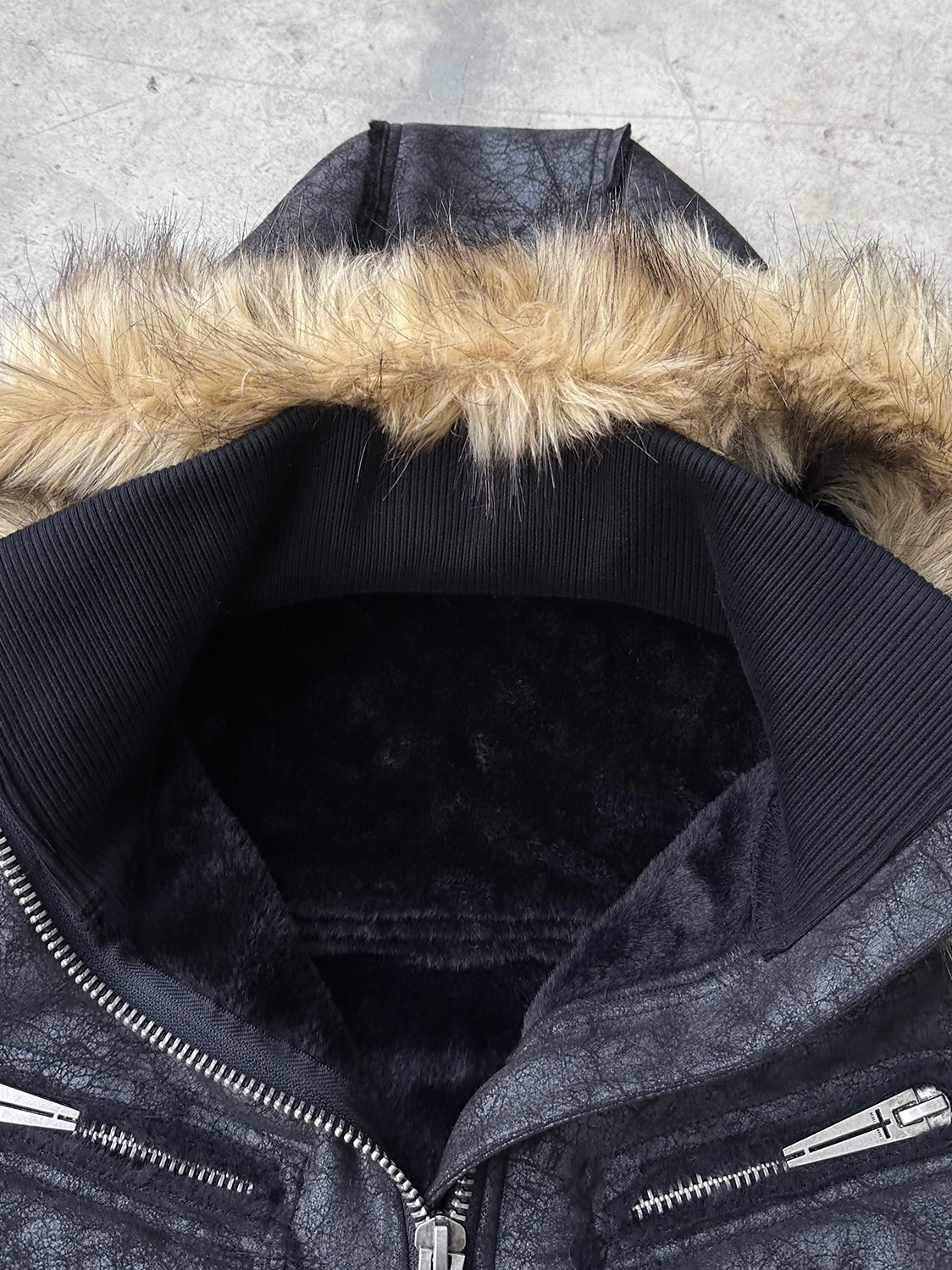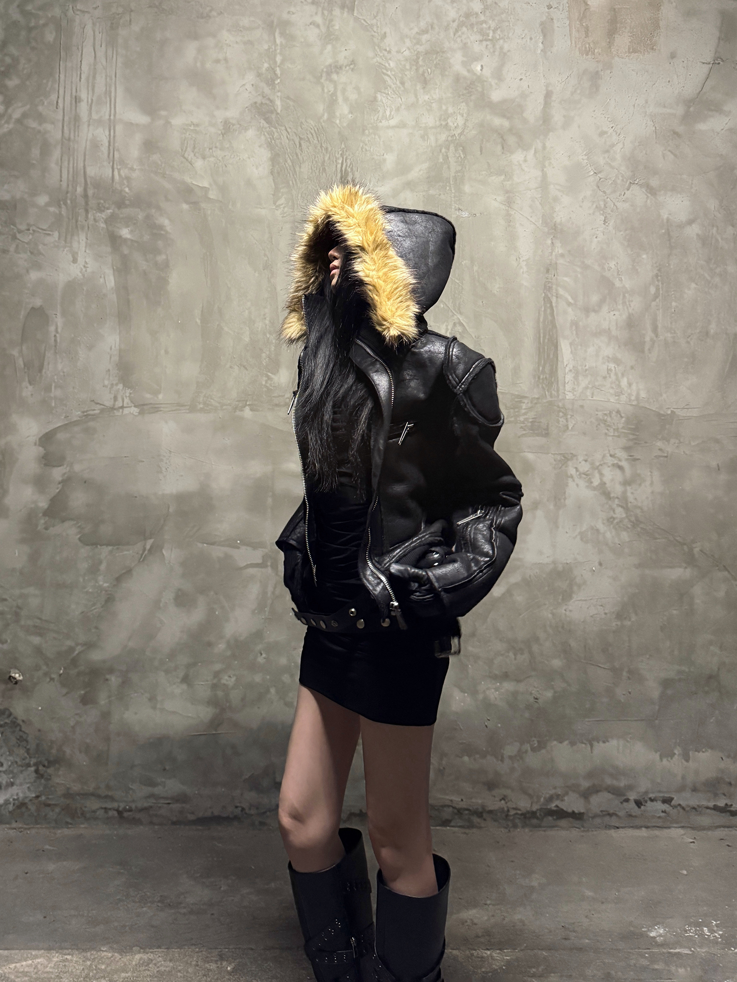 Rebel Wave24Fw “Wør” Burst-Pattern Leather Jacket with Multiple Zippers and Detachable Fur Collar