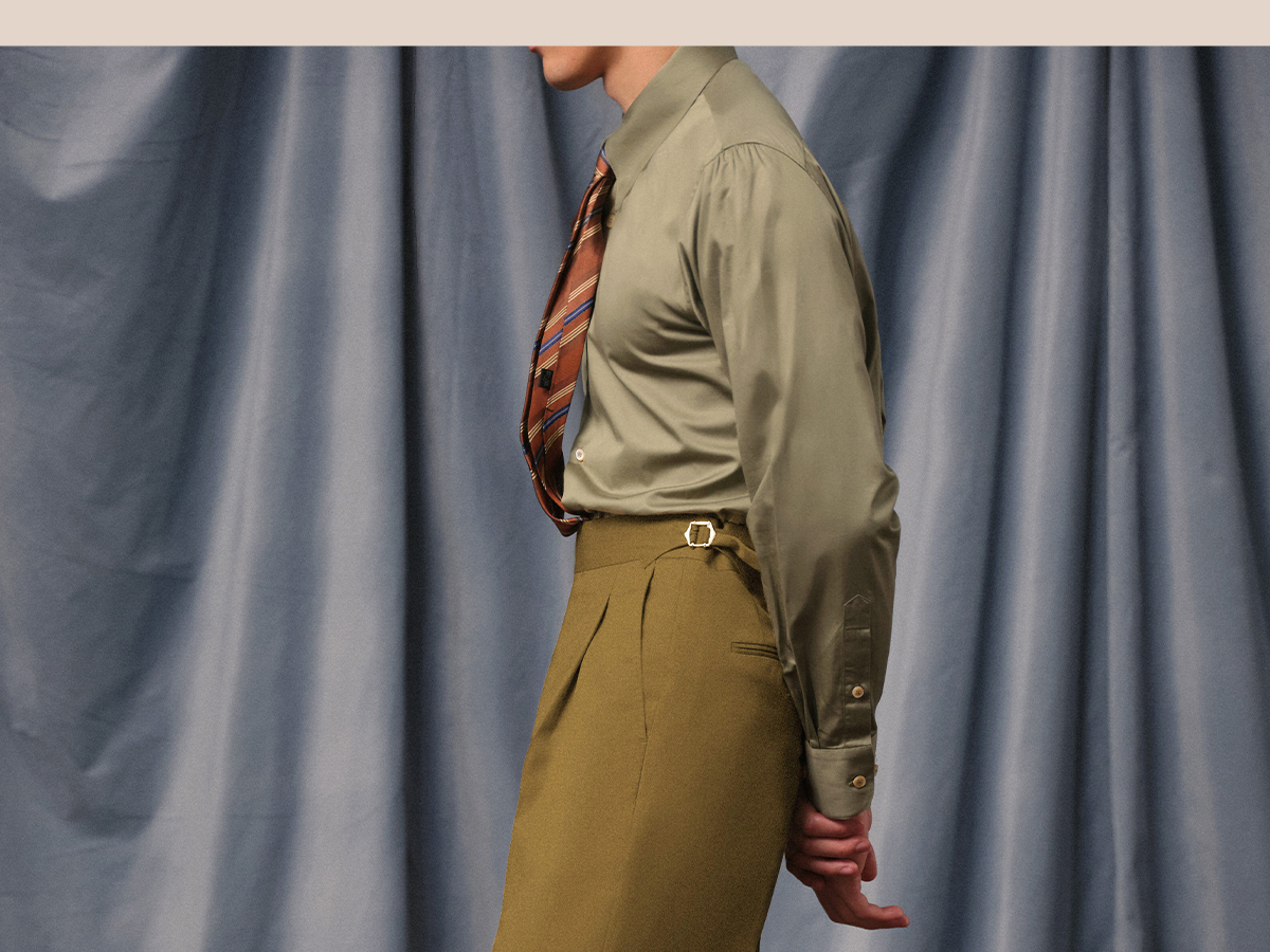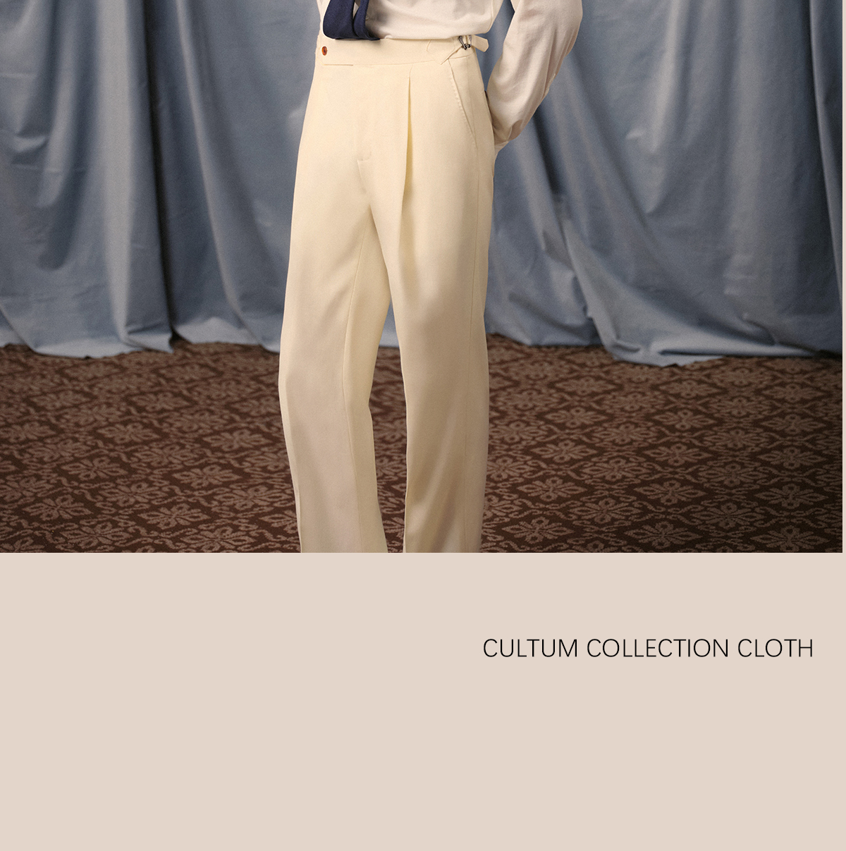 Acme Cultum Wool Cavalry Twill High-Waisted Single-Pleat Straight-Leg Dress Pants for Men, High-End White Formal Trousers