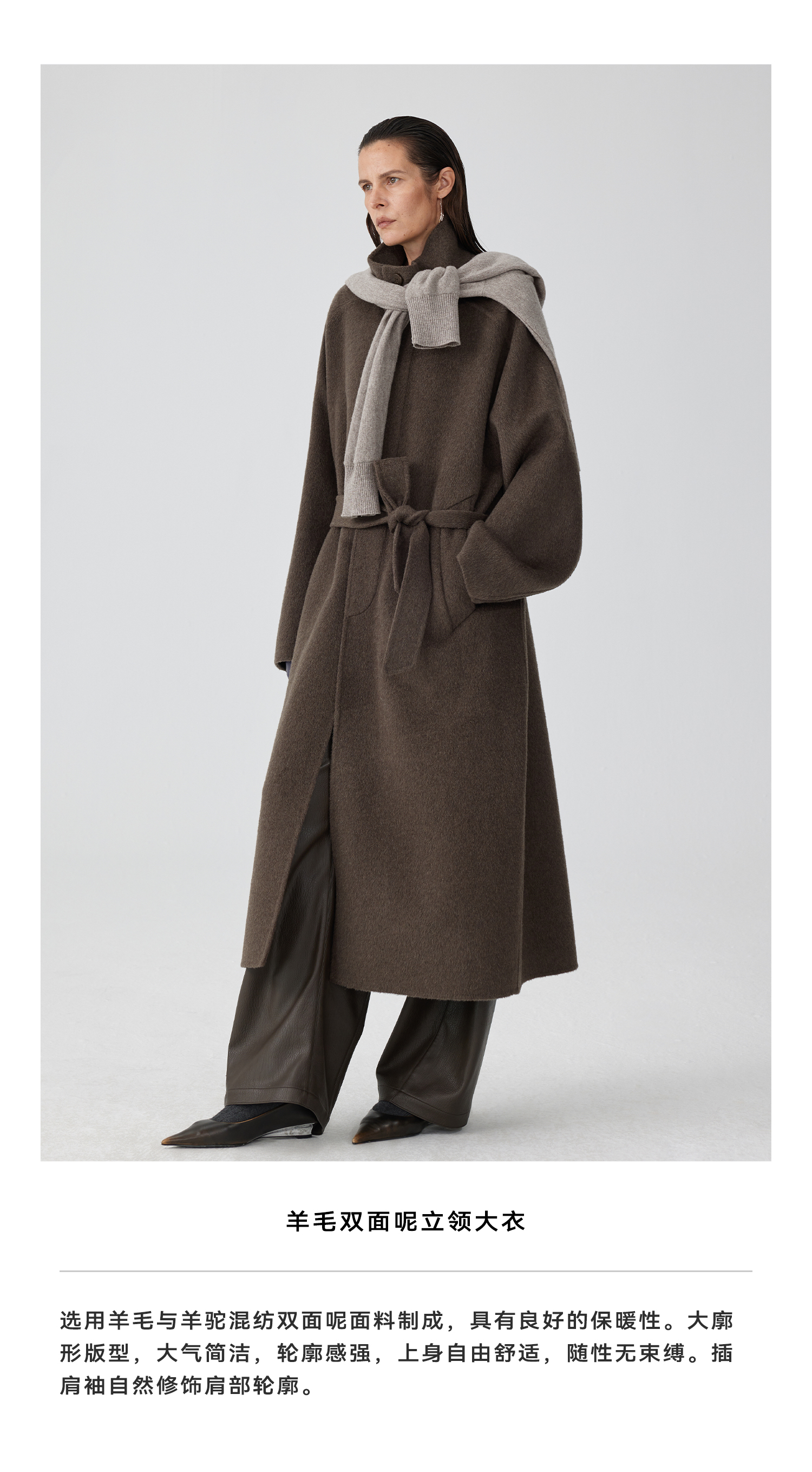 Simple Project*High-Neck Wool Coat Wool Double-Faced Woolen Coat with Stand Collar