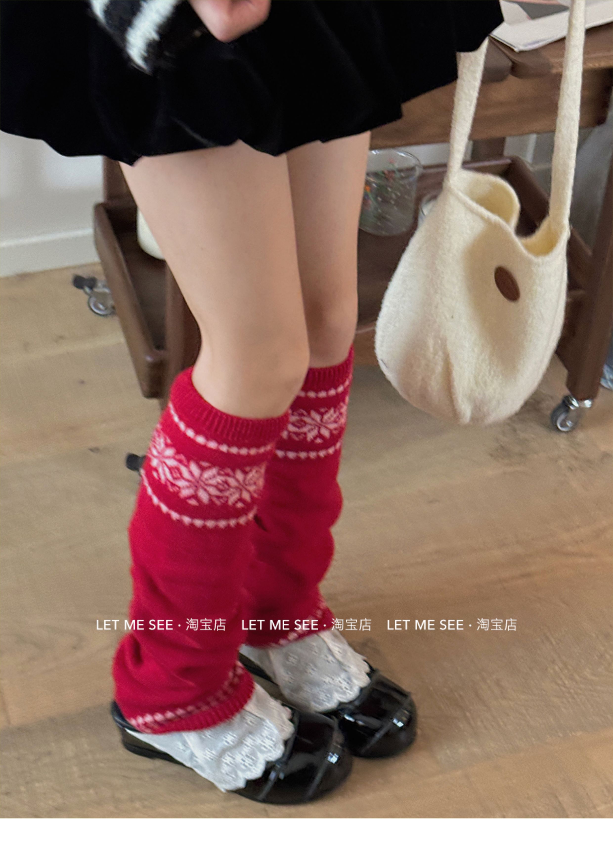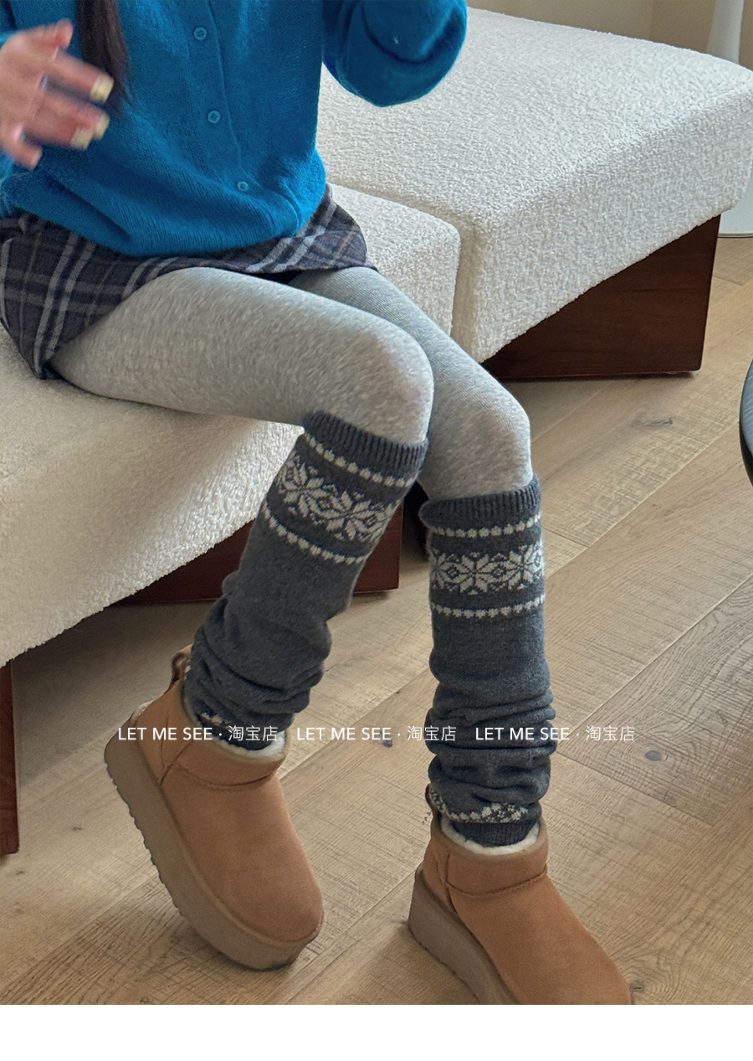 Let Me See Autumn and Winter Korean Style Snowflake Nordic Knit ins Warm Leg Warmers Slouch Socks