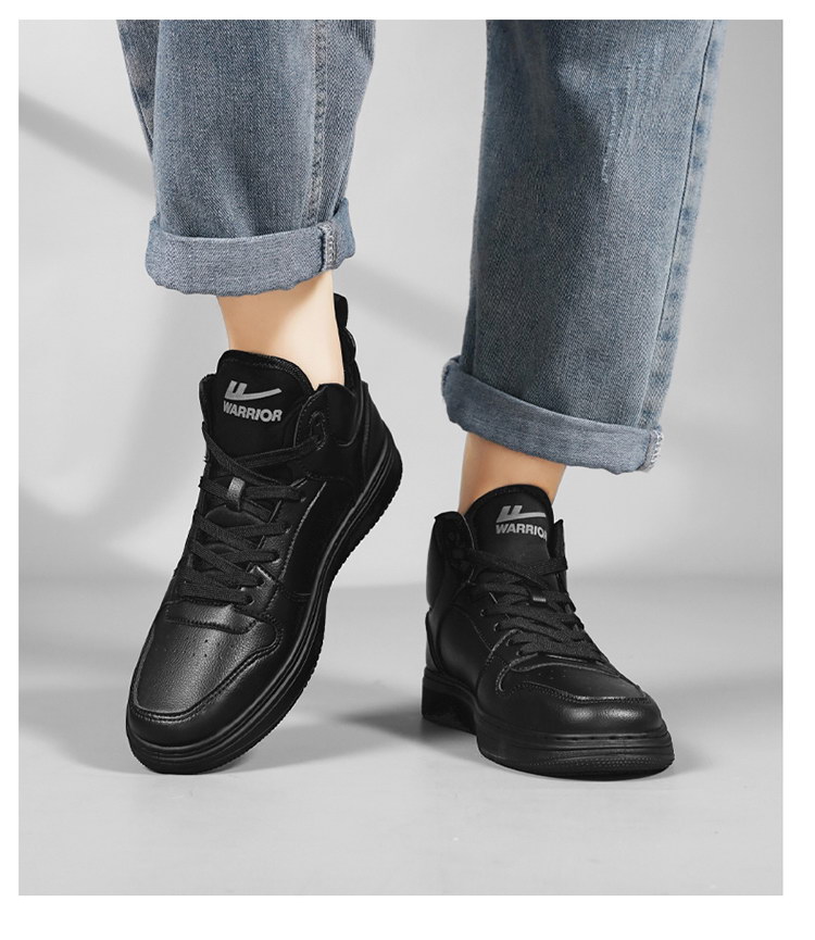 Pull-Back Men's Shoes, Black Sports Sneakers, Fleece-Lined Cotton Shoes, Pure Black Kitchen Leather Shoes, Non-Slip, Waterproof, Work Shoes