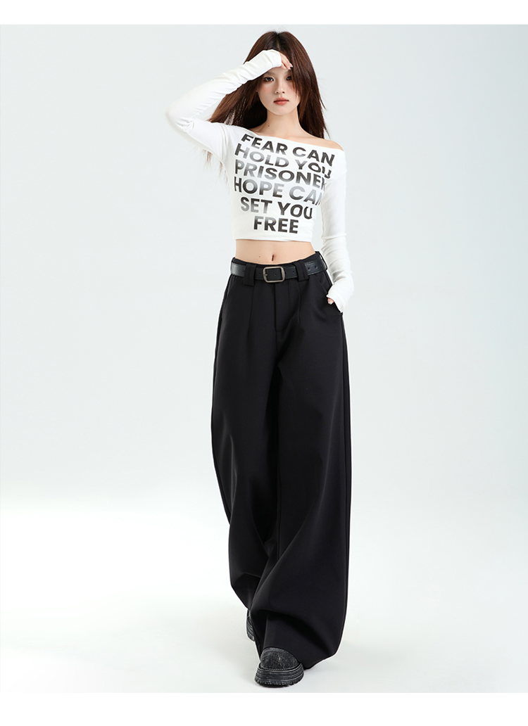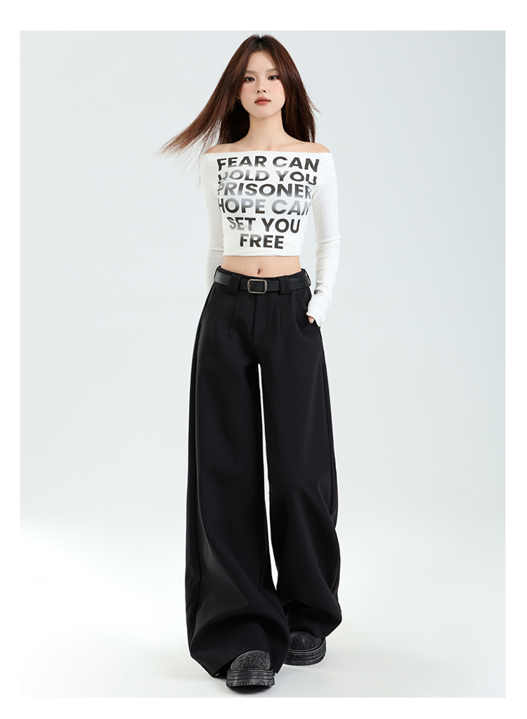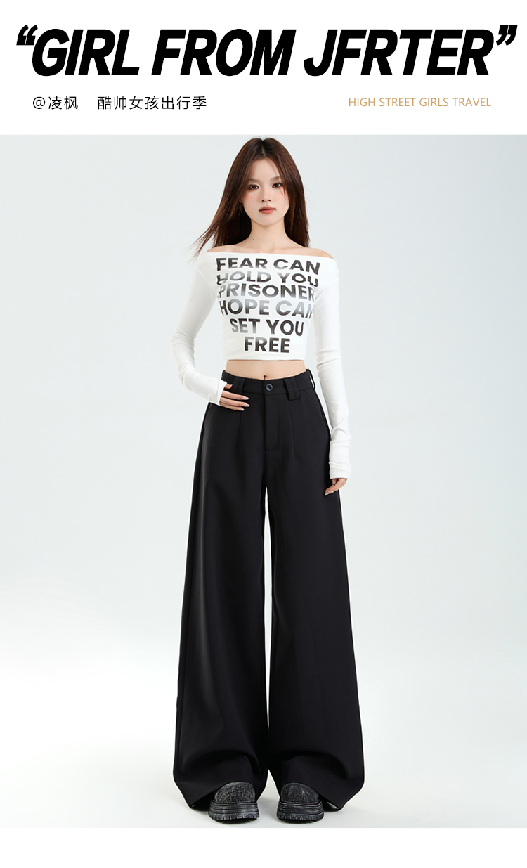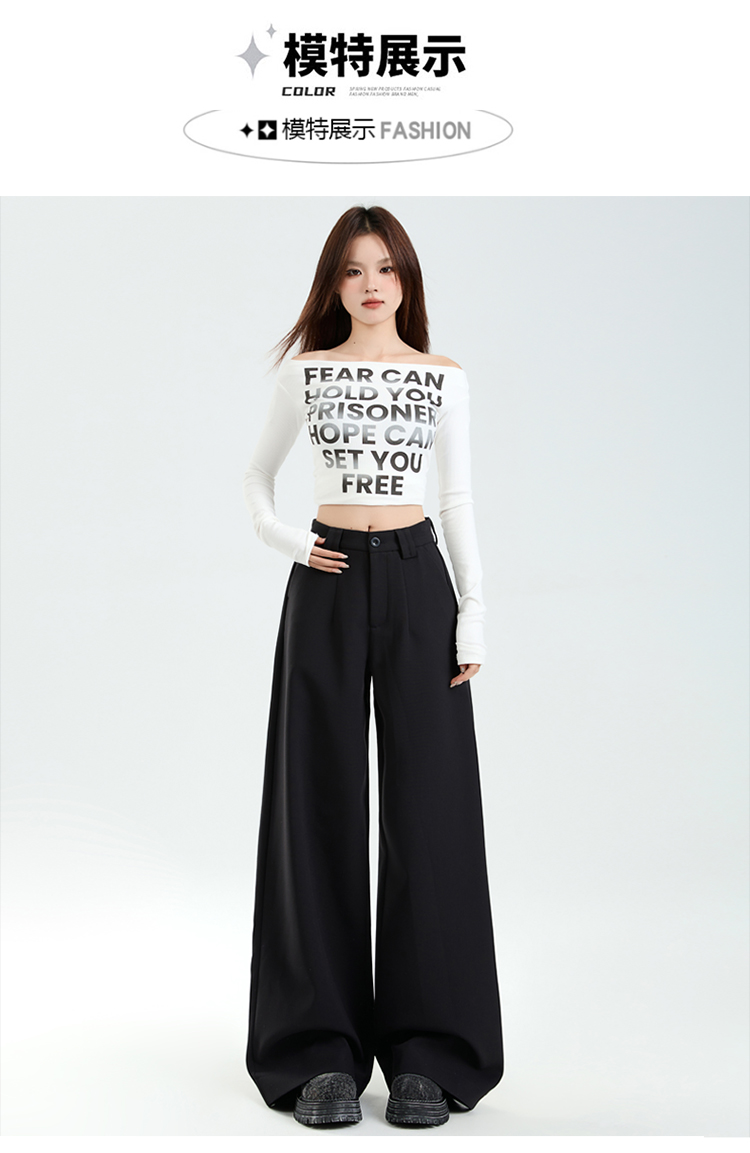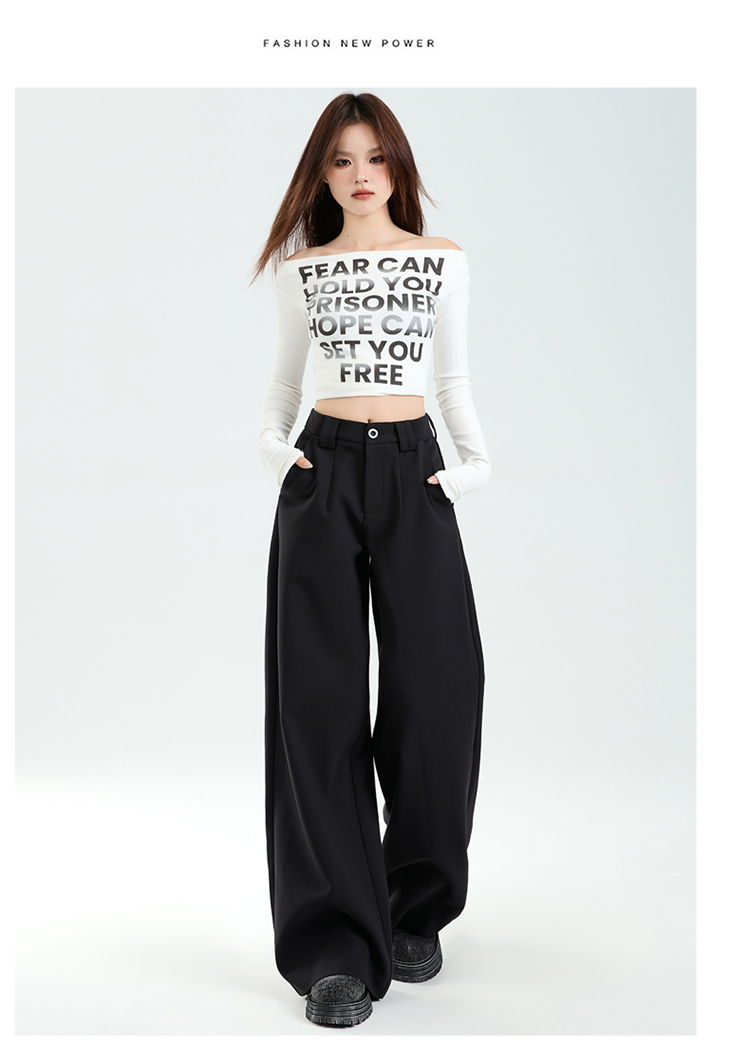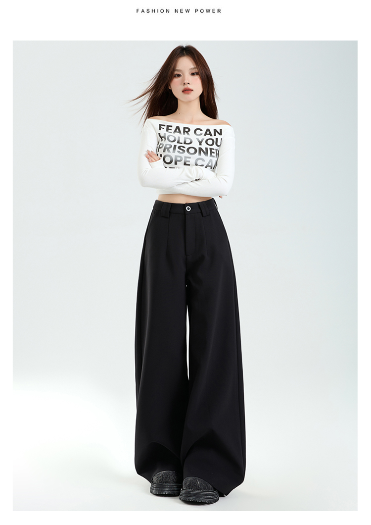 Black High-Waisted Suit Wide-Leg Pants for Women 2025 Autumn and Winter Fleece-Lined Loose Slimming High-End Drape Straight-Leg Casual Pants