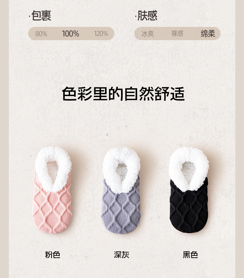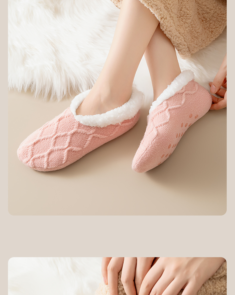 Thick Socks for Women in Autumn and Winter, Thickened and Fleece-Lined, Adult Indoor Non-Slip Coral Fleece Shoe and Sock Covers, Home Sleeping Floor Socks