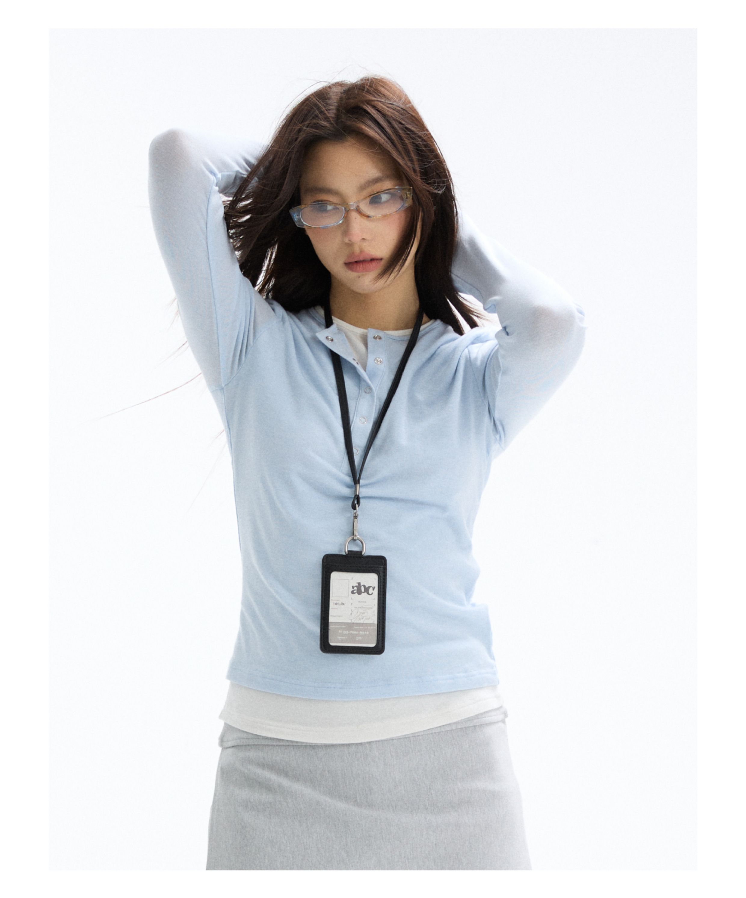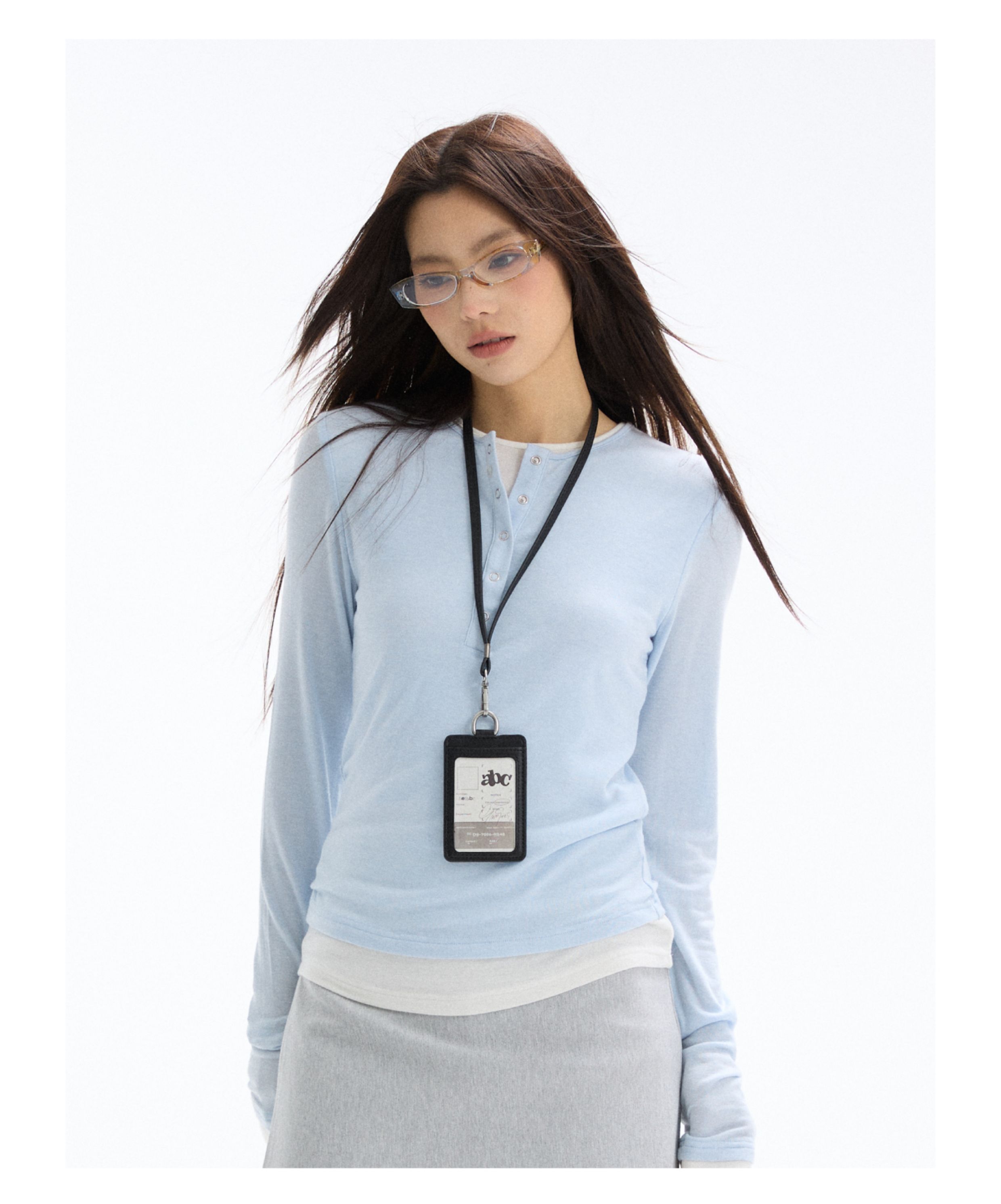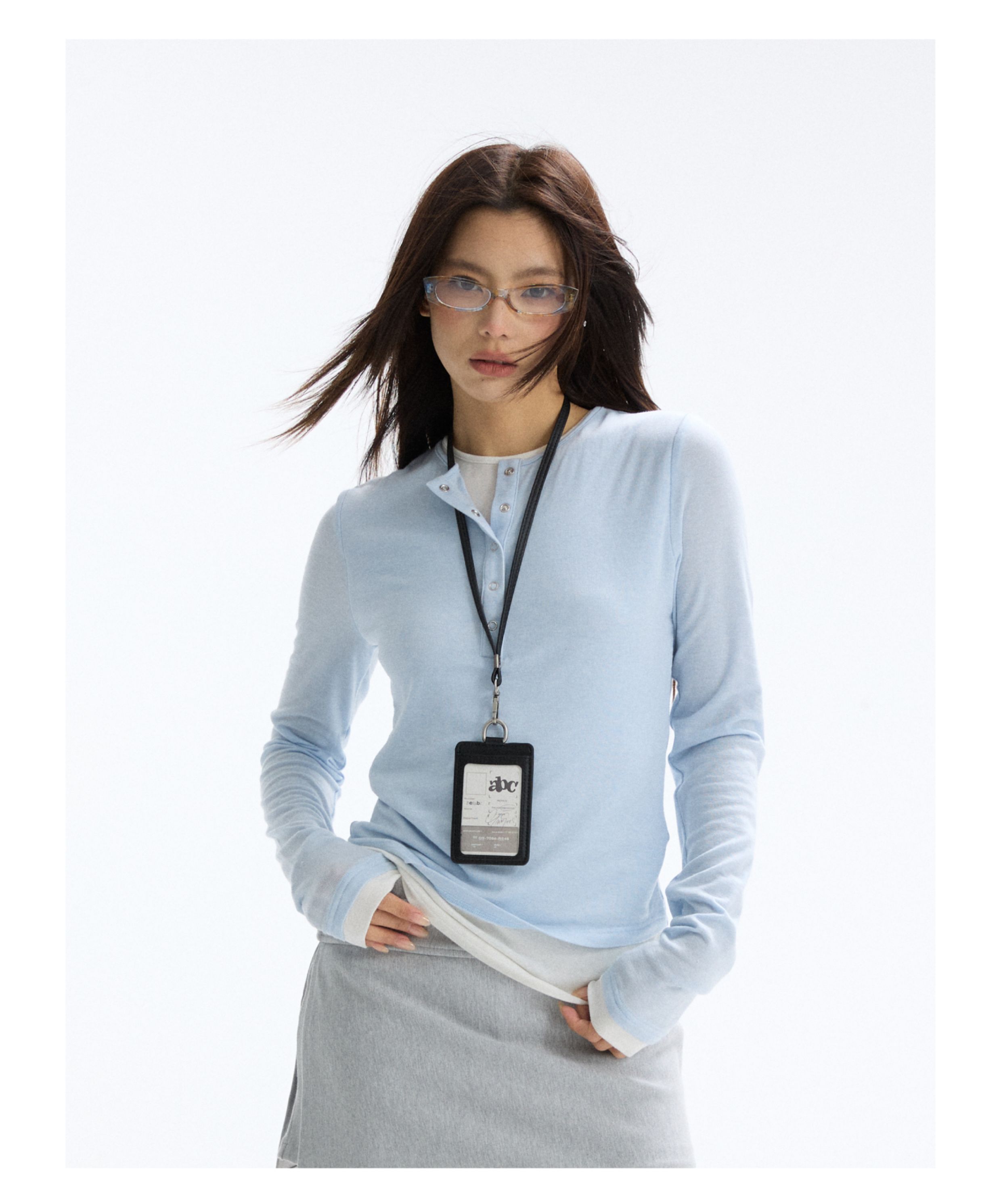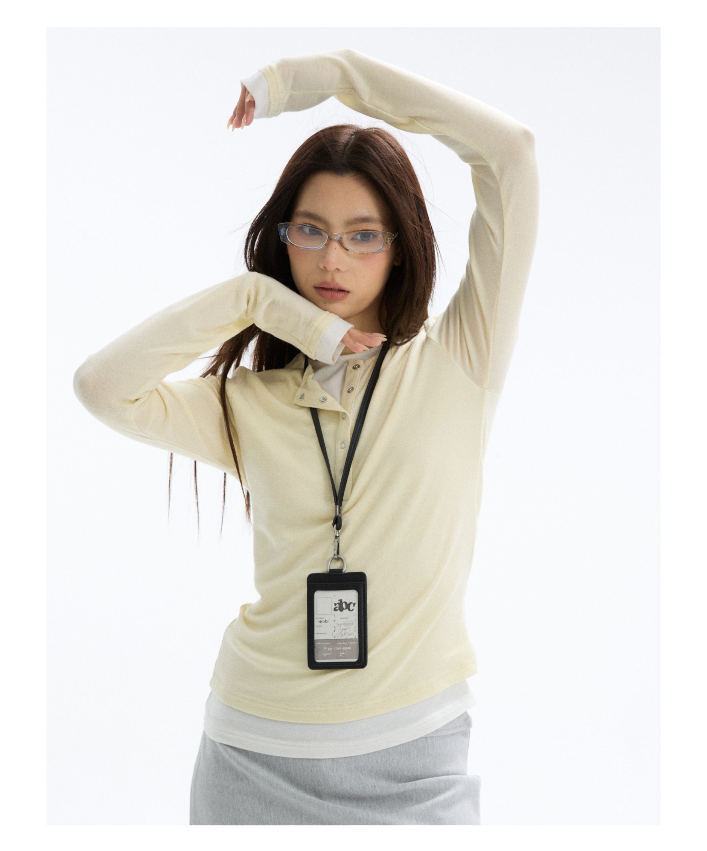 Heyabc Henry Collar Tencel Wool Base Layer Soft Faux Two-Piece Button-Up Top Women's Slim-Fit Long-Sleeve T-Shirt
