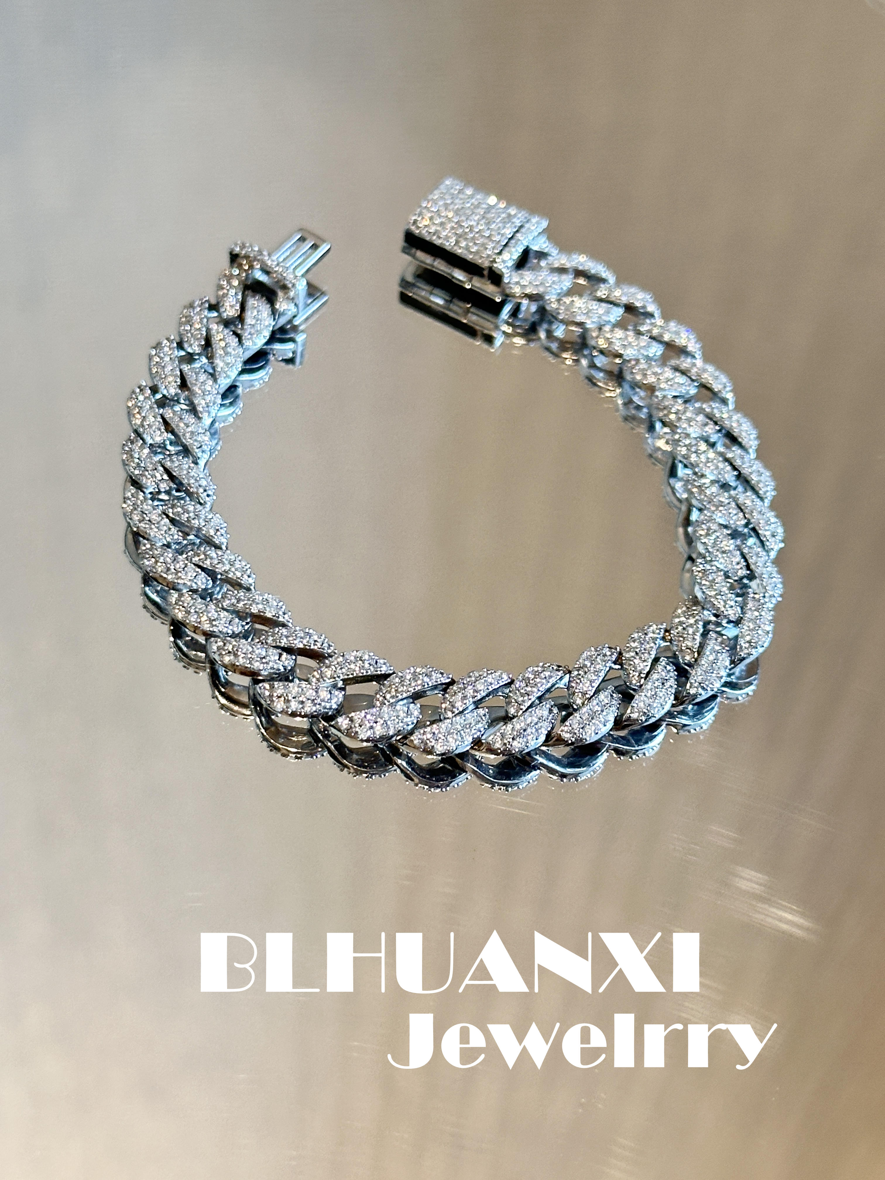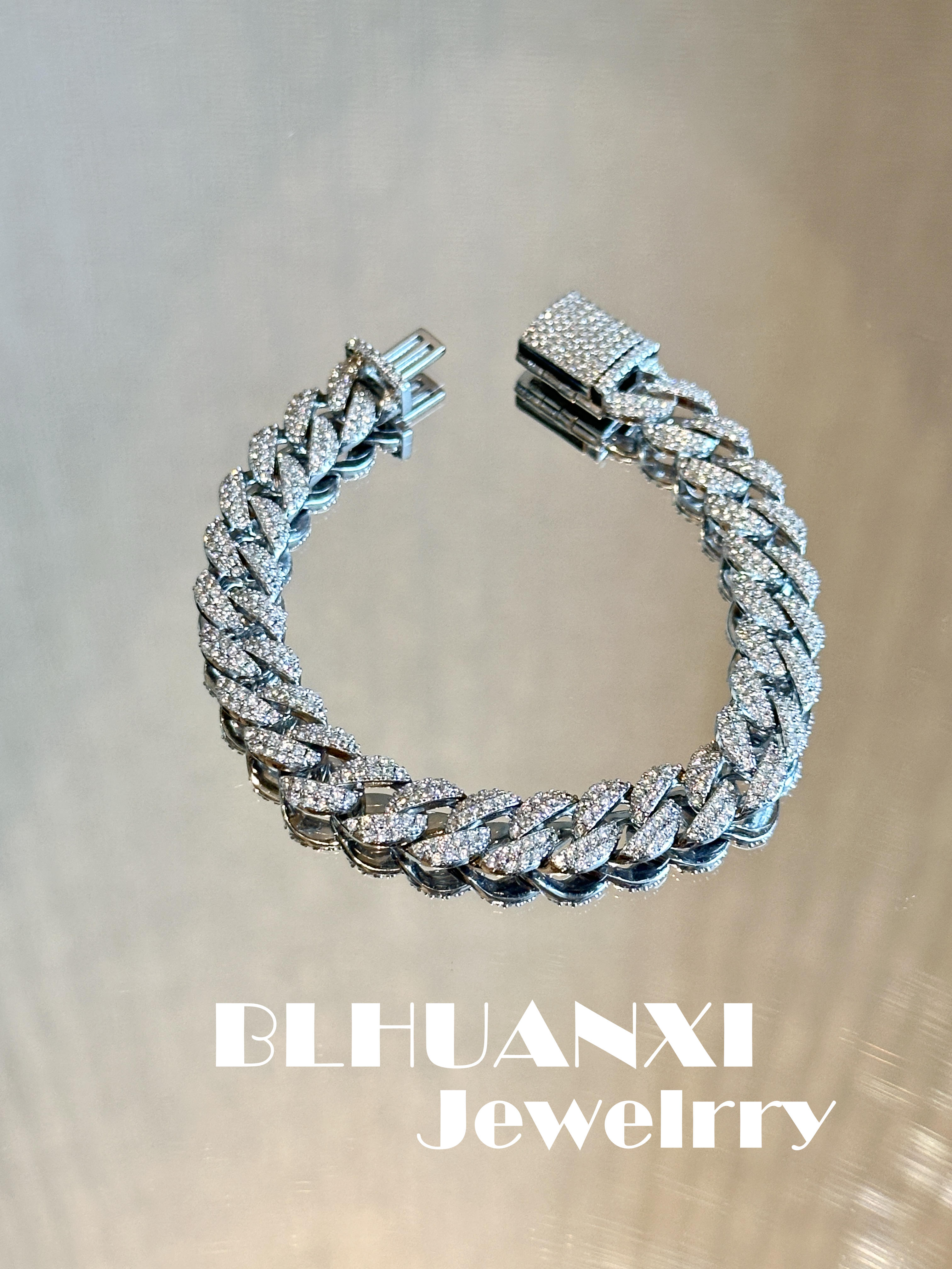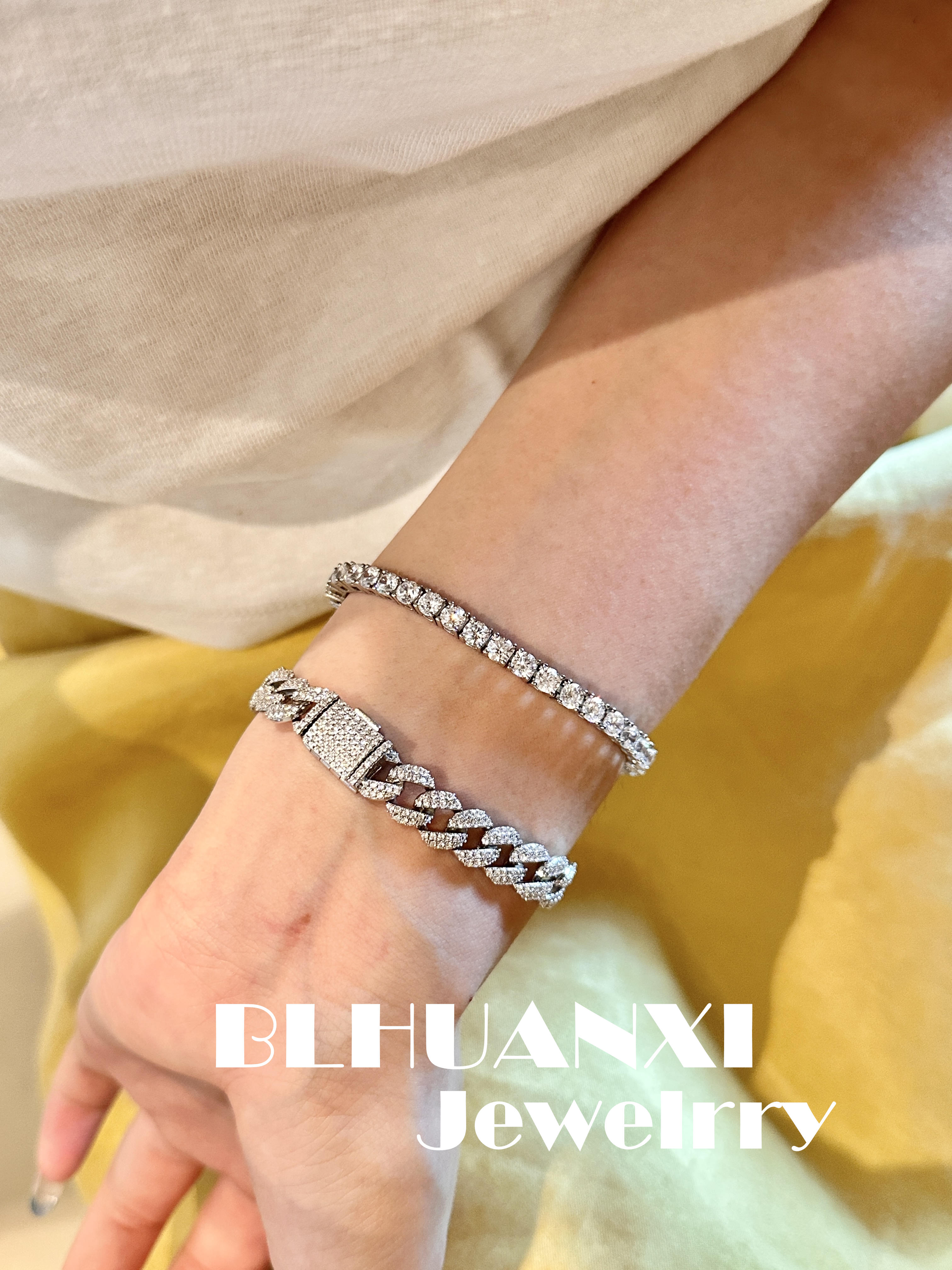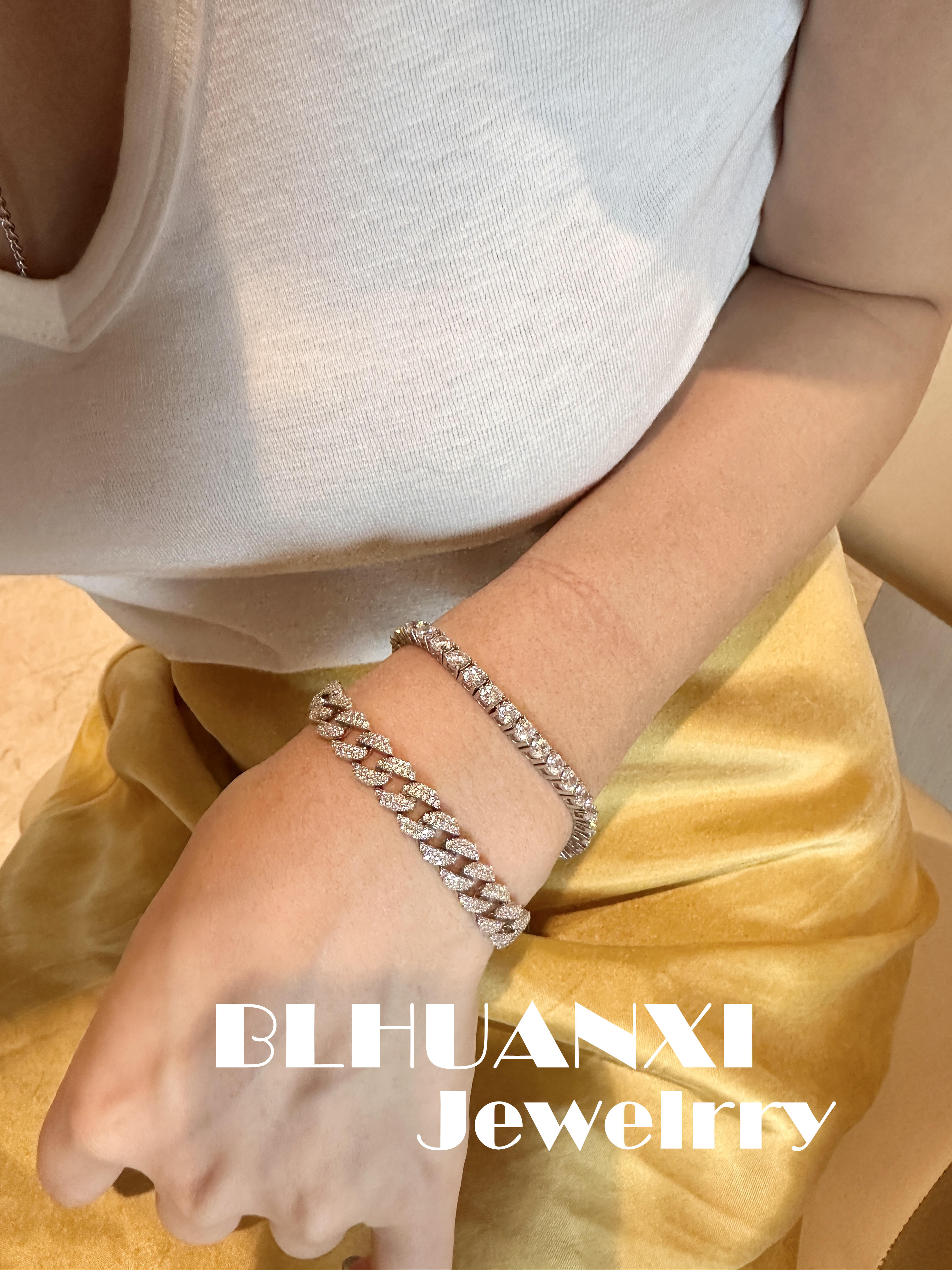 [Discover Joy] 925 Silver Gold-Plated Classic Cuban Full Diamond Fashionable Bracelet