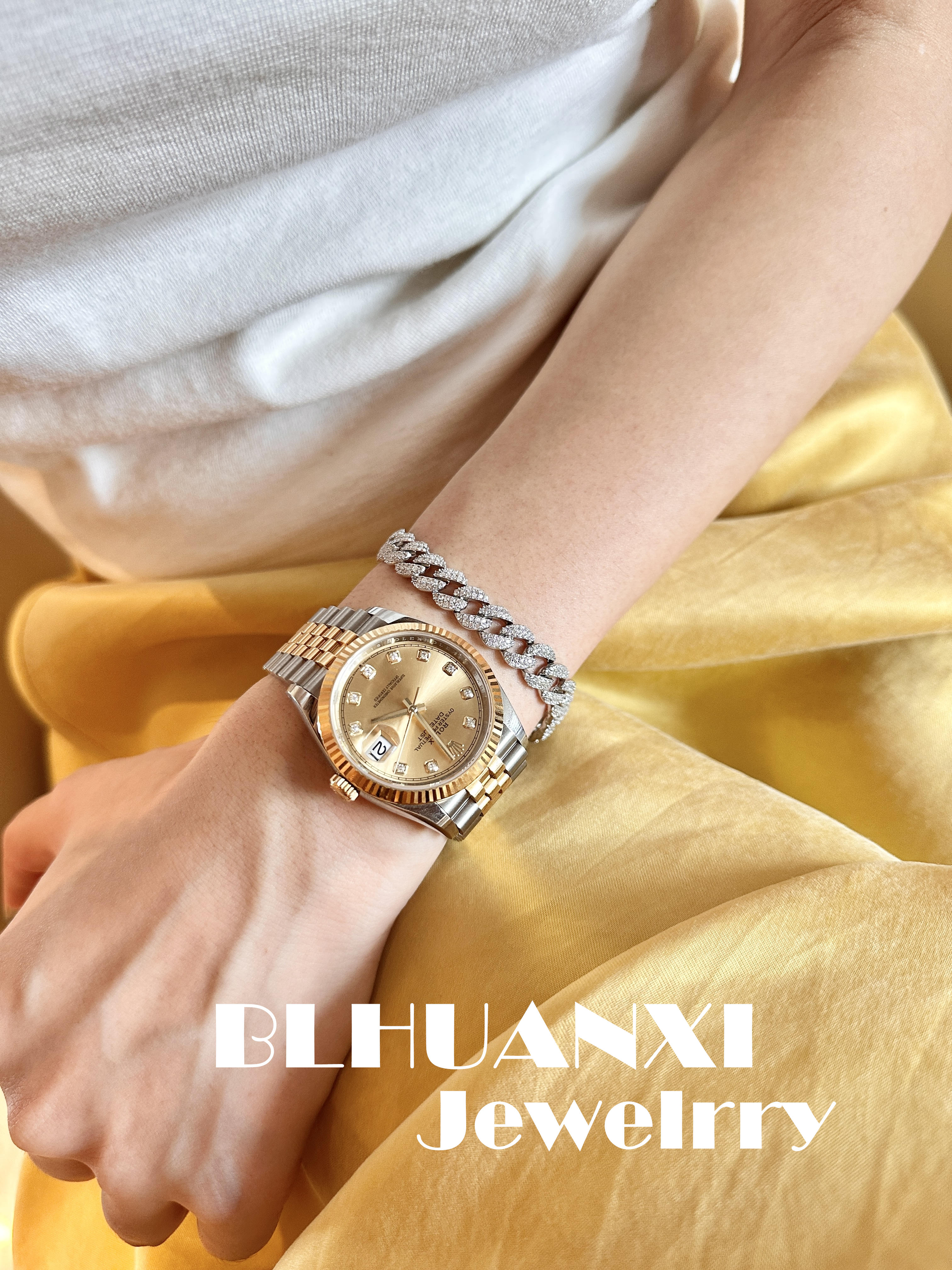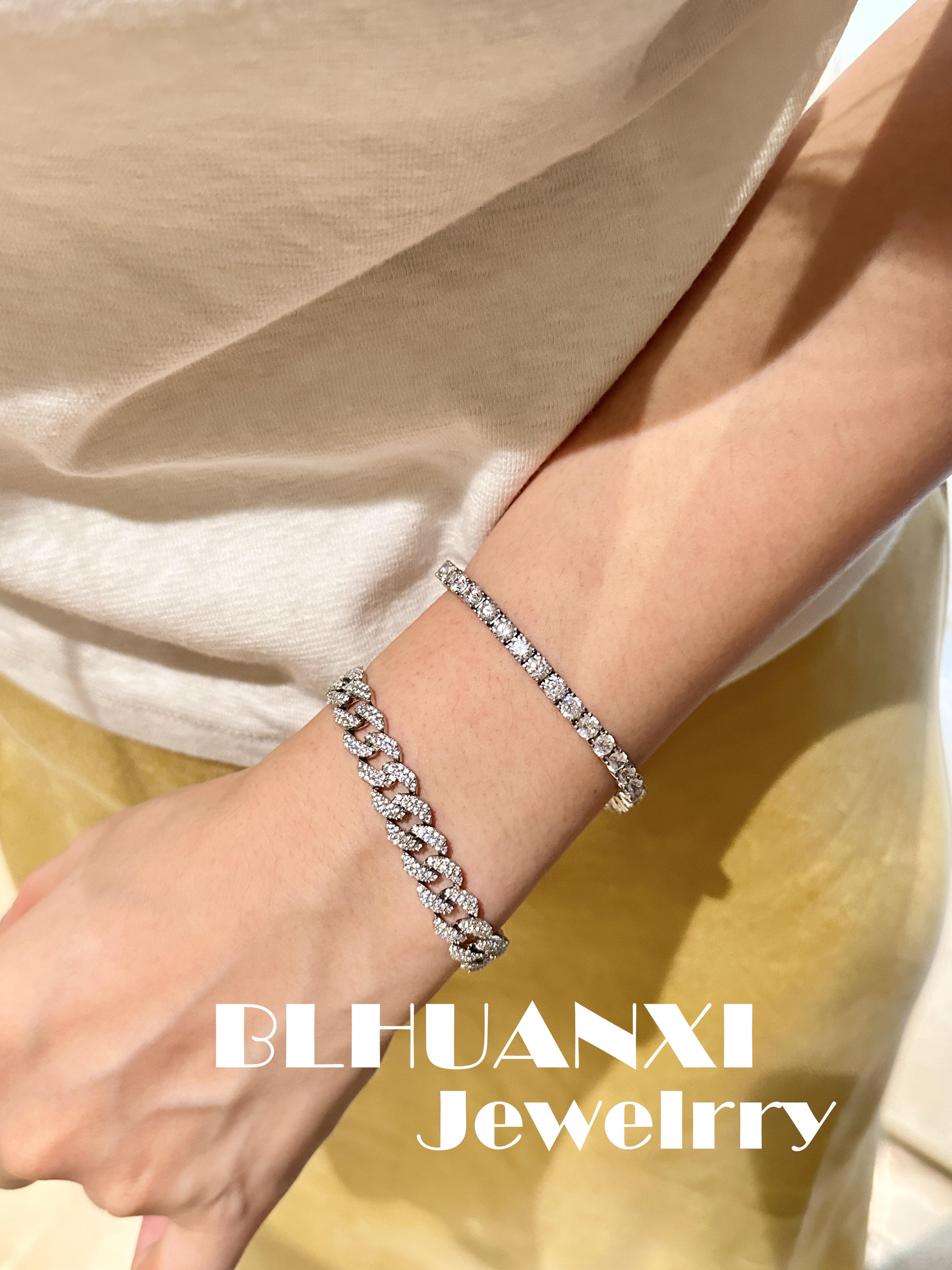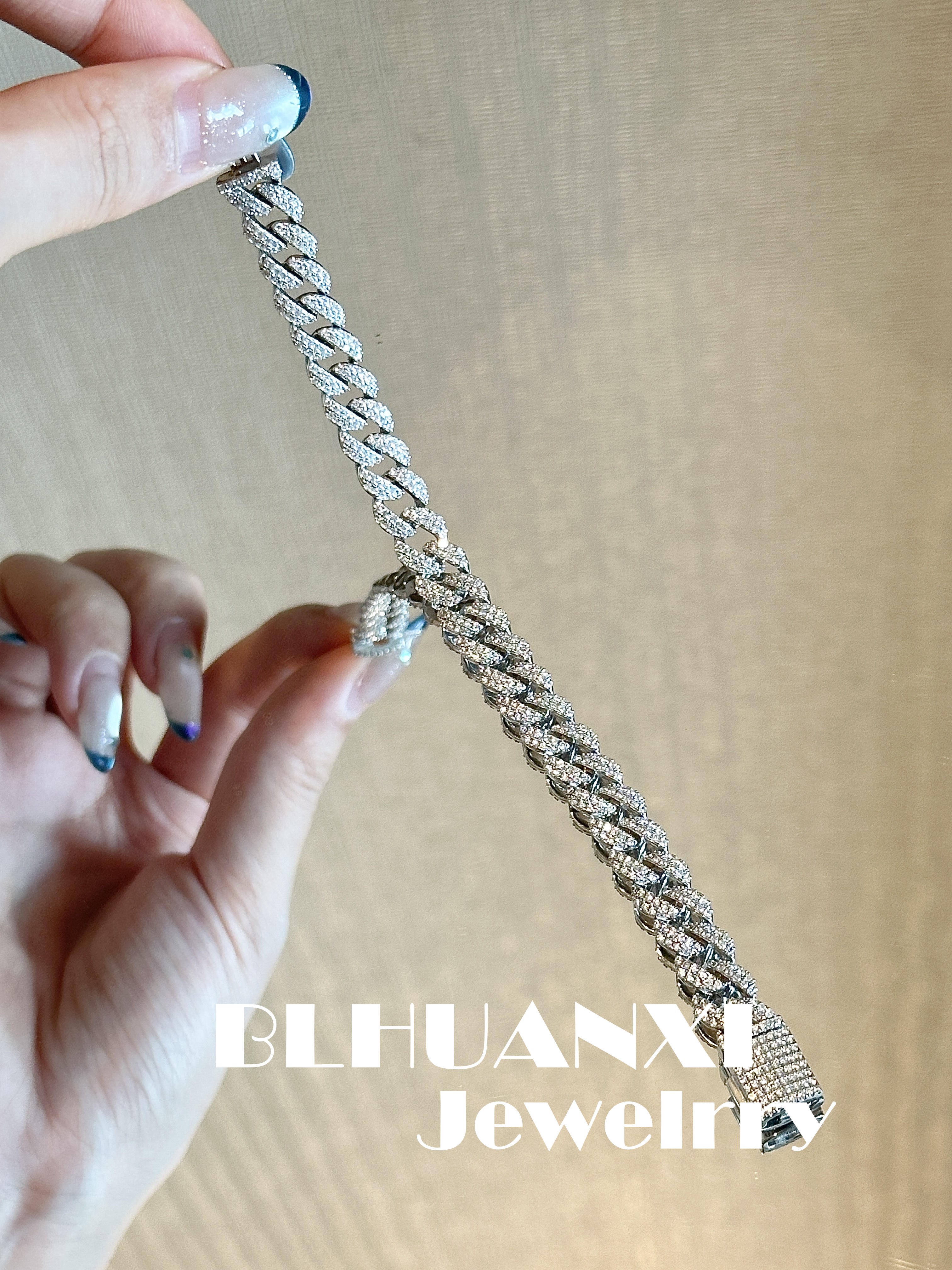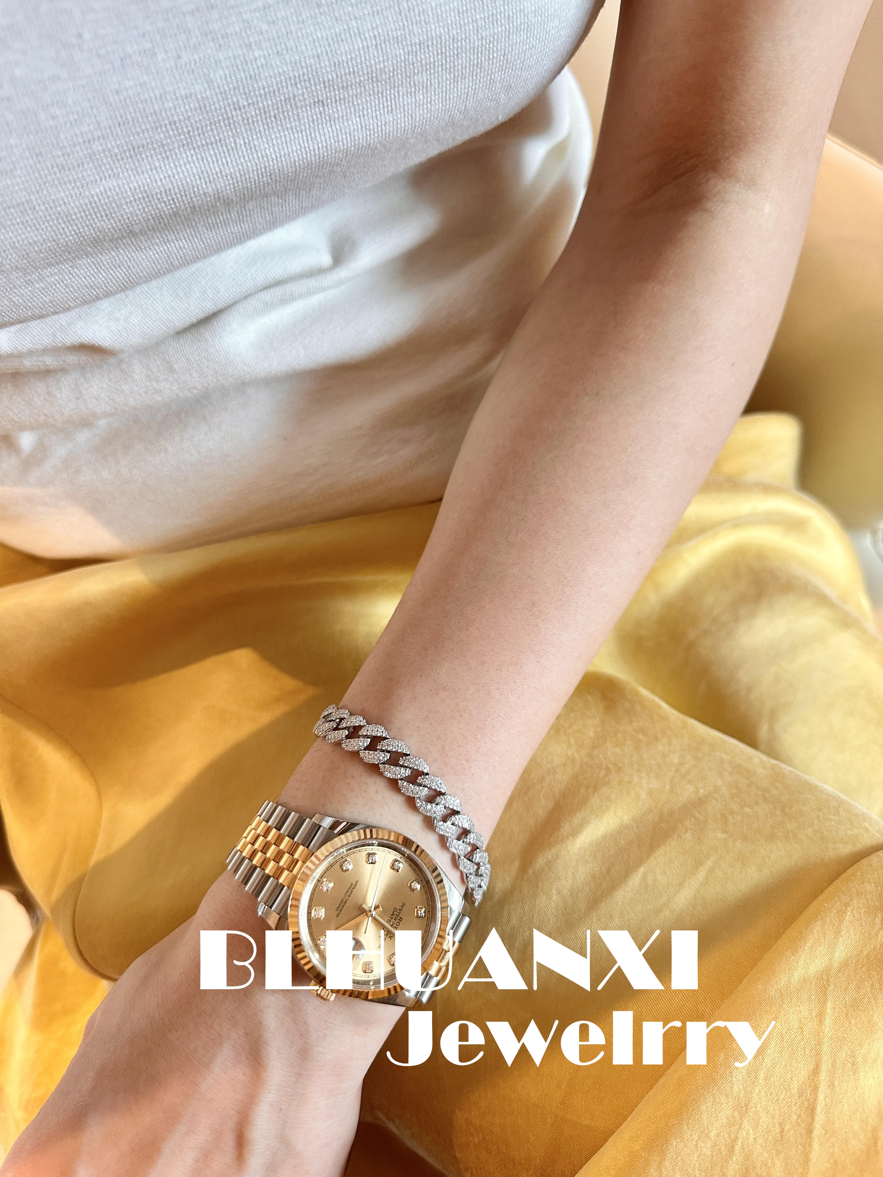 [Discover Joy] 925 Silver Gold-Plated Classic Cuban Full Diamond Fashionable Bracelet