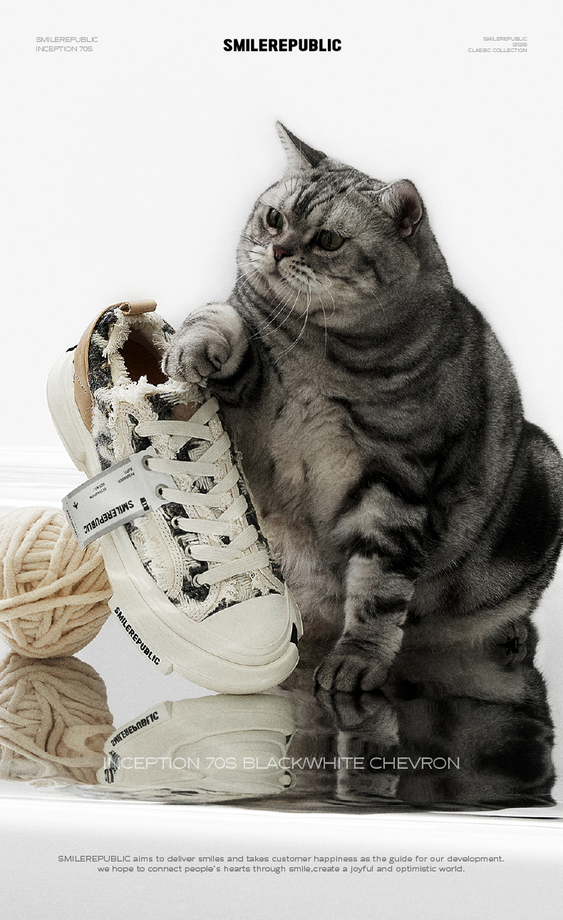 【Same Style as Bi Wenjun】Smilerepublic70S Cheese Cat Black and White Color-Blocked Thick-Soled Canvas Shoes Sneakers for Women