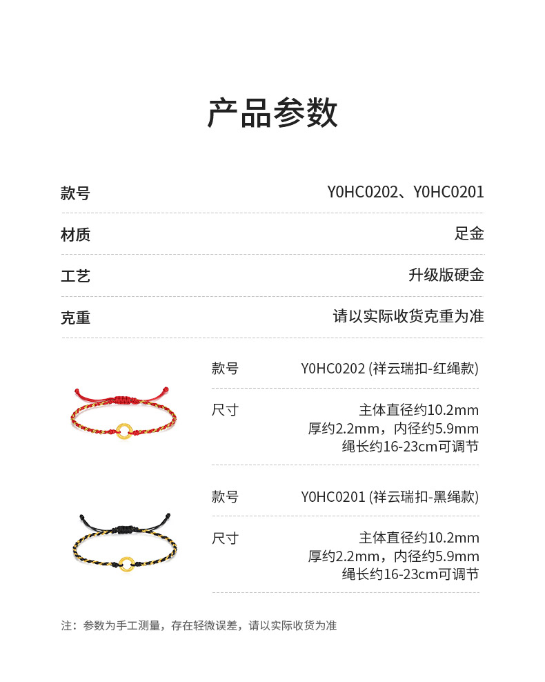 Chow Tai Sang Peace Pendant Gold Bracelet Hard Gold Pure Gold Auspicious Cloud Circle Couple Bracelet Gift for Girlfriend