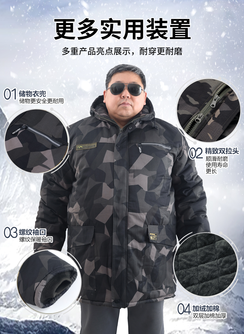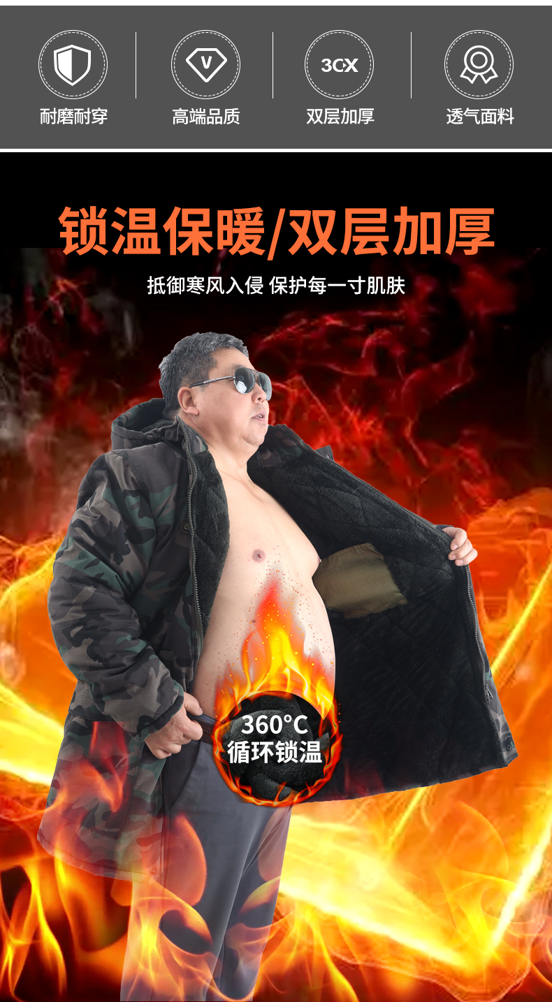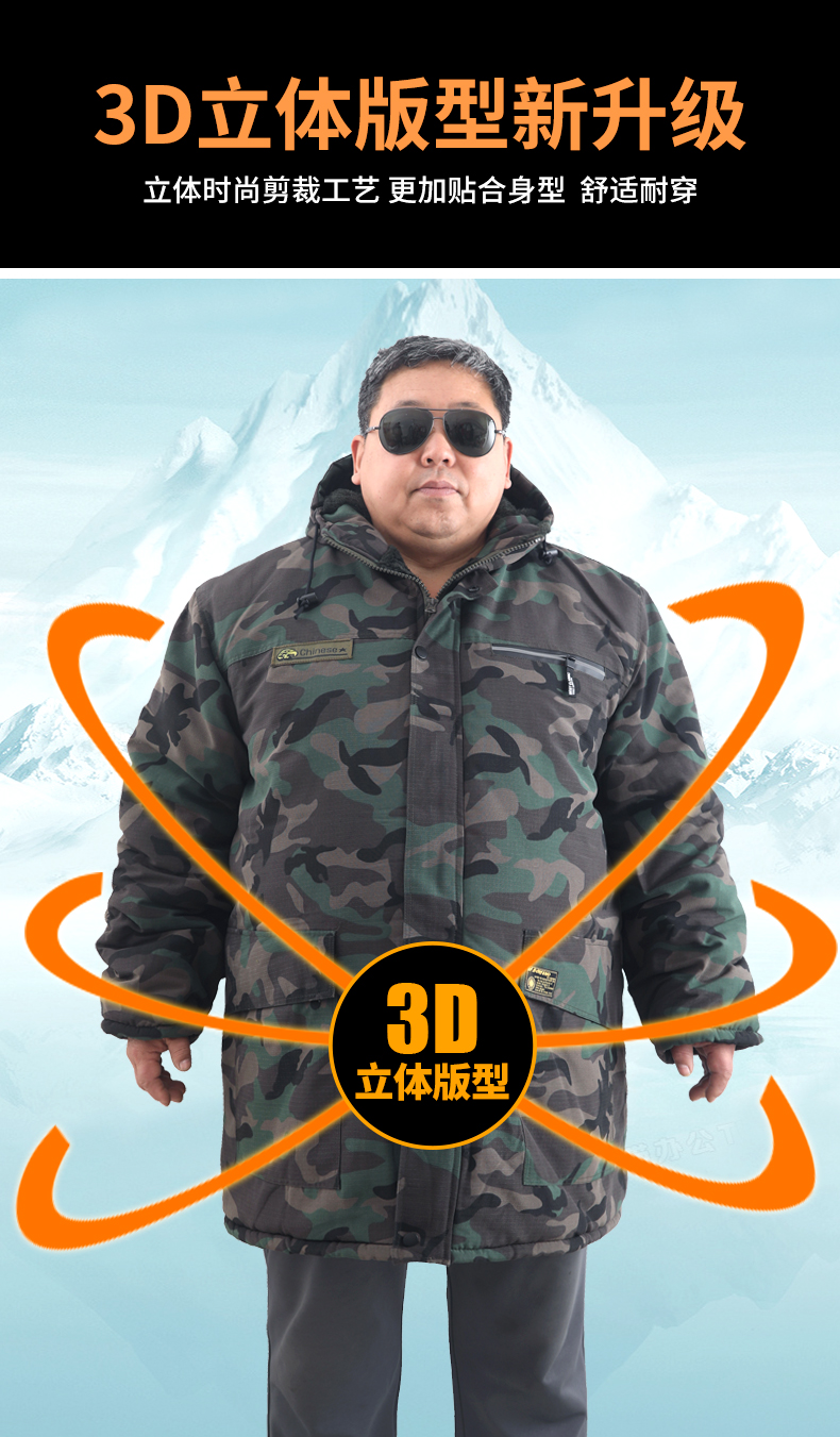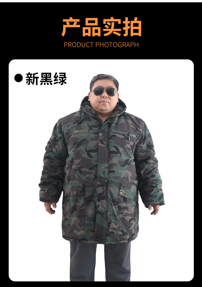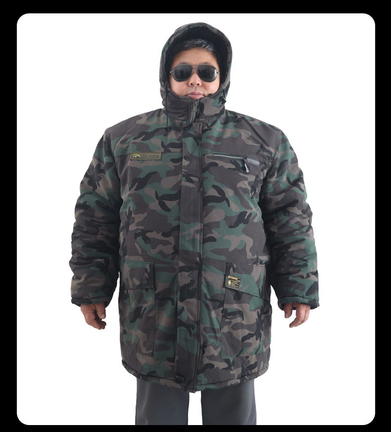 Large Size Camouflage Cotton Coat for Men, Winter Thickened and Oversized, Cold-Proof and Windproof Cotton Jacket, Mid-Length Military Cotton Coat