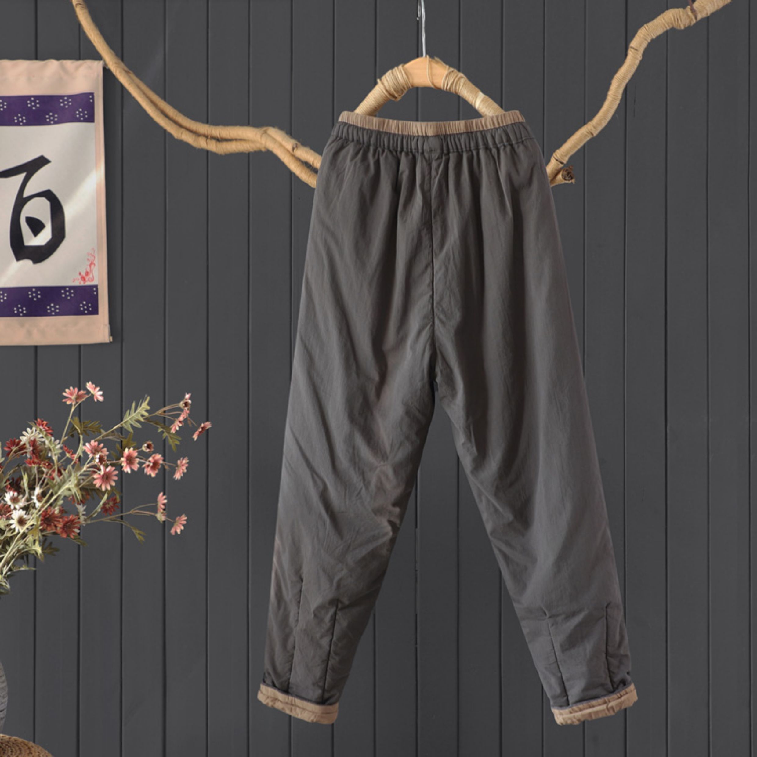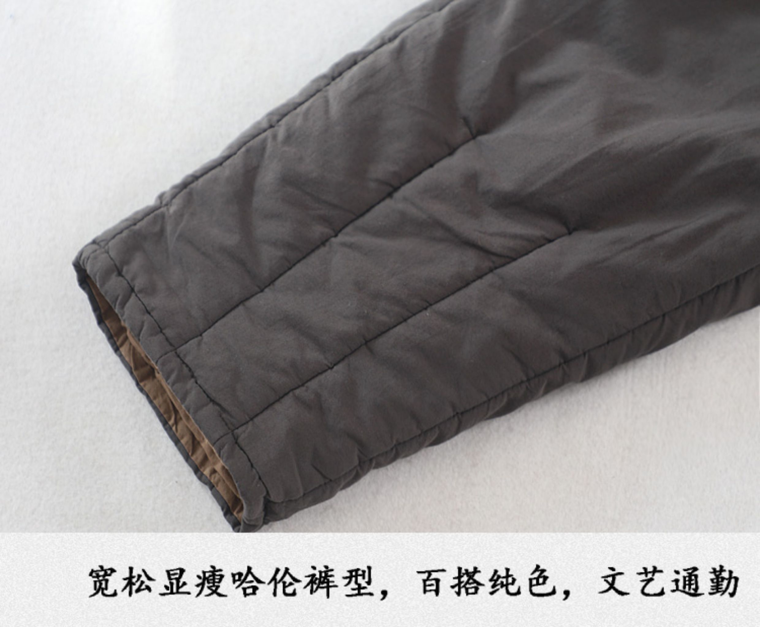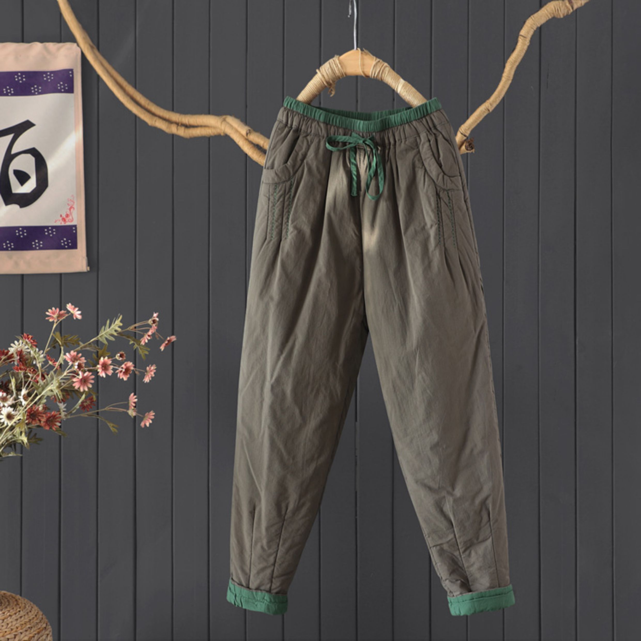 Commuting Simple Color-Blocked Lace-Up Padded Thickened Harem Pants Slim-Fit Pants for Women Artistic Loose Slimming Long Pants Cotton Pants Winter