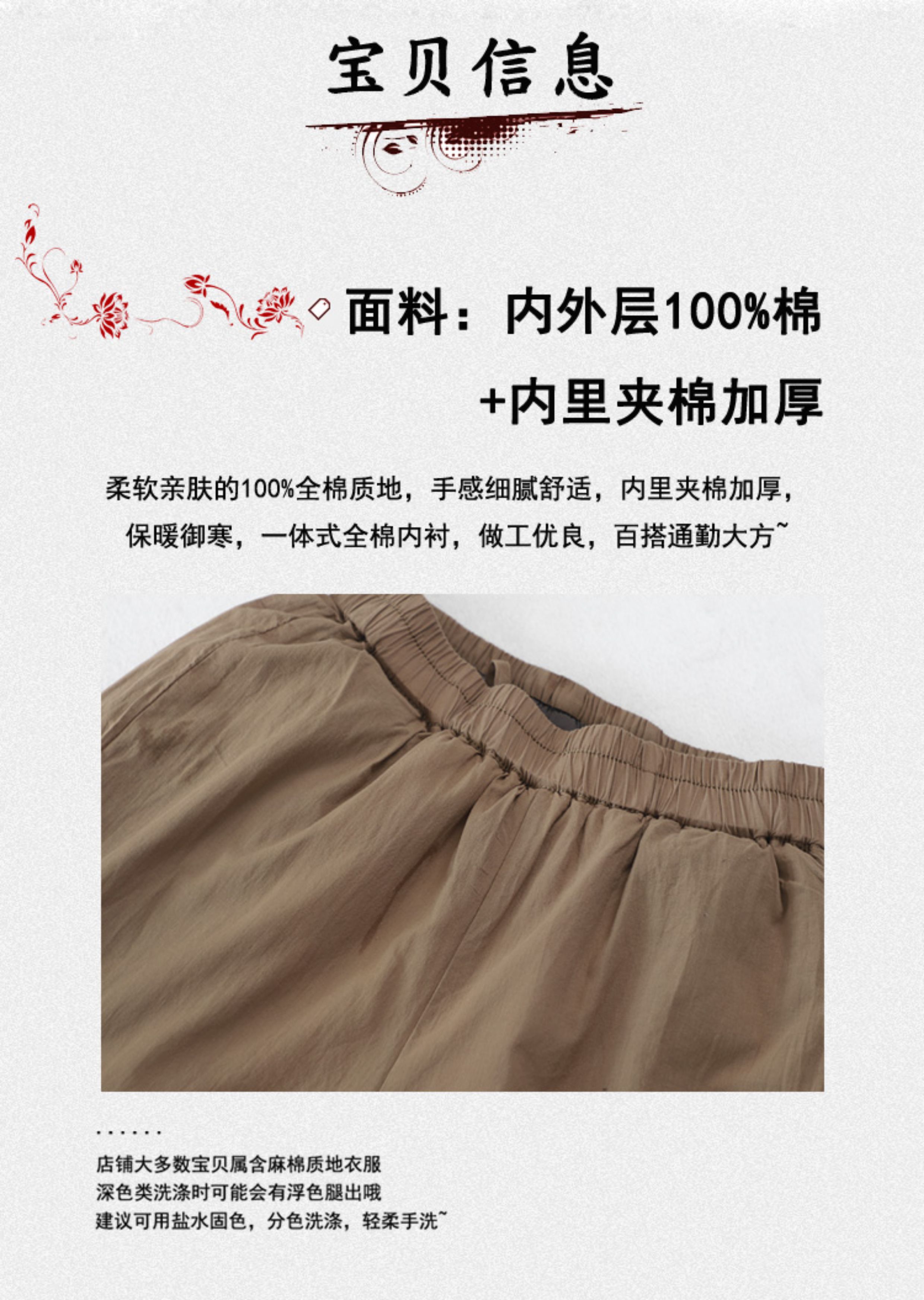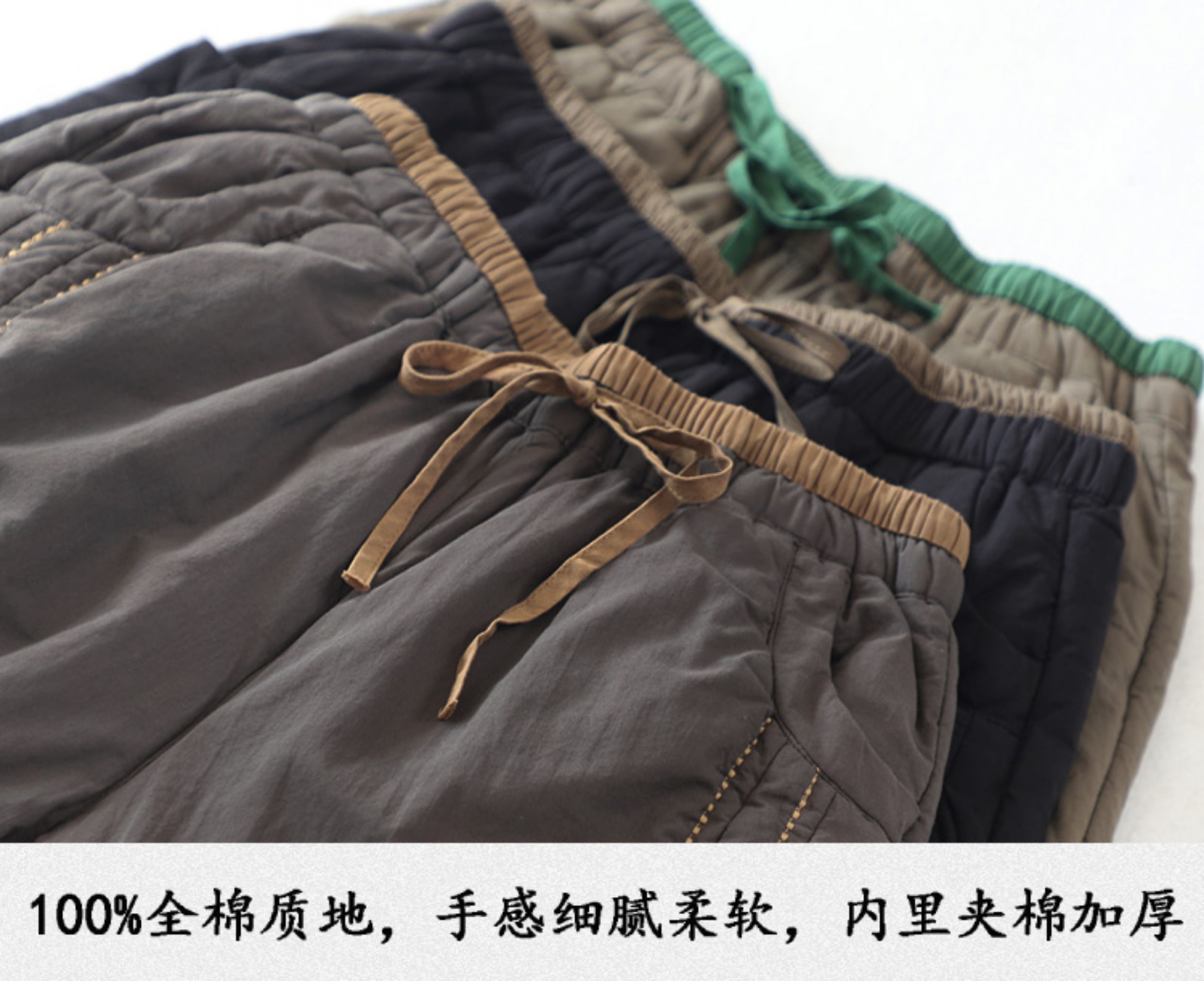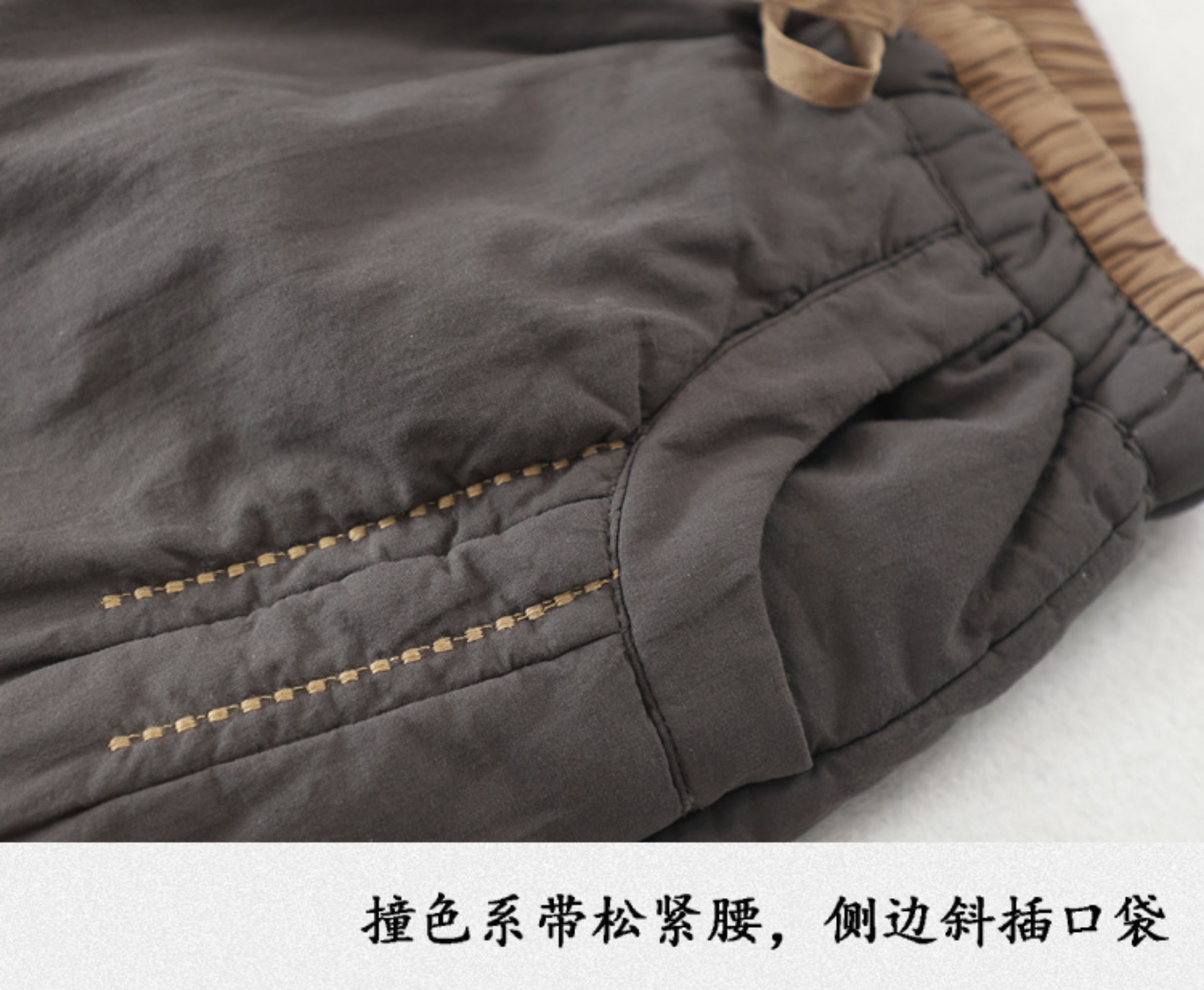 Commuting Simple Color-Blocked Lace-Up Padded Thickened Harem Pants Slim-Fit Pants for Women Artistic Loose Slimming Long Pants Cotton Pants Winter