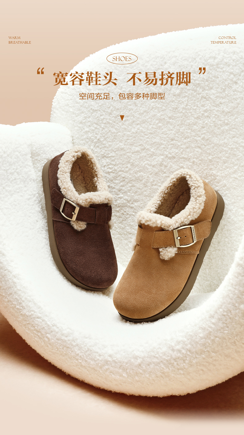 Belle Thick-Soled Birkenstock-Style Cotton Shoes for Women, New Winter Snow Boots, Dual-Wear, Non-Slip, Fleece-Lined, Full-Coverage Loafers