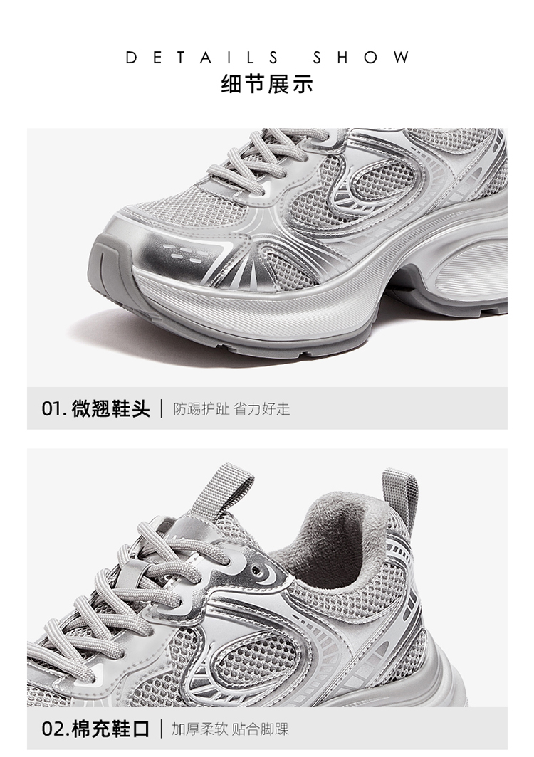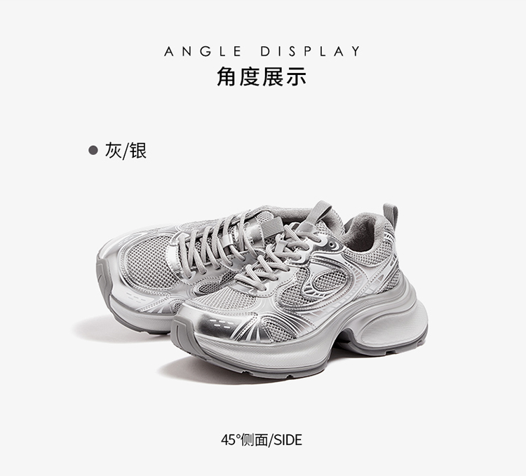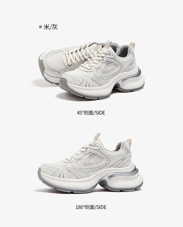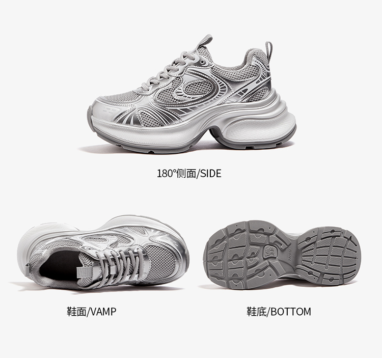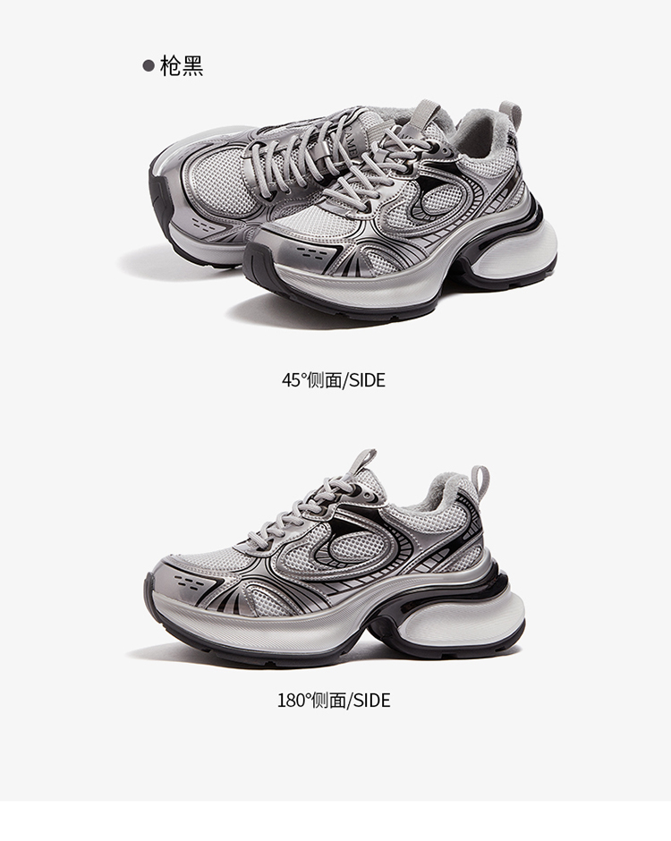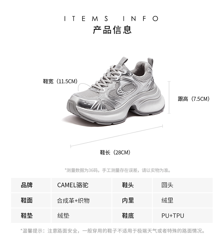 [Yinyi] Camel Women's Shoes 2025 Autumn New Casual Fleece-Lined Dad Shoes Thick-Soled Height-Increasing Silver Sneakers for Women