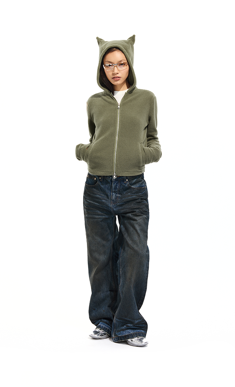 Two Little Guys* Cat Ear Thermal Fleece Heart Zipper Jacket