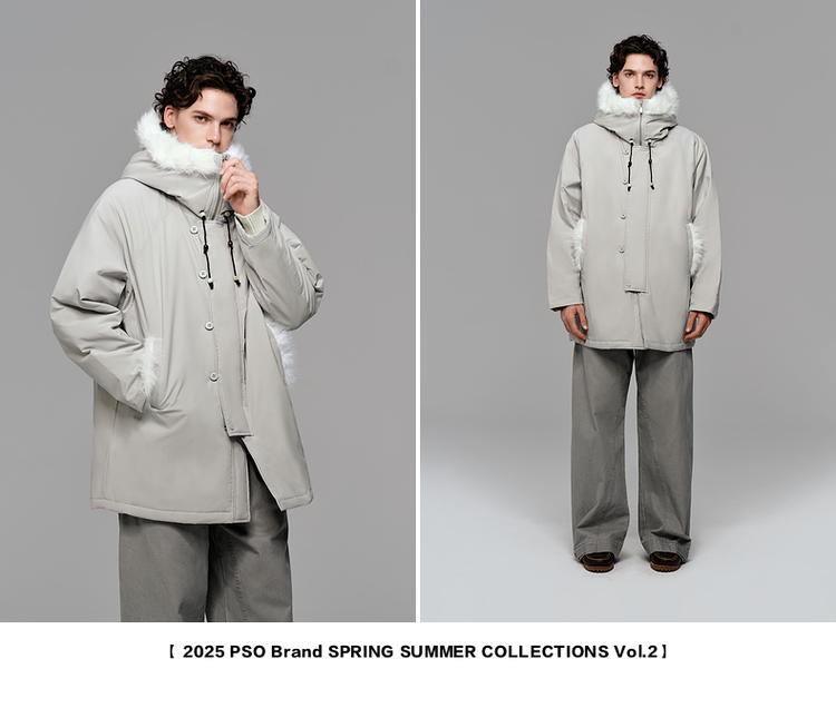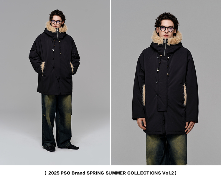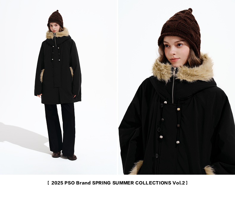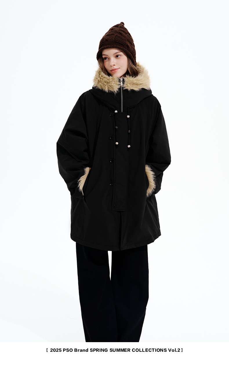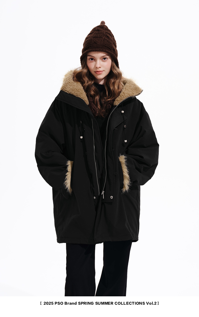 Pso Brand Men's and Women's Clothing, Zuishan Diao Fur Collar Cotton Coat, Winter Thick Cotton Coat, Mid-Length Hooded Warm Jacket