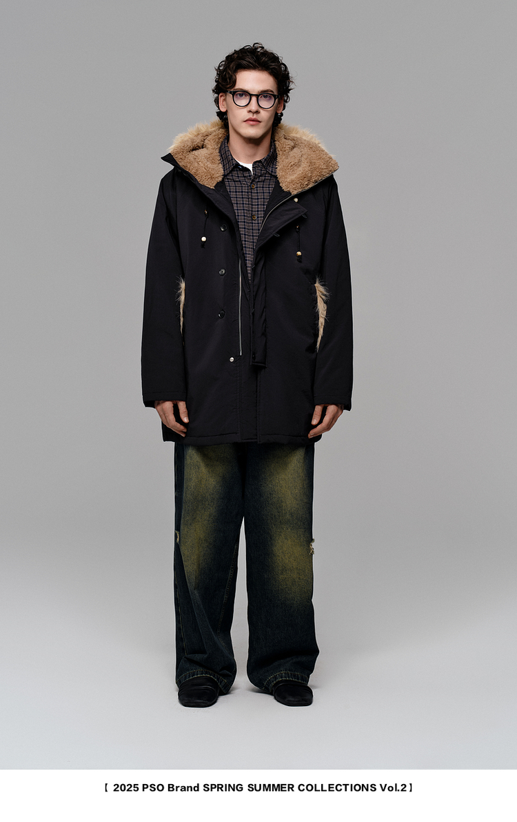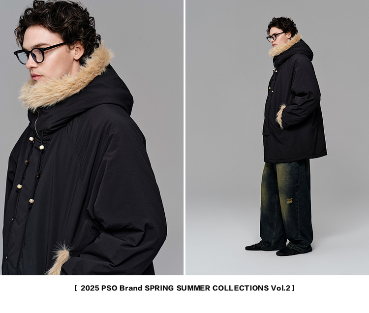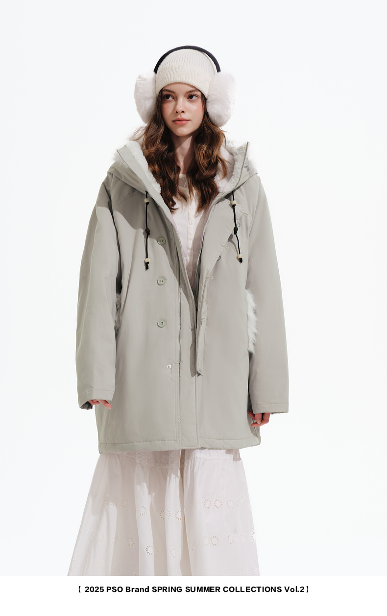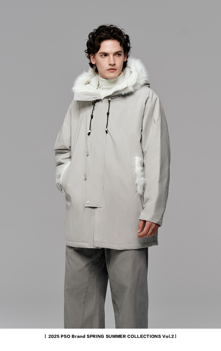 Pso Brand Men's and Women's Clothing, Zuishan Diao Fur Collar Cotton Coat, Winter Thick Cotton Coat, Mid-Length Hooded Warm Jacket