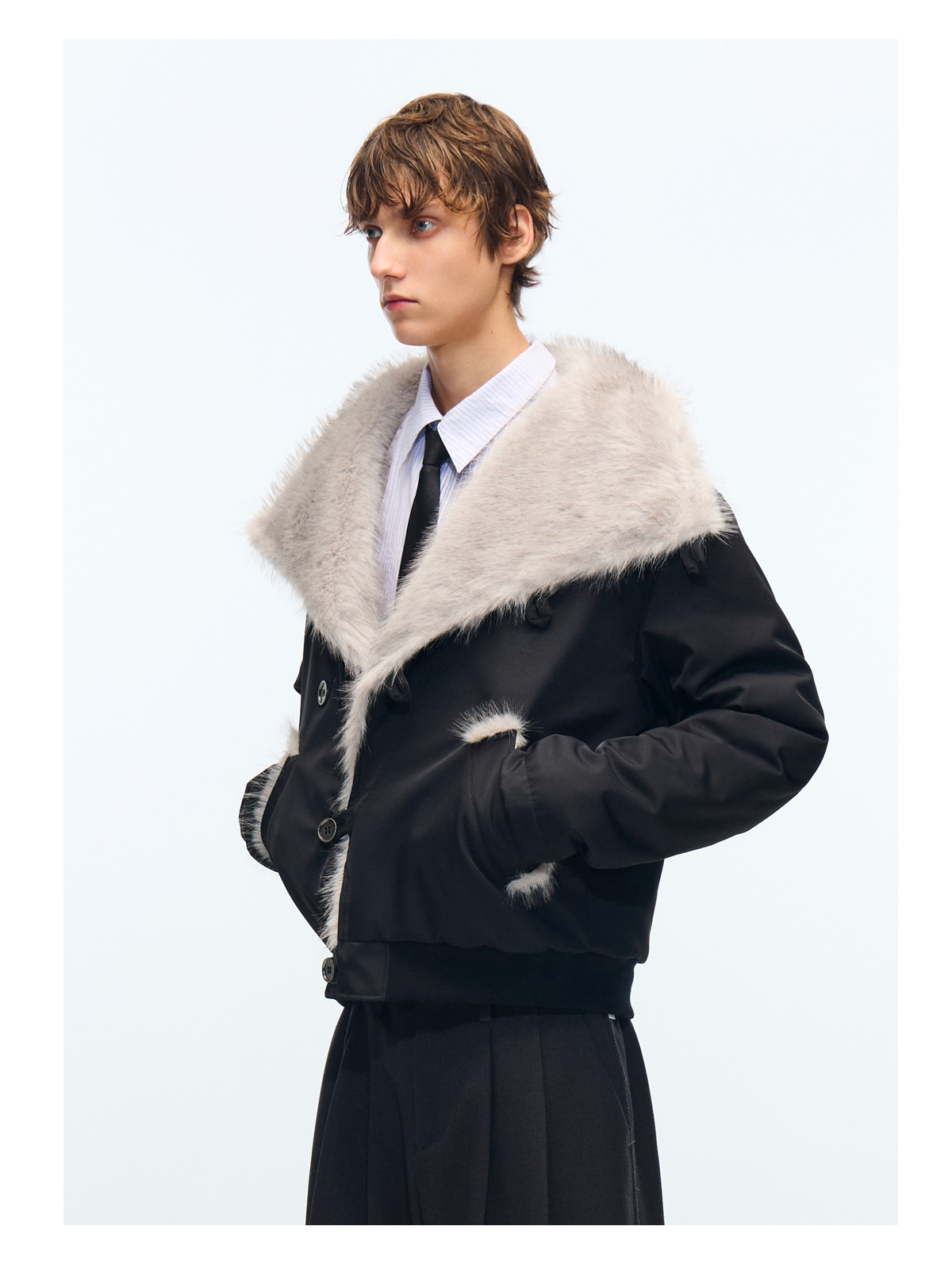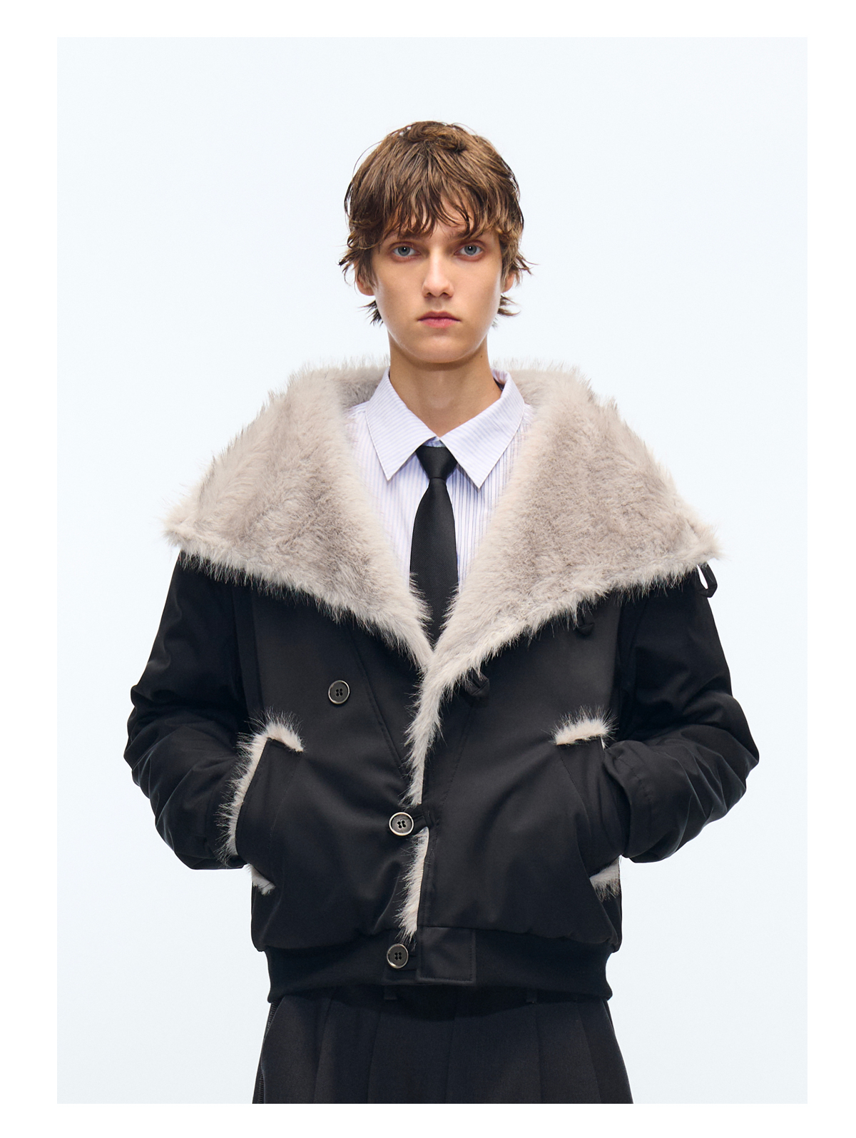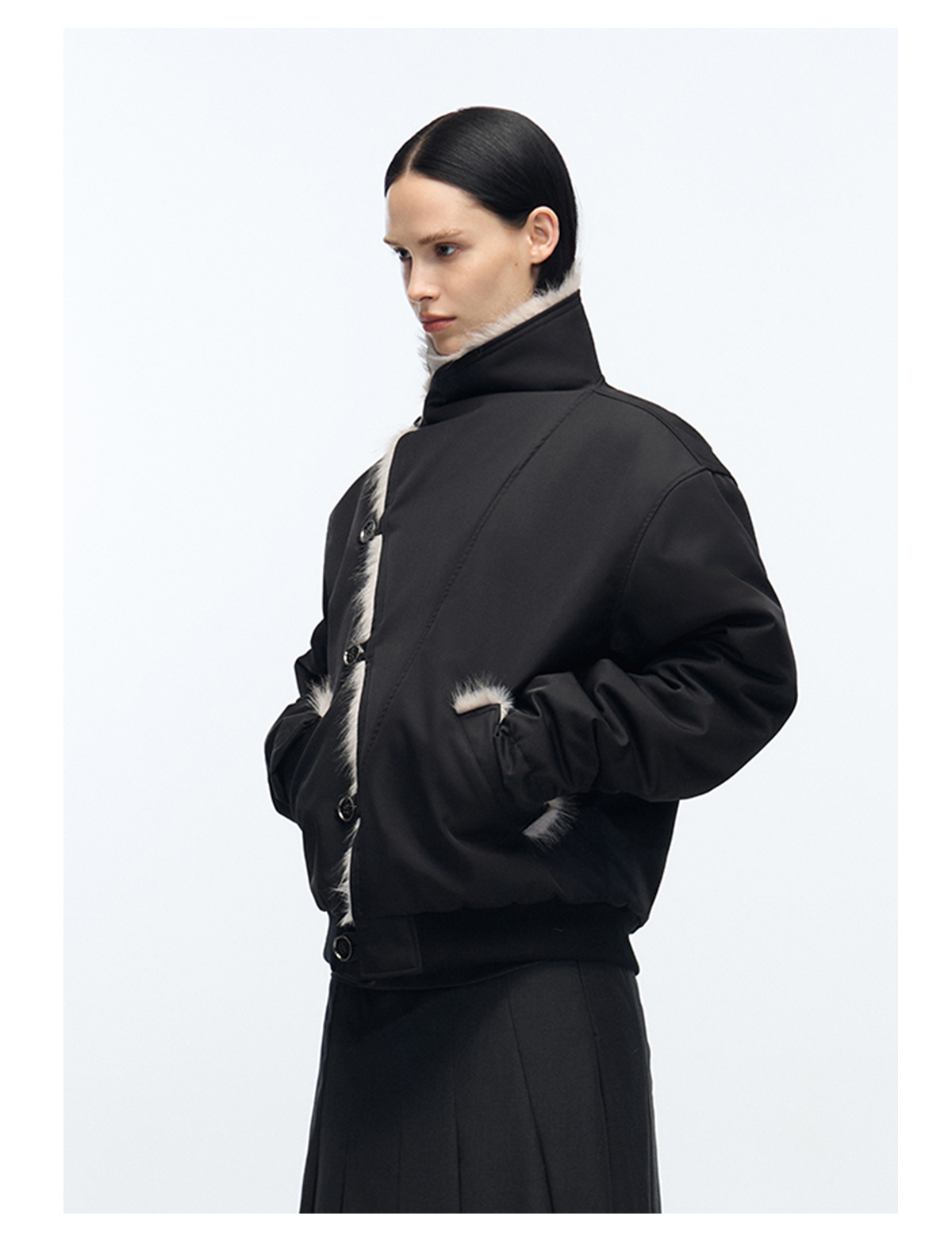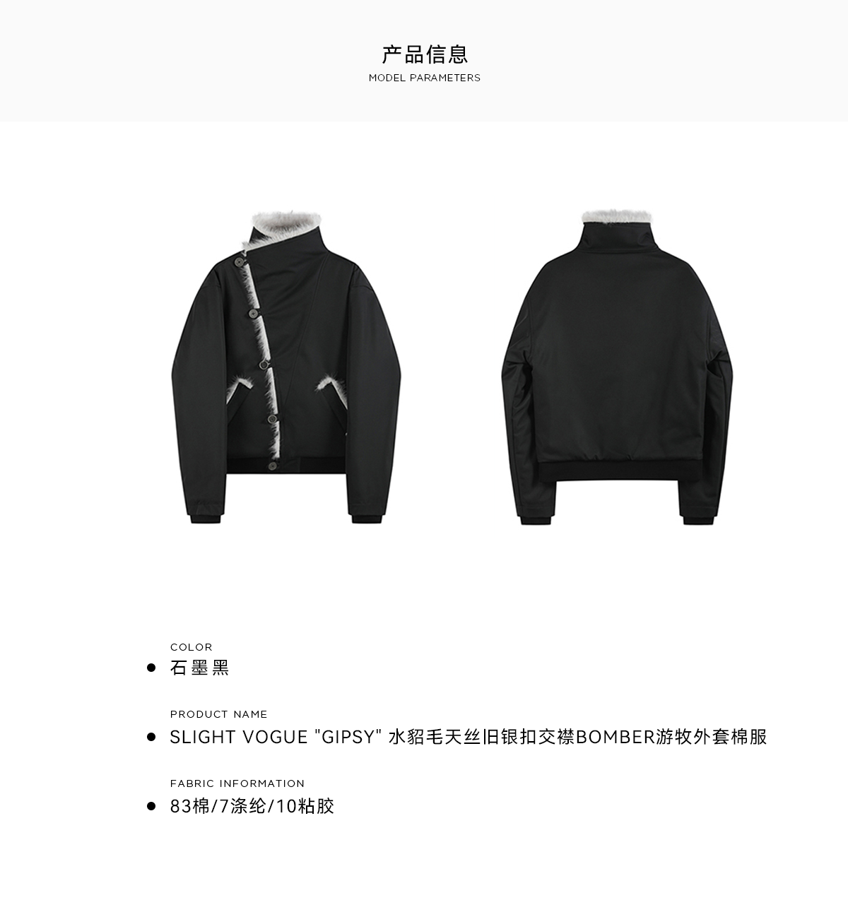 Slight Vogue "Gipsy" Mink Fur Tencel Old Silver Button Cross-Front Bomber Nomadic Jacket Cotton Coat
