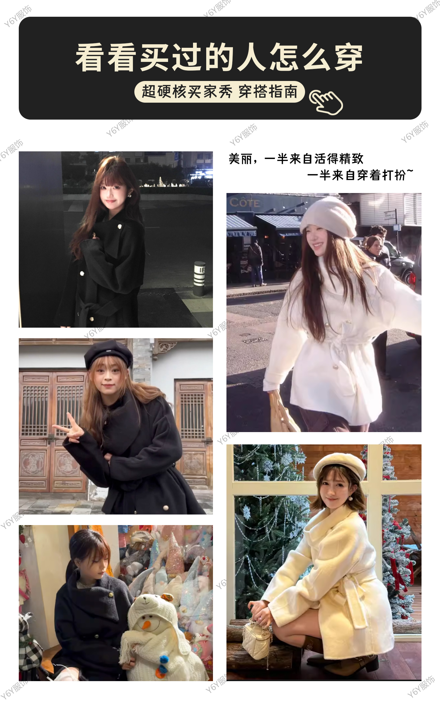 Black Hepburn-Style Short Woolen Cape Coat for Women, Thickened for Autumn and Winter, 2025 New High-End Woolen Jacket
