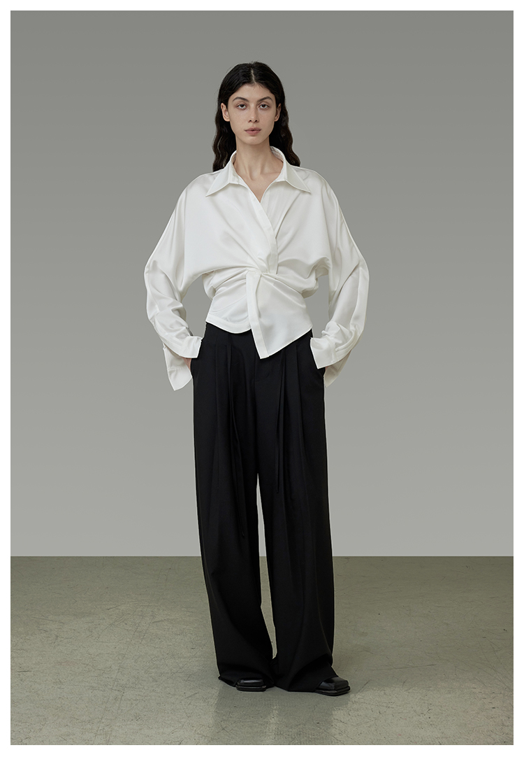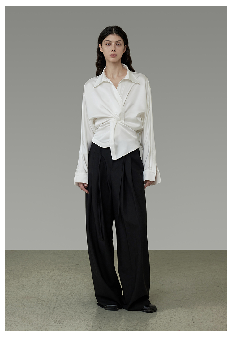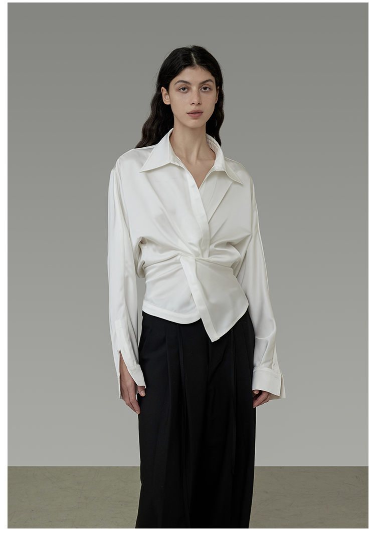 Unspoken French Satin V-Neck Twist Shirt for Women 2025 Autumn New High-End Lazy Style Elegant Top