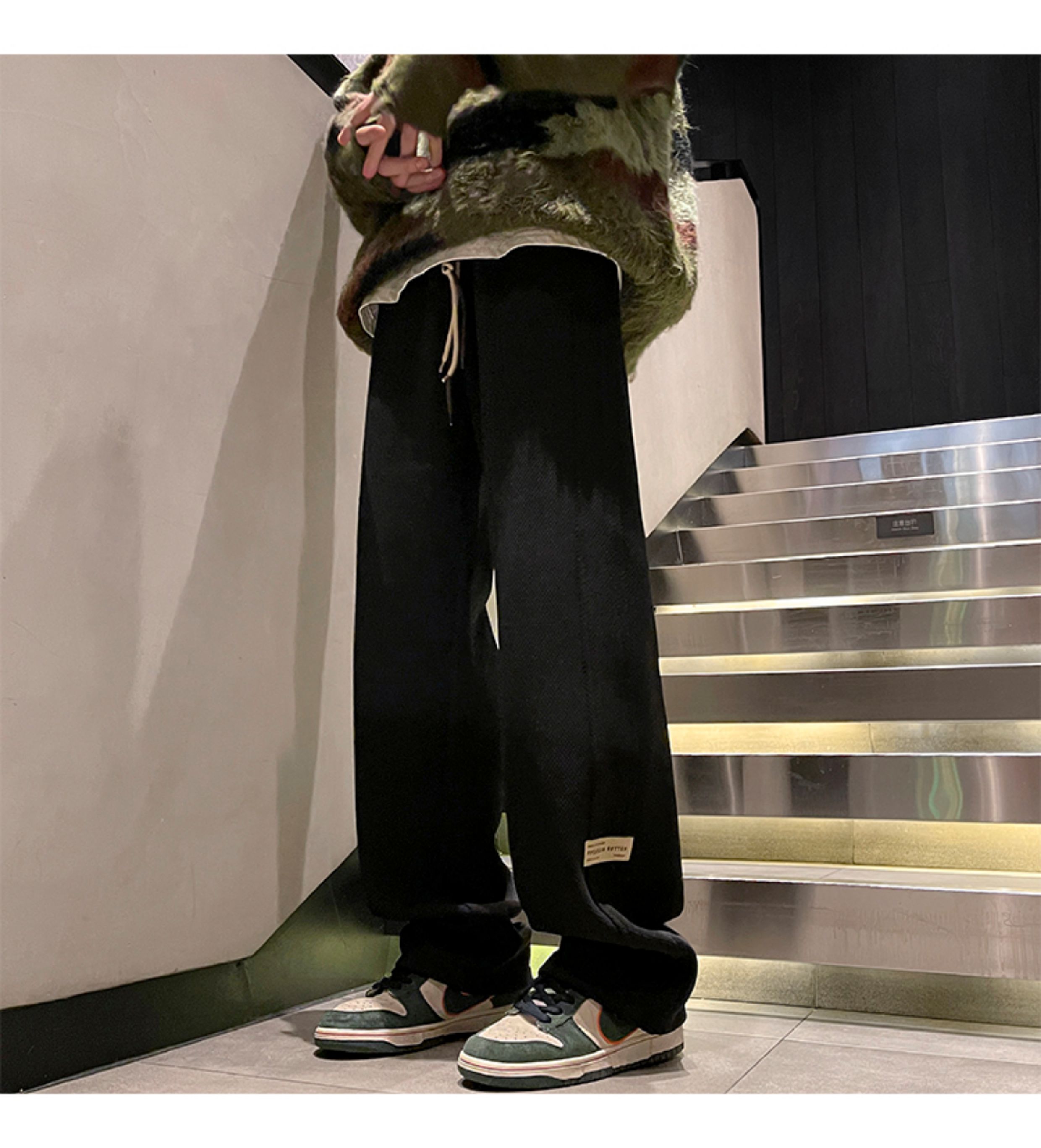 [Ao Ruipeng Endorsement] Geniolamode Men's Sports Pants Autumn and Winter Fleece-Lined Straight Wide-Leg Casual Pants