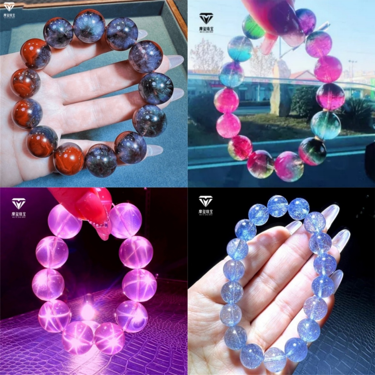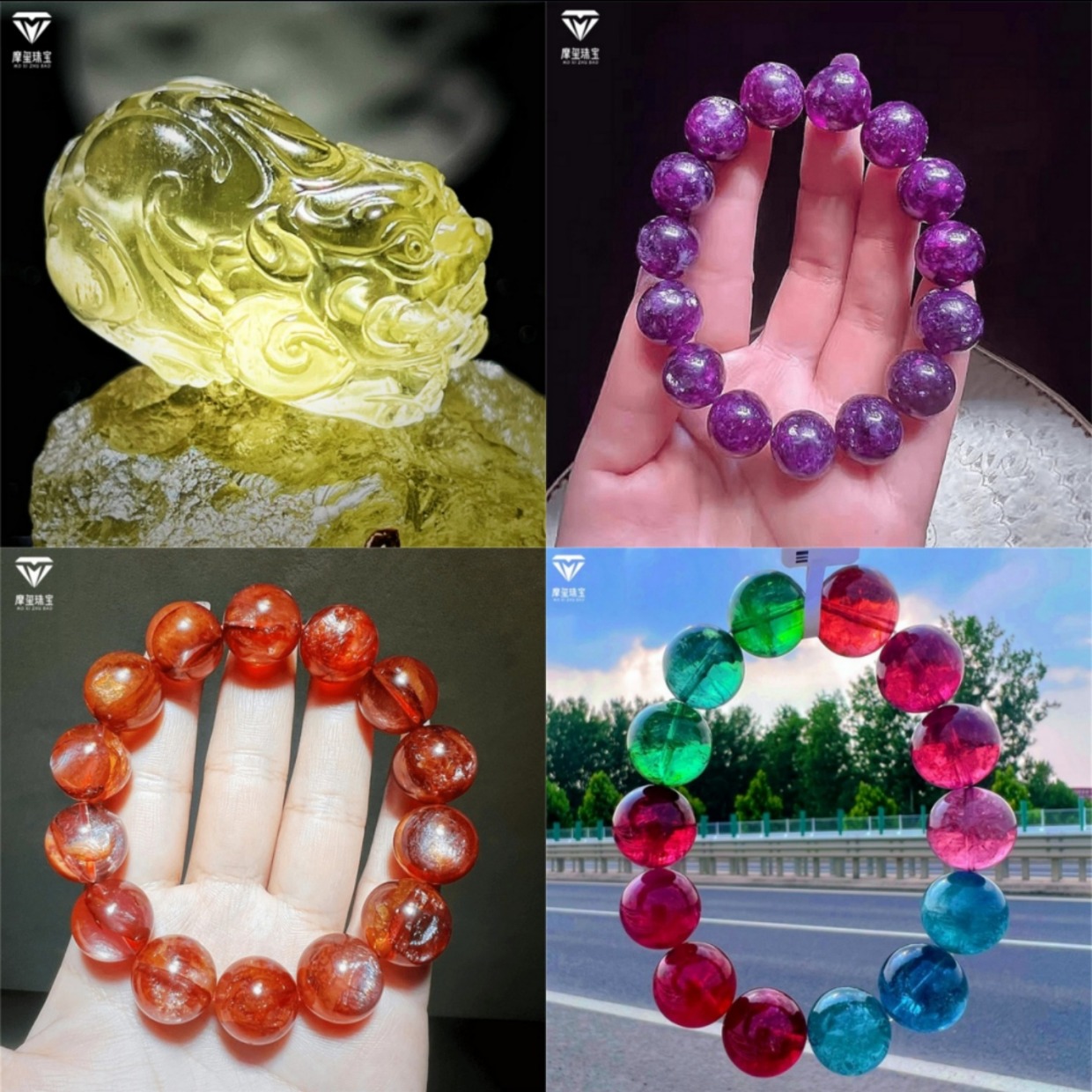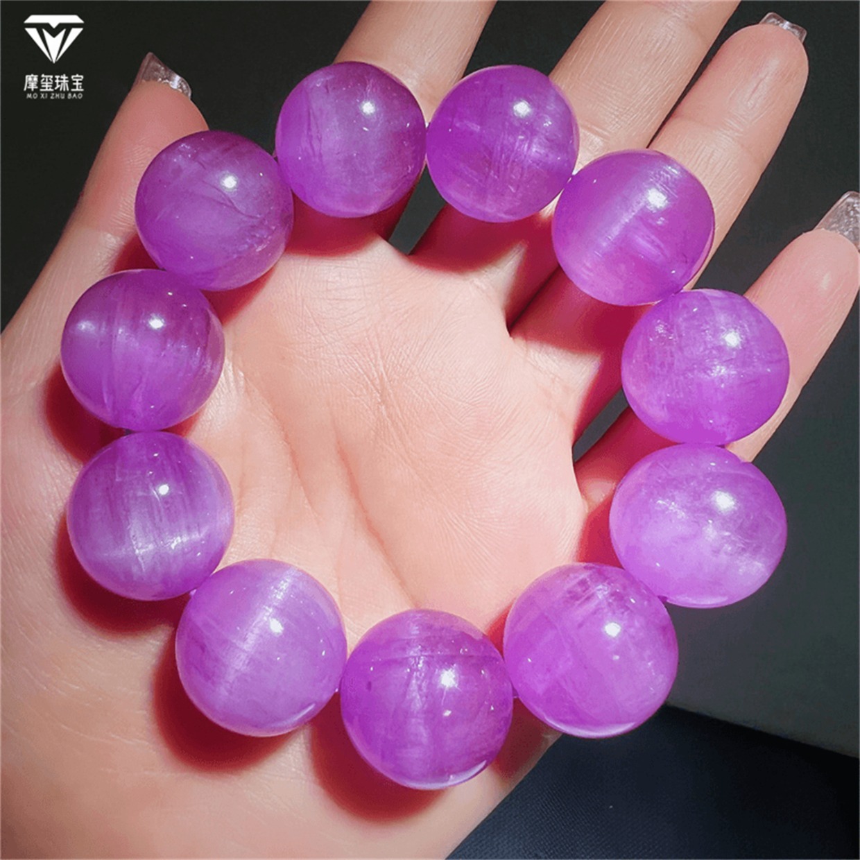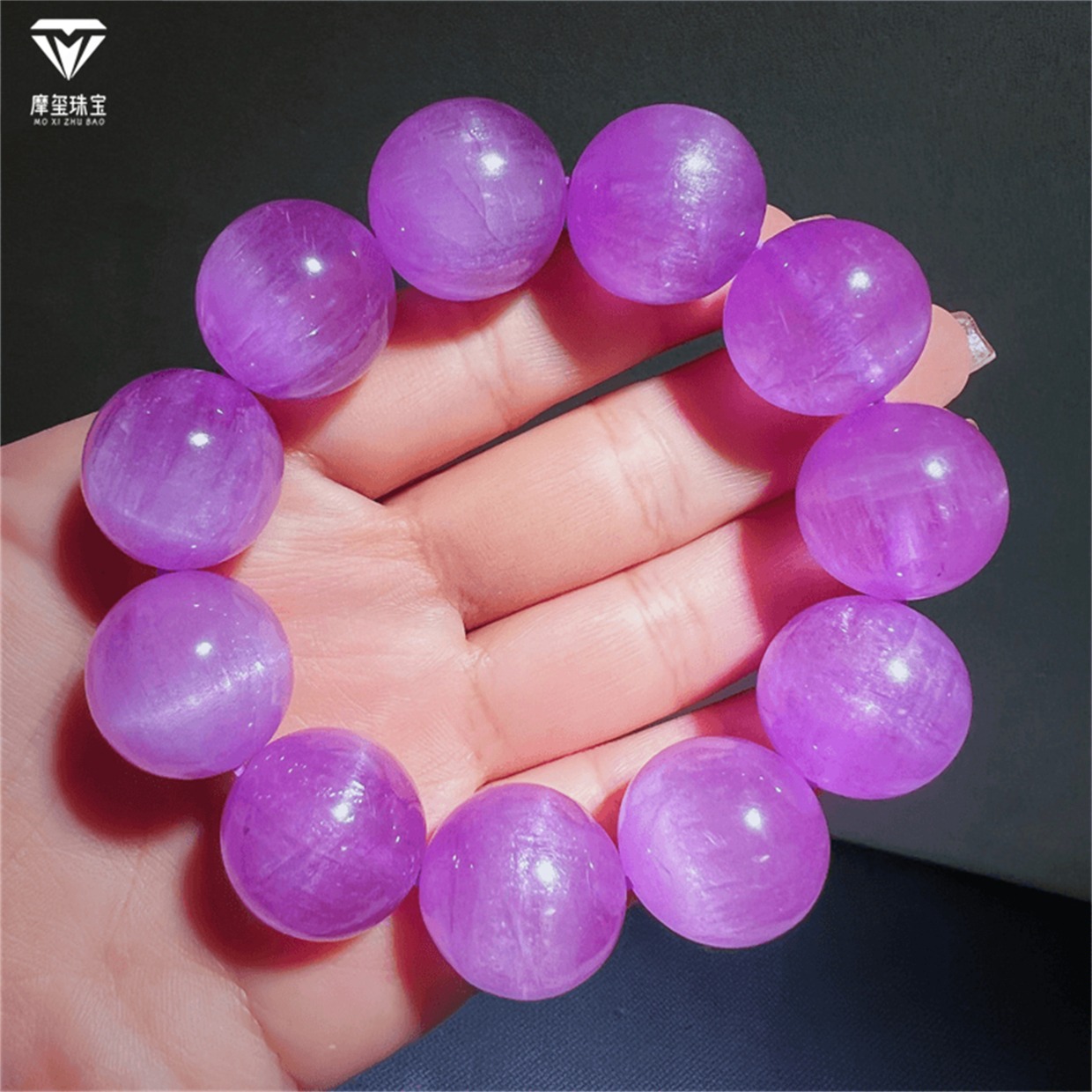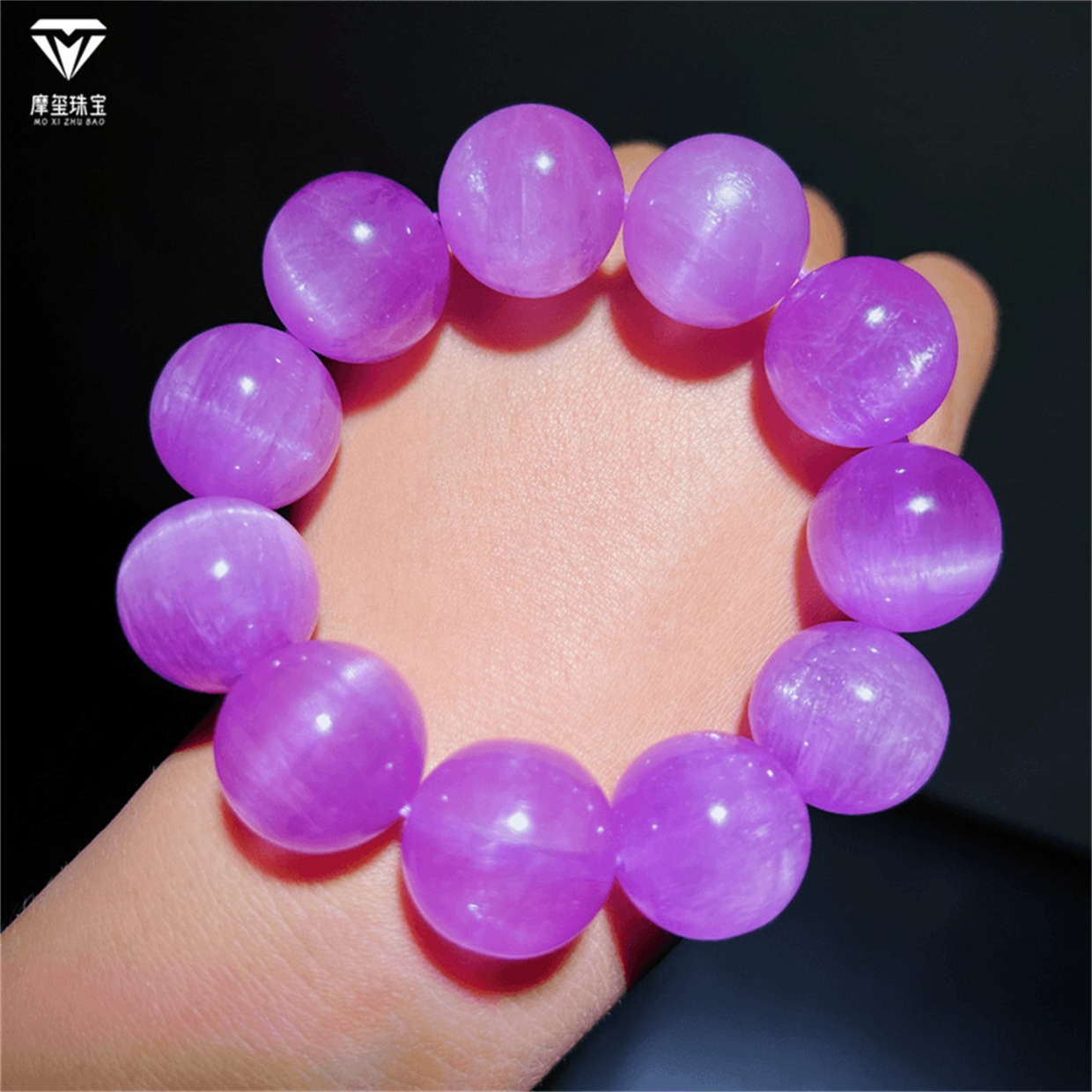 Natural Kunzite Crystal Bracelet Cube Bead Bracelet Ring Pendant Goddess Style Cat's Eye Effect Original Design